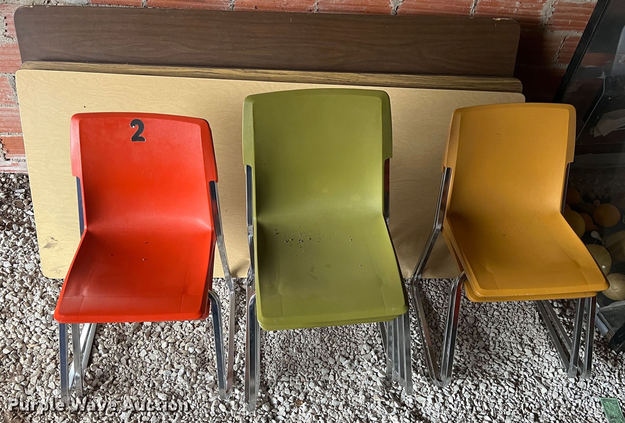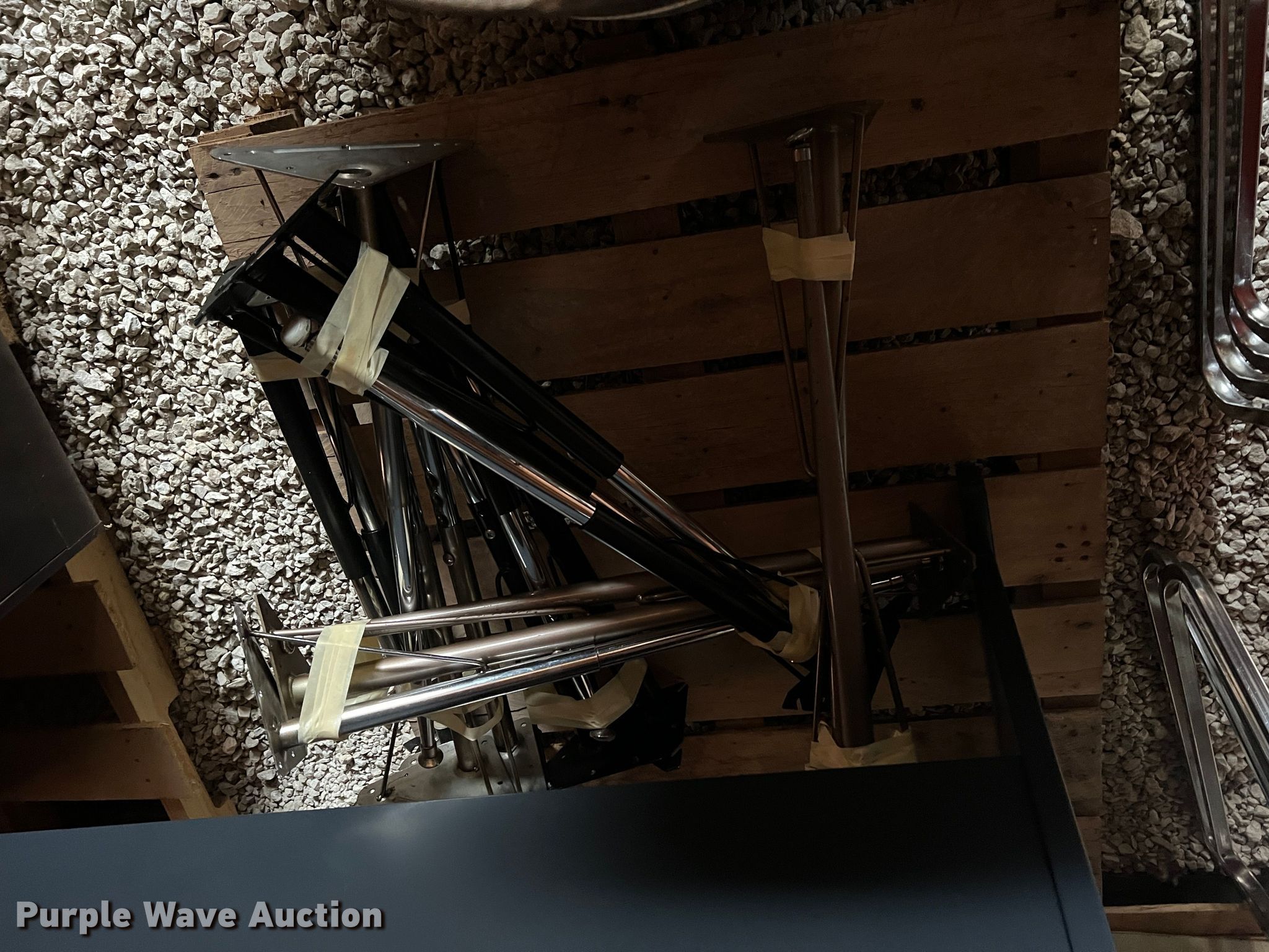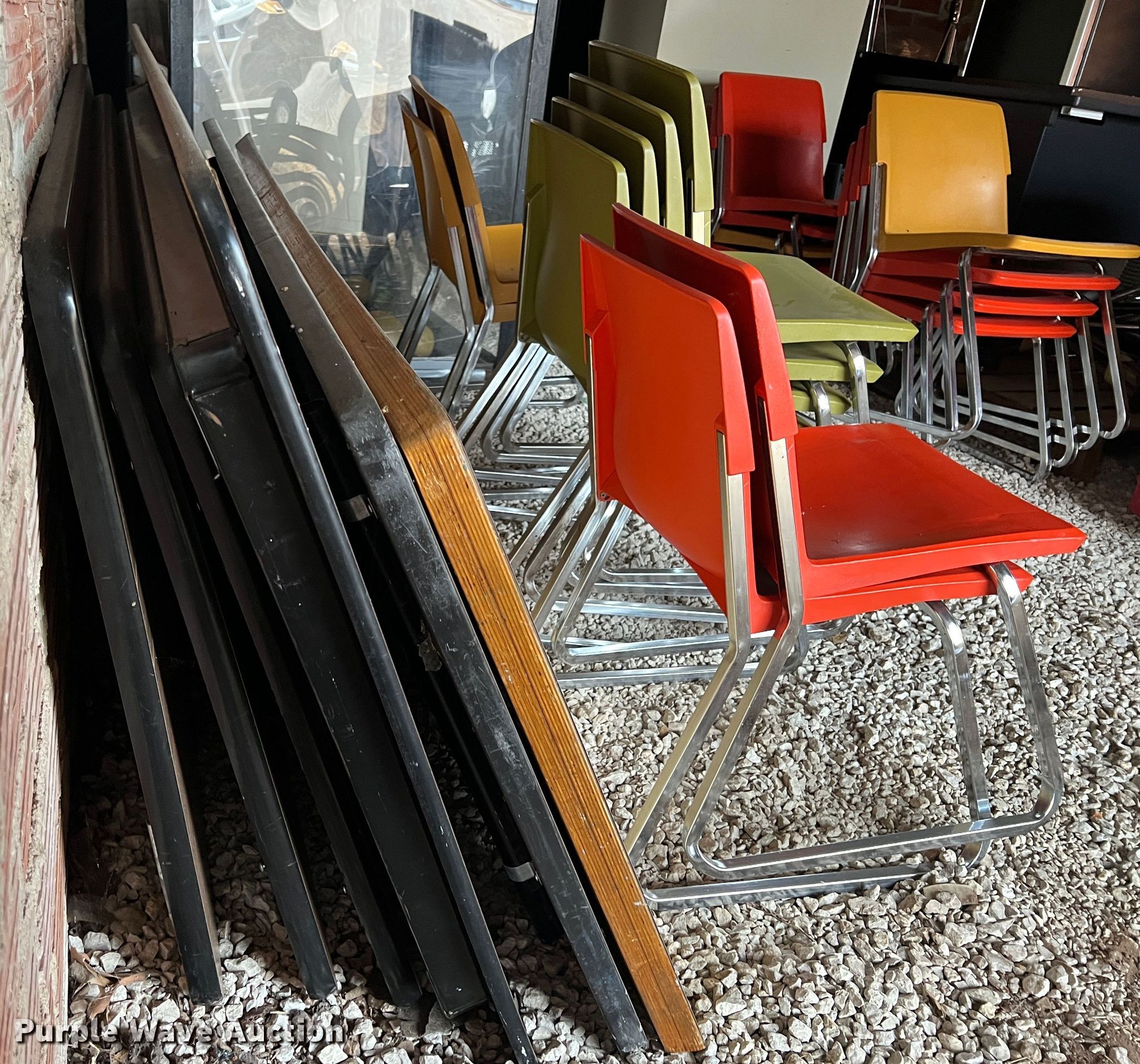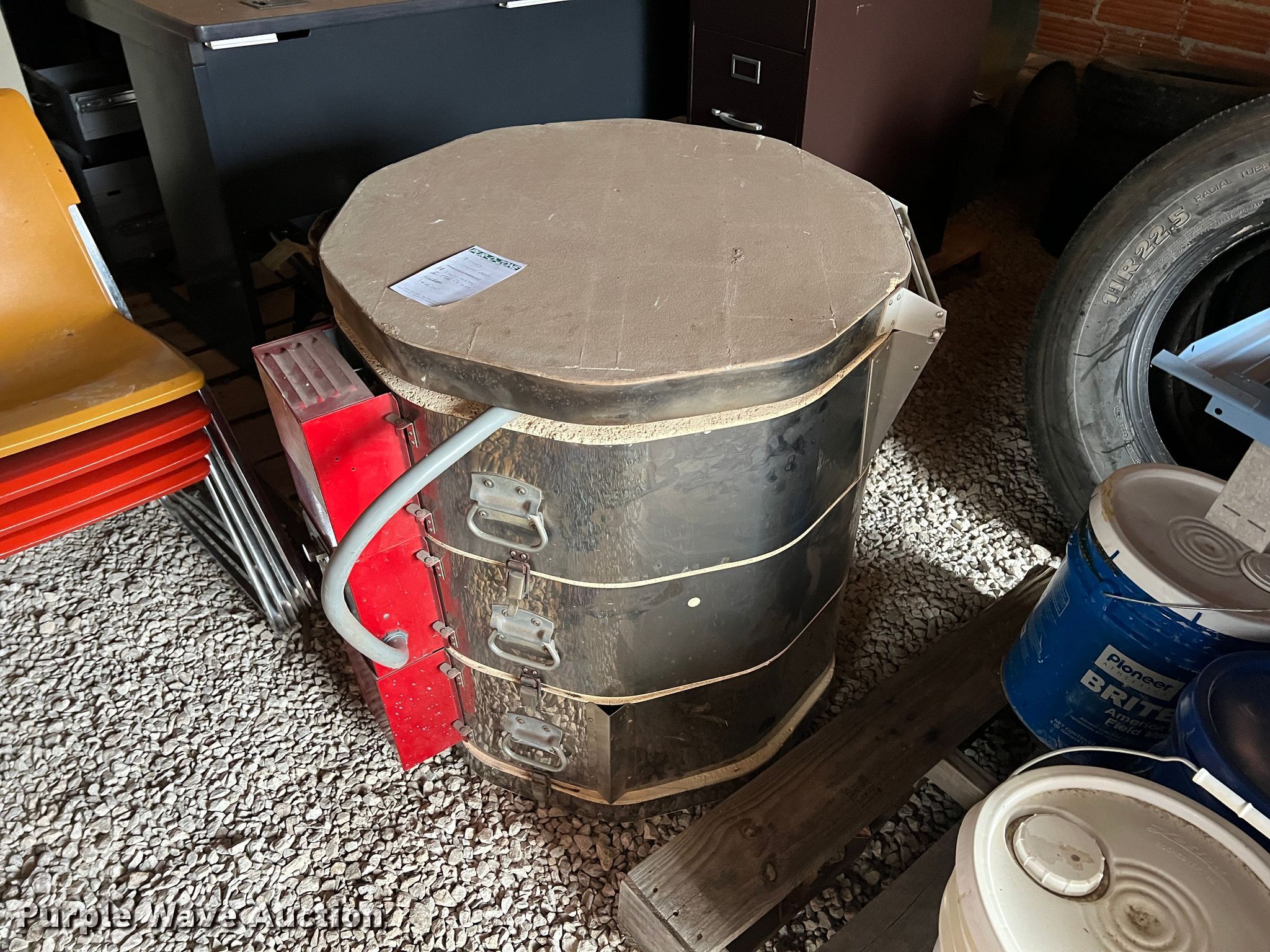 Purple Wave is selling a used Office Supplies and Equip. in Kansas. This item is a Office supplies and equipment with the following: (19) chairs, (10) tables, (5) filing cabinets, (2) desks, Skutt LT-3K electric kiln, Single phase, Cracked brick, Unknown operating condition
