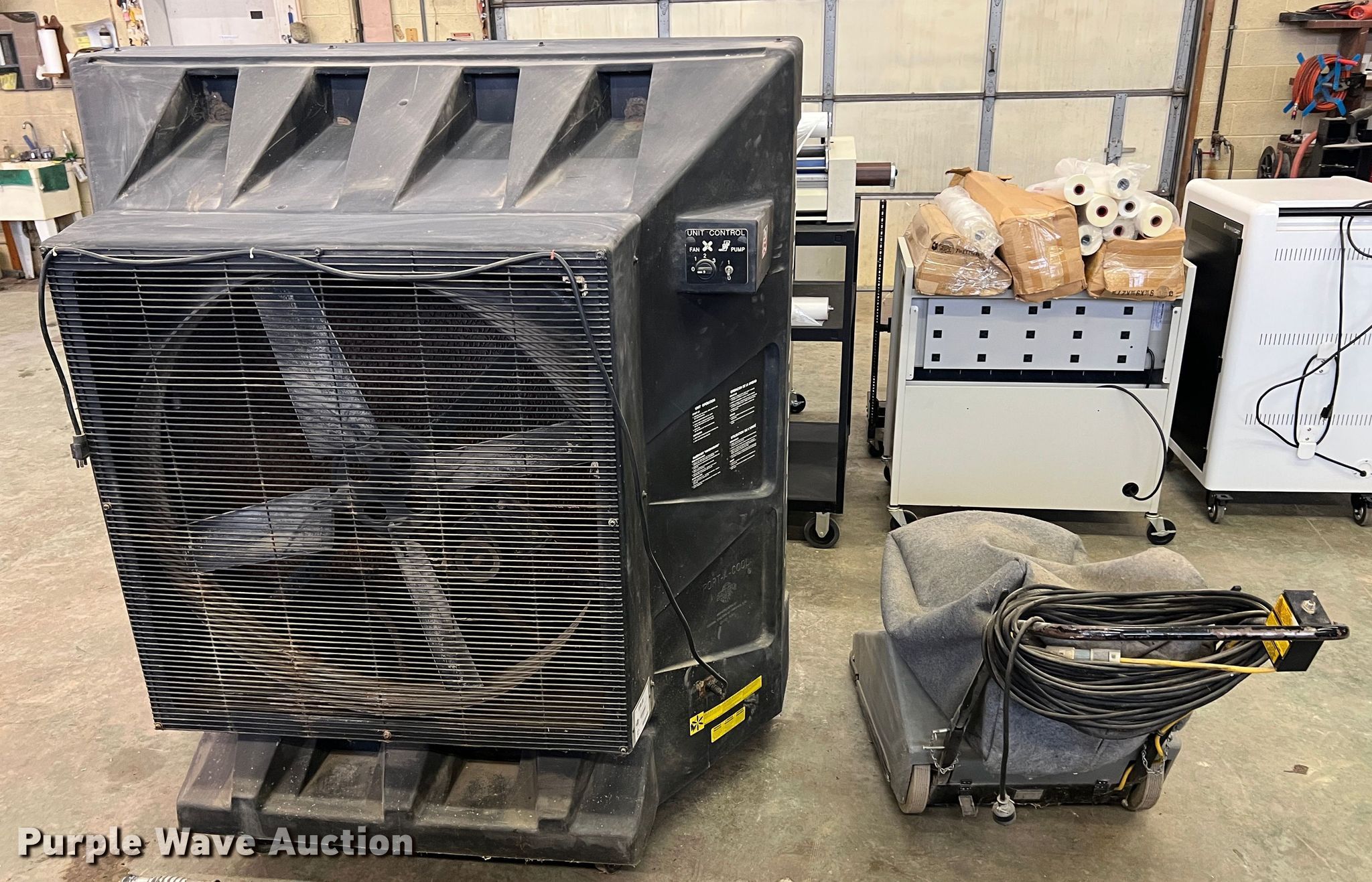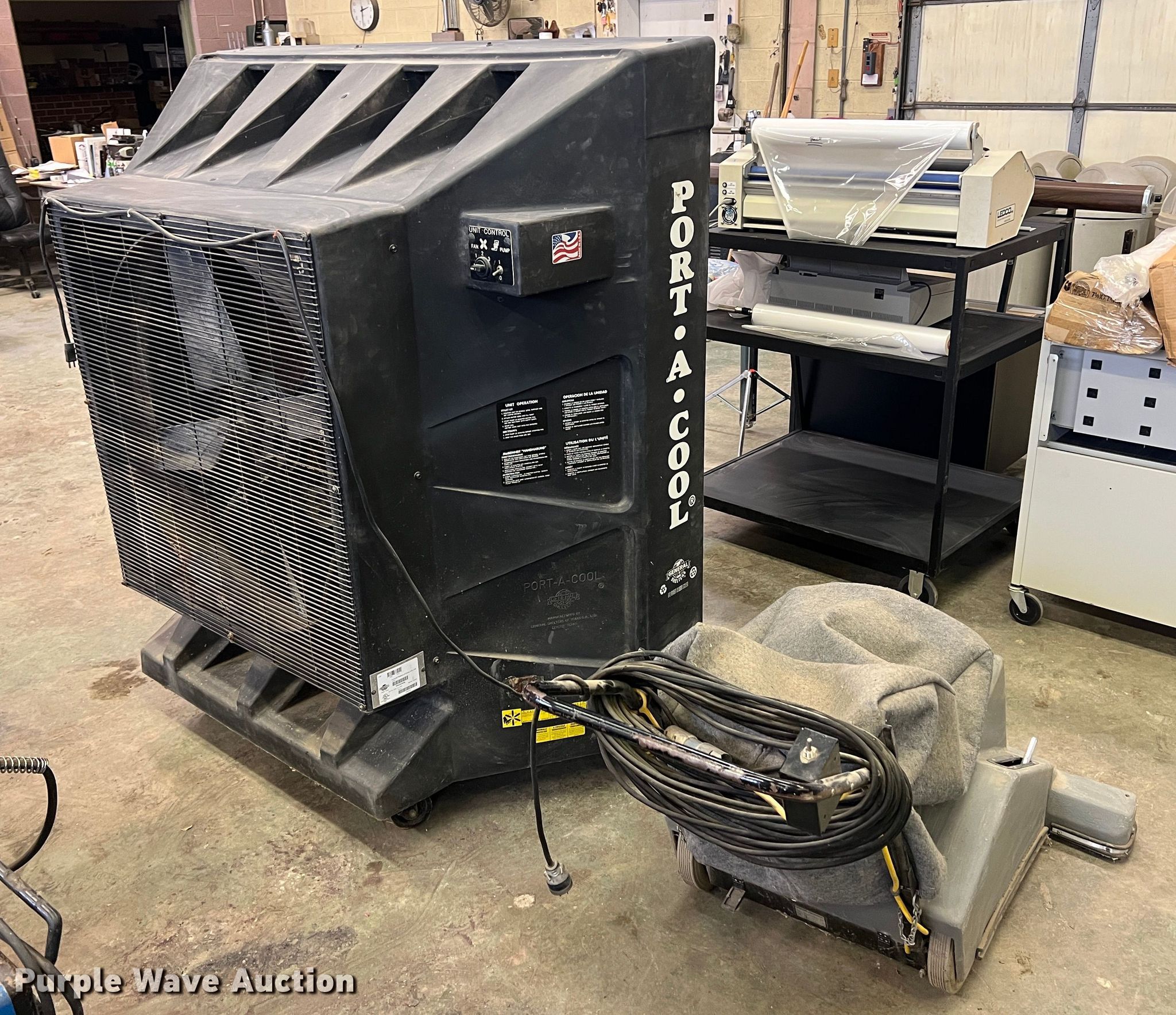 Purple Wave is selling a used Tools in Kansas. This item is a Tools with the following: Port-a-cool evaporative cooler, Single phase, Nobles Super Carpet vacuum, 115V, Single phase