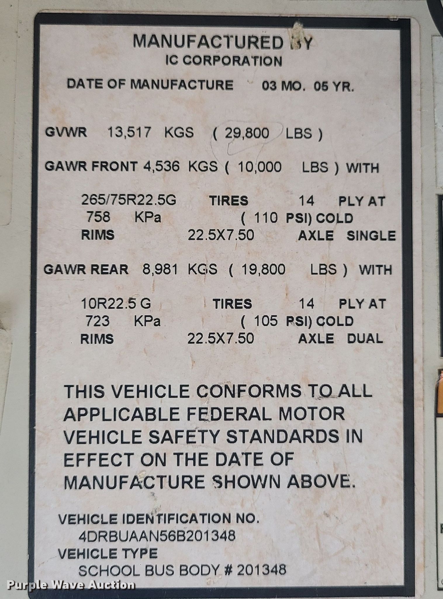 Purple Wave is selling a used Bus in Missouri. This item is a 2006 IC CE300 school bus with the following: Miles: 171,365 on odometer, VIN: 4DRBUAAN56B201348