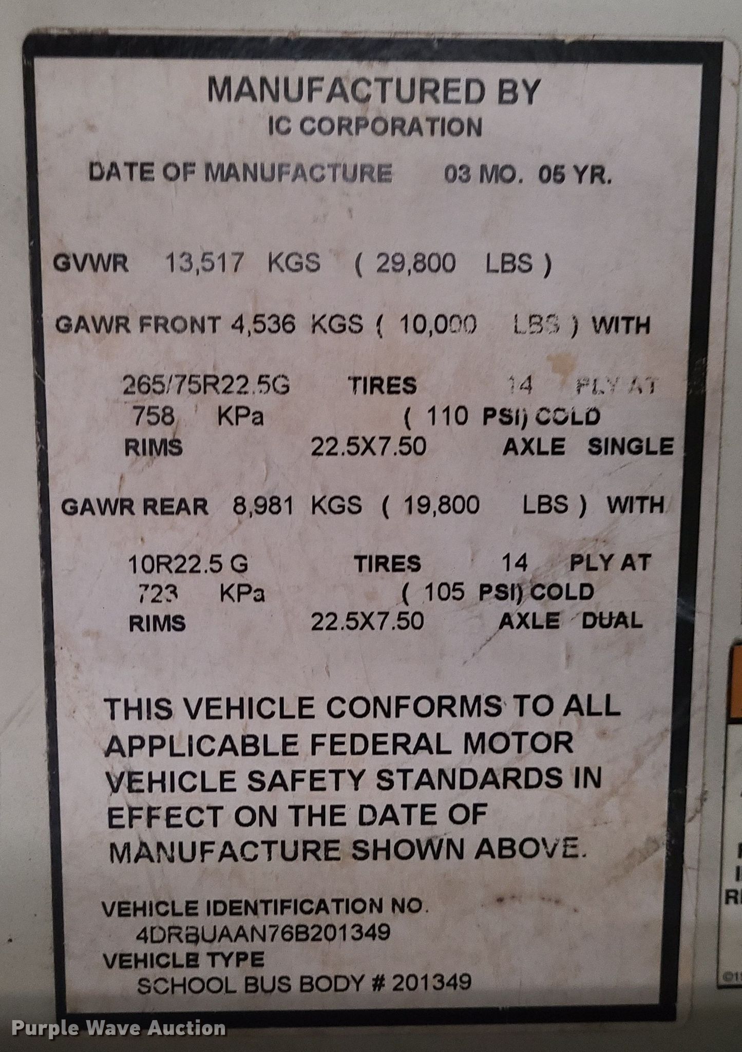 2006 IC CE300 school bus. Miles: 165,343 on odometer, VIN: 4DRBUAAN76B201349. Engine International DT466, Displacement: 7.6L, Cylinders: 6, Fuel type: Diesel. Transmission Automatic. Chassis Axles: Single, Suspension: Spring, Brakes: Air, GVWR: 29,800 lbs. Interior Heat, Passengers: 71. Tires Size: 11R22.5. Notes Unknown operating condition. Missouri title. Title distribution may be delayed up to 14 days from verification of funds. Raytown C-2 School District. 5920 Hardy Avenue. Raytown, MO 64133