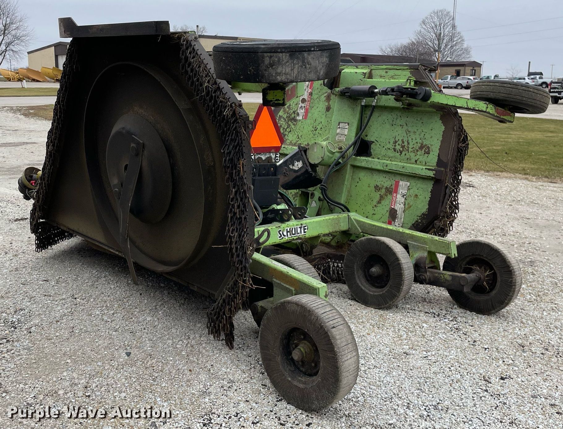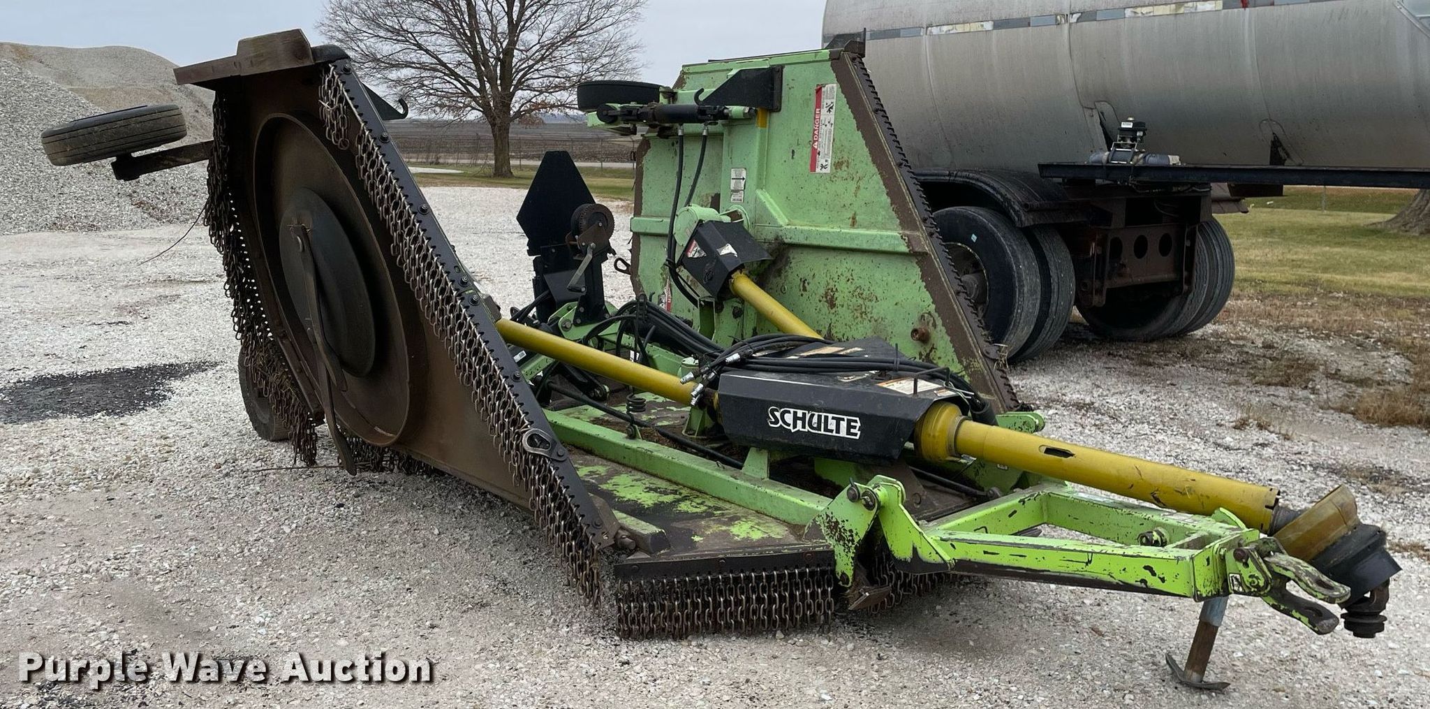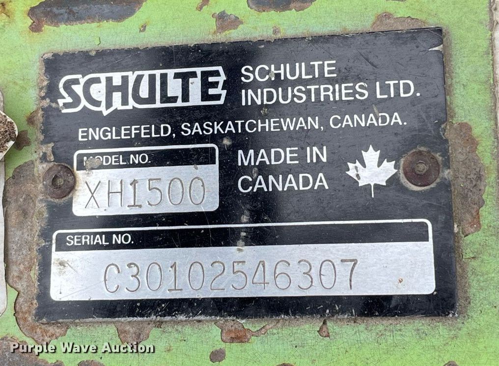 Schulte XH1500 batwing rotary mower. Serial: C30102546307. Features Width: 15', Hydraulic lift, Hydraulic fold, PTO: 540. Tires Size: 19", Solid. Knox County, IL. 1214 US Hwy 150. KNOXVILLE, IL 61448
