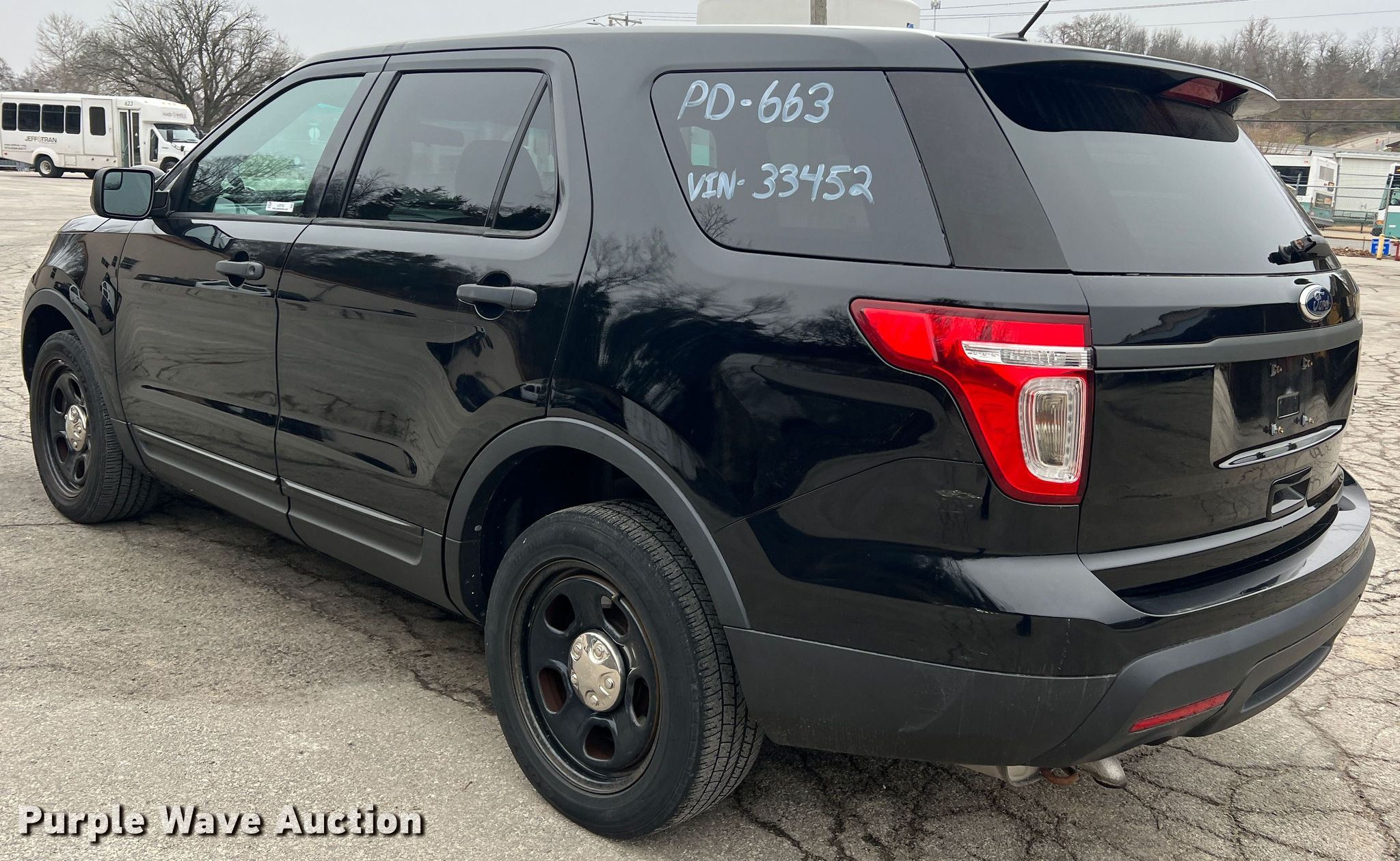 2014 Ford Explorer Police Interceptor SUV. Miles: 122,810 on odometer, Hours: 8,860 on meter, VIN: 1FM5K8AR3EGA33452, Unit #: PD-663. Engine Displacement: 3.7L V6 DOHC, Cylinders: 6, Fuel type: Gas. Transmission Automatic, All wheel drive. Interior AC, Heat, Power windows, Power locks, Cruise control. Tires Size: 245/55R18. Notes Dead battery. Missouri title. Title distribution may be delayed up to 14 days from verification of funds. City of Jefferson, MO. 820 East Miller Street. Jefferson City, MO 65101