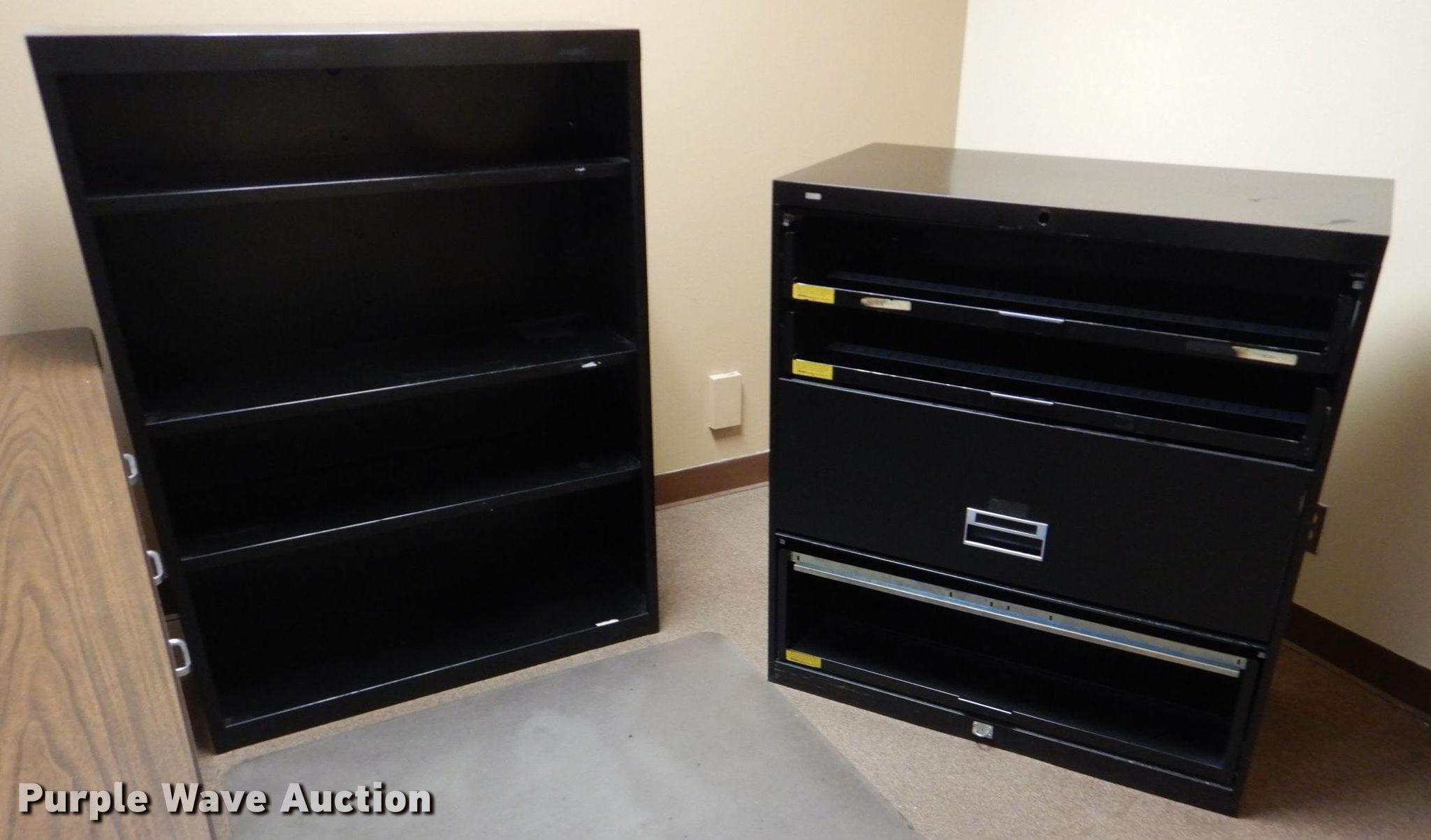 Purple Wave is selling a used Furniture in Oklahoma. This item is a Furniture with the following: Desk, File cabinet, Bookshelf