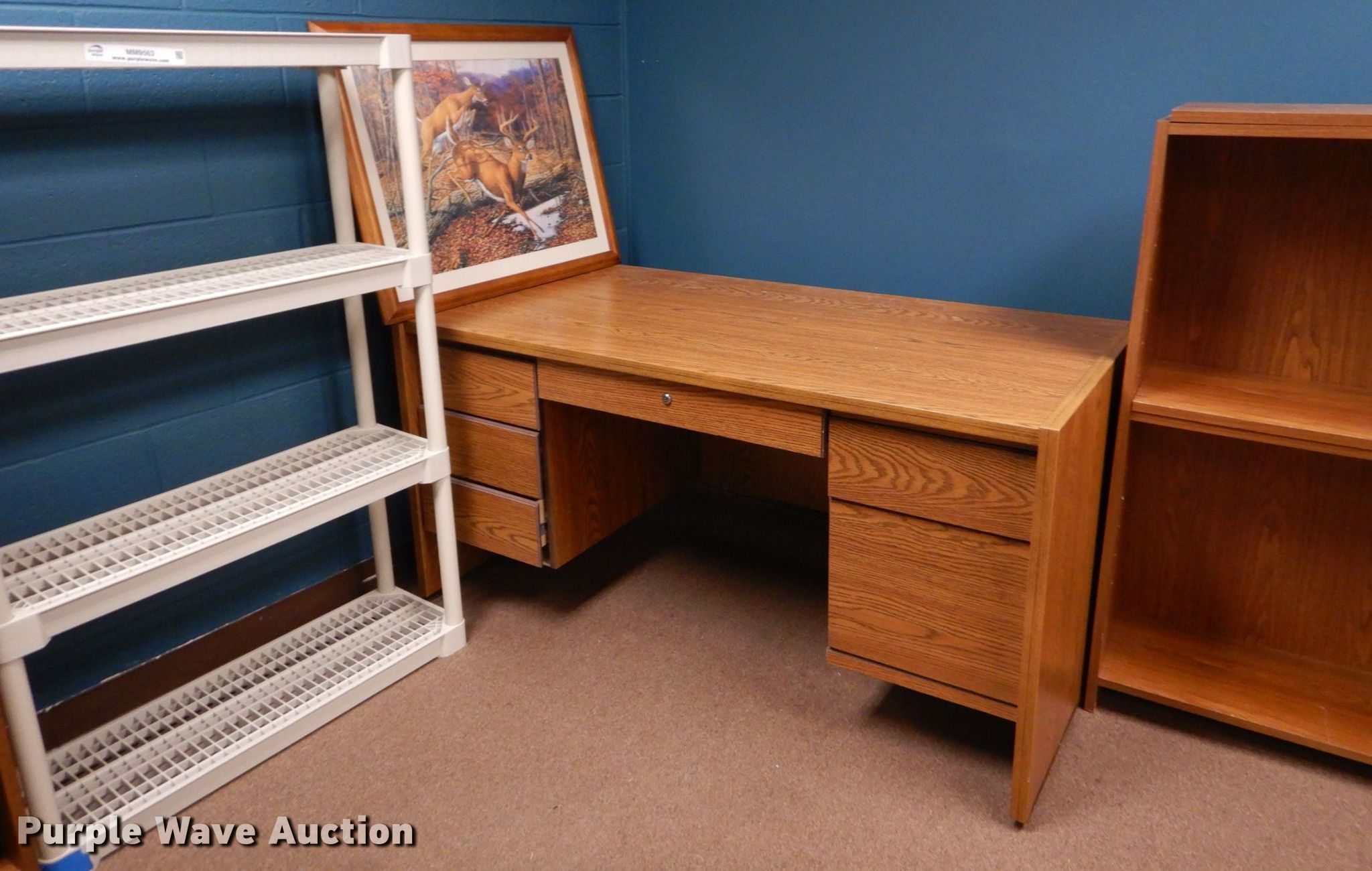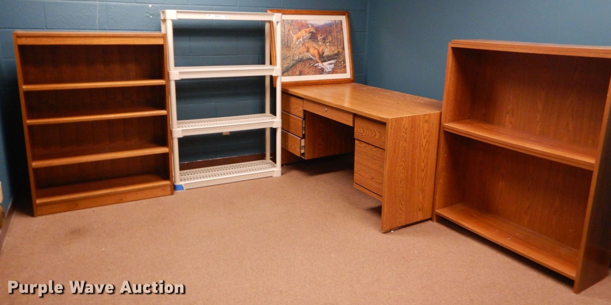 Purple Wave is selling a used Office Supplies and Equip. in Oklahoma. This item is a Office supplies and equipment with the following: Desks, Shelves, Deer picture