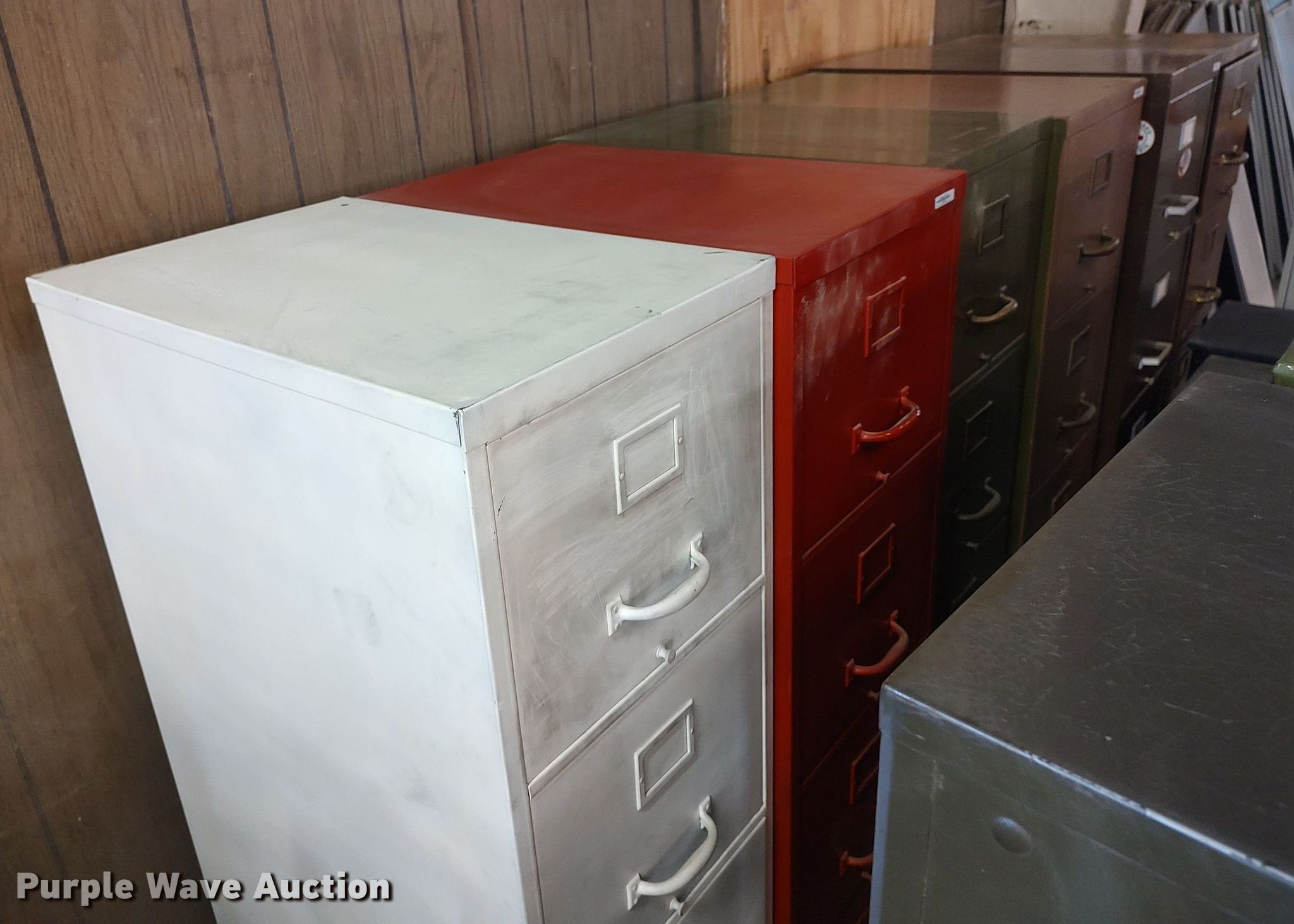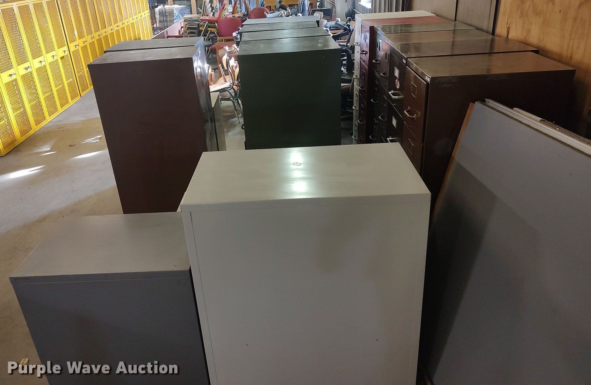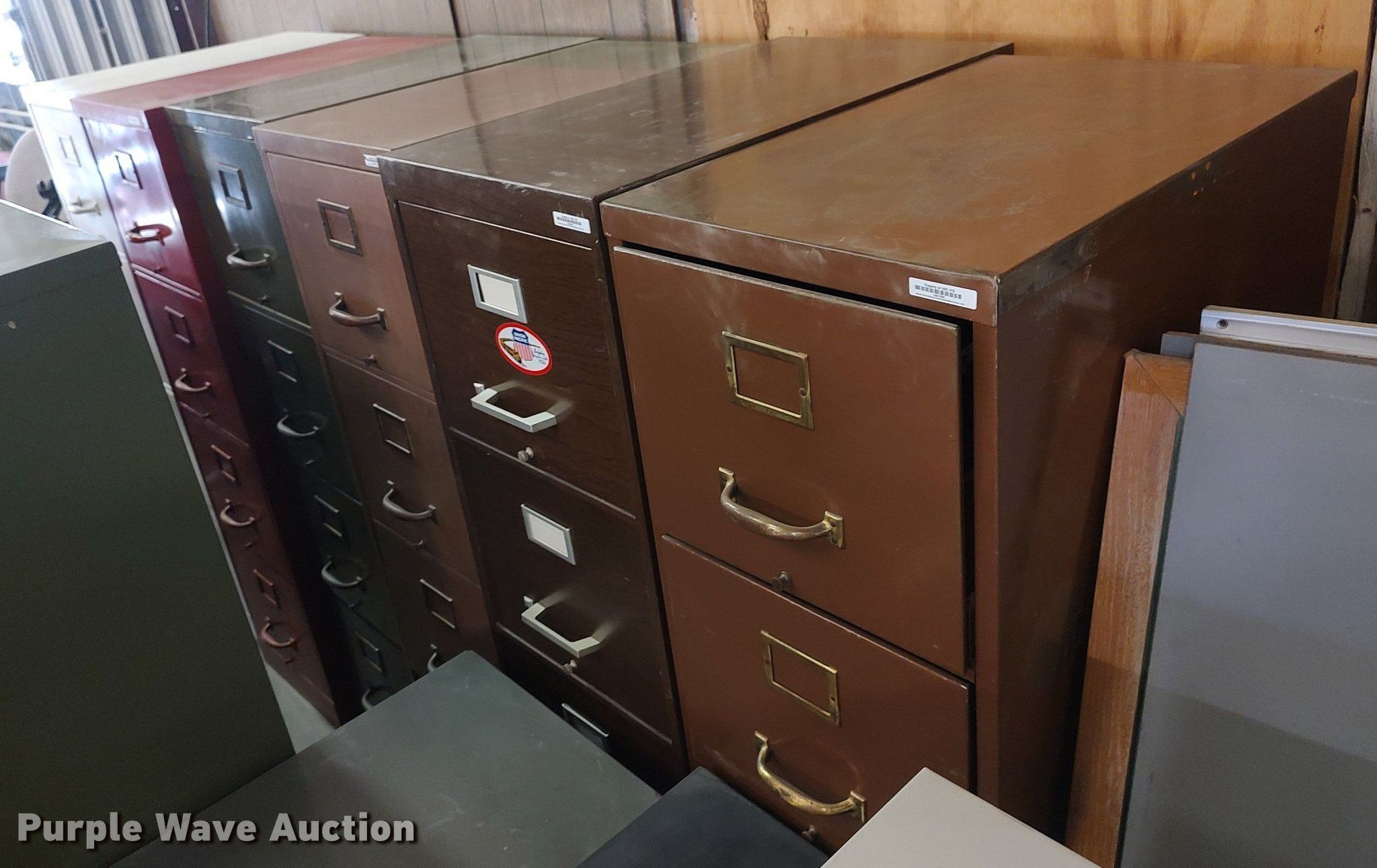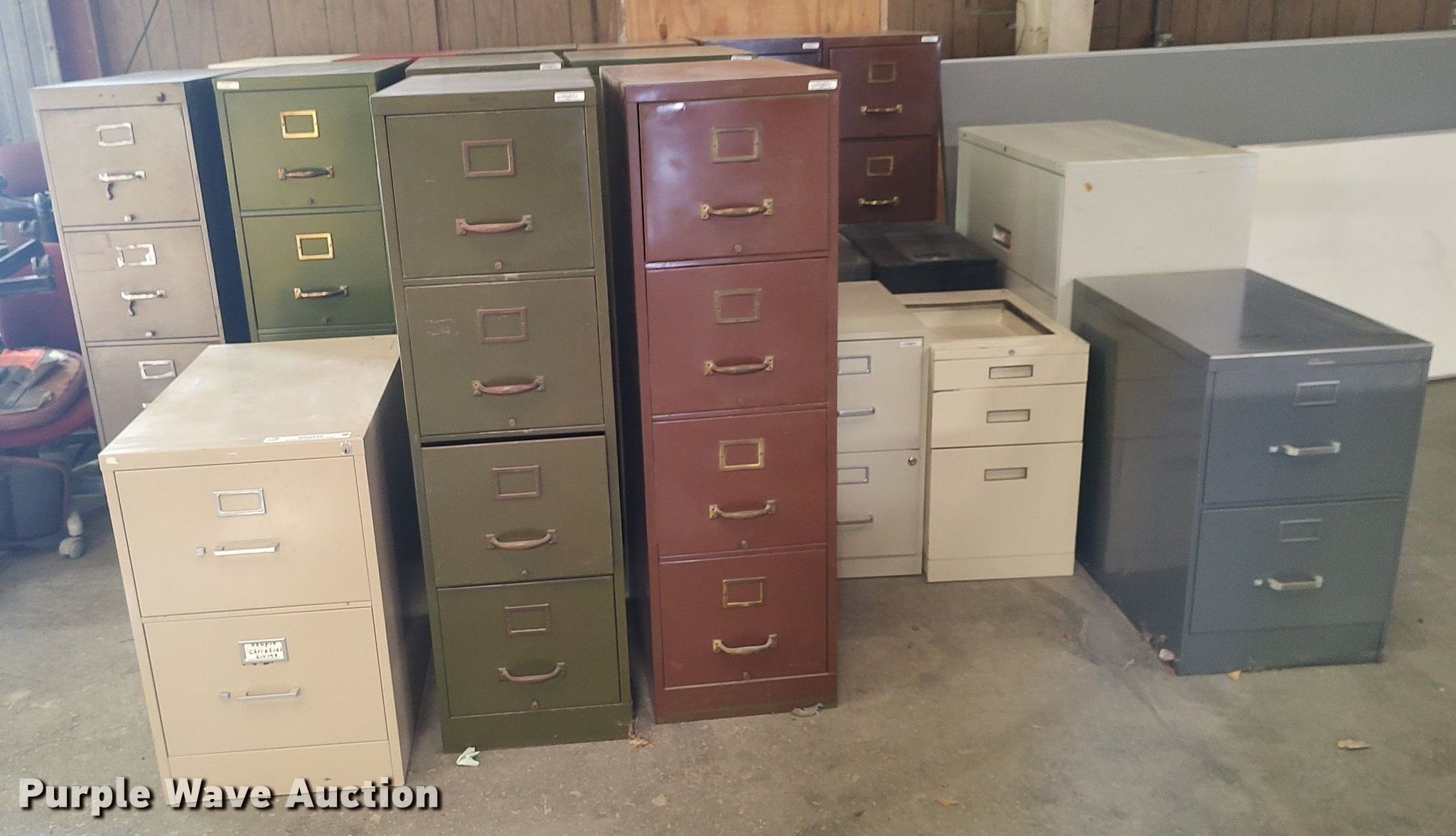 Purple Wave is selling a used Office Supplies and Equip. in Kansas. This item is a Approximately 19 metal file cabinets with the following: Approximately 19 metal file cabinets. USD 410. 416 S Date St. Hillsboro, KS 67063