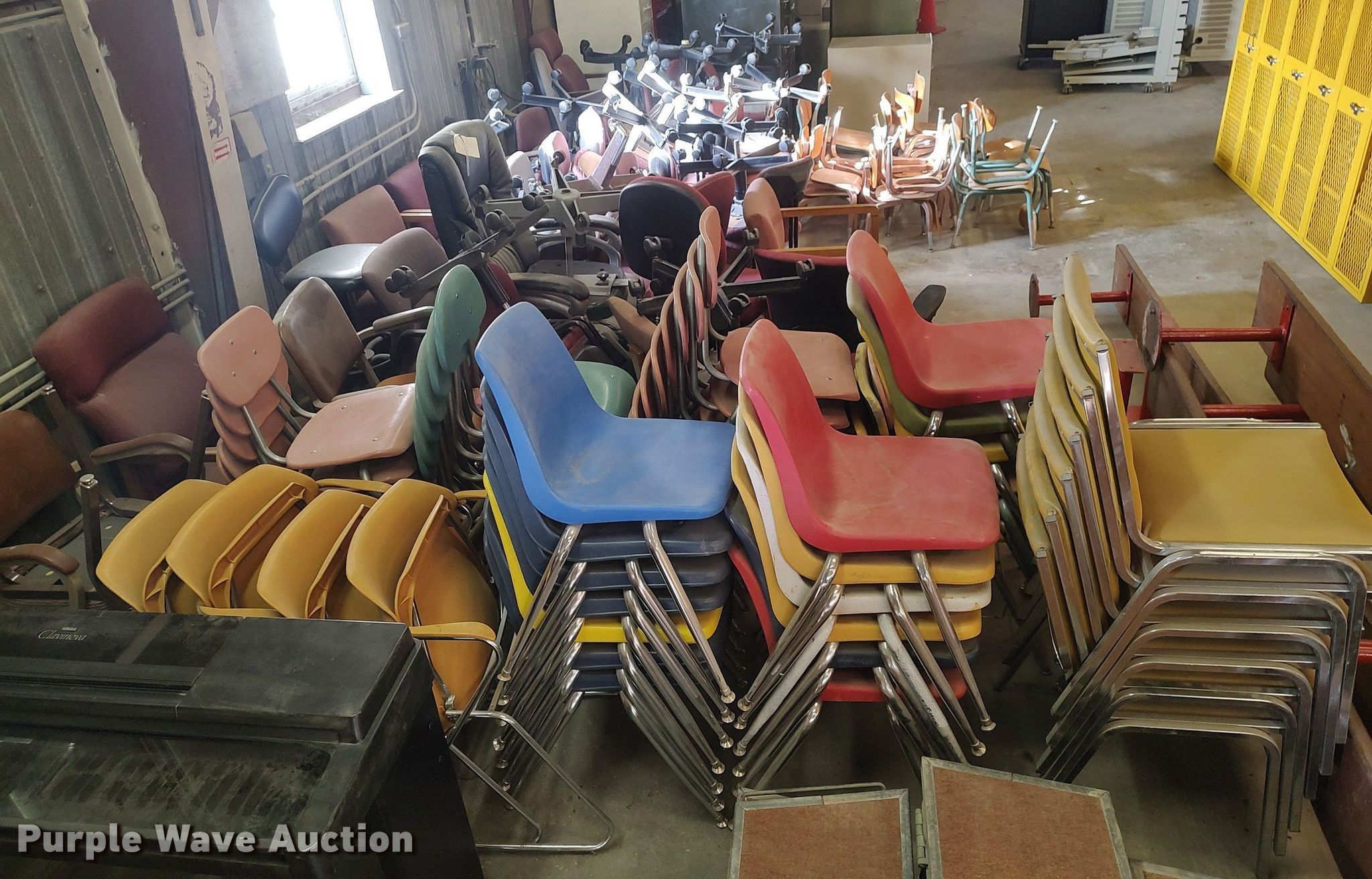 Purple Wave is selling a used Furniture in Kansas. This item is a Approximately 115 chairs with the following: Approximately 115 chairs. USD 410. 416 S Date St. Hillsboro, KS 67063
