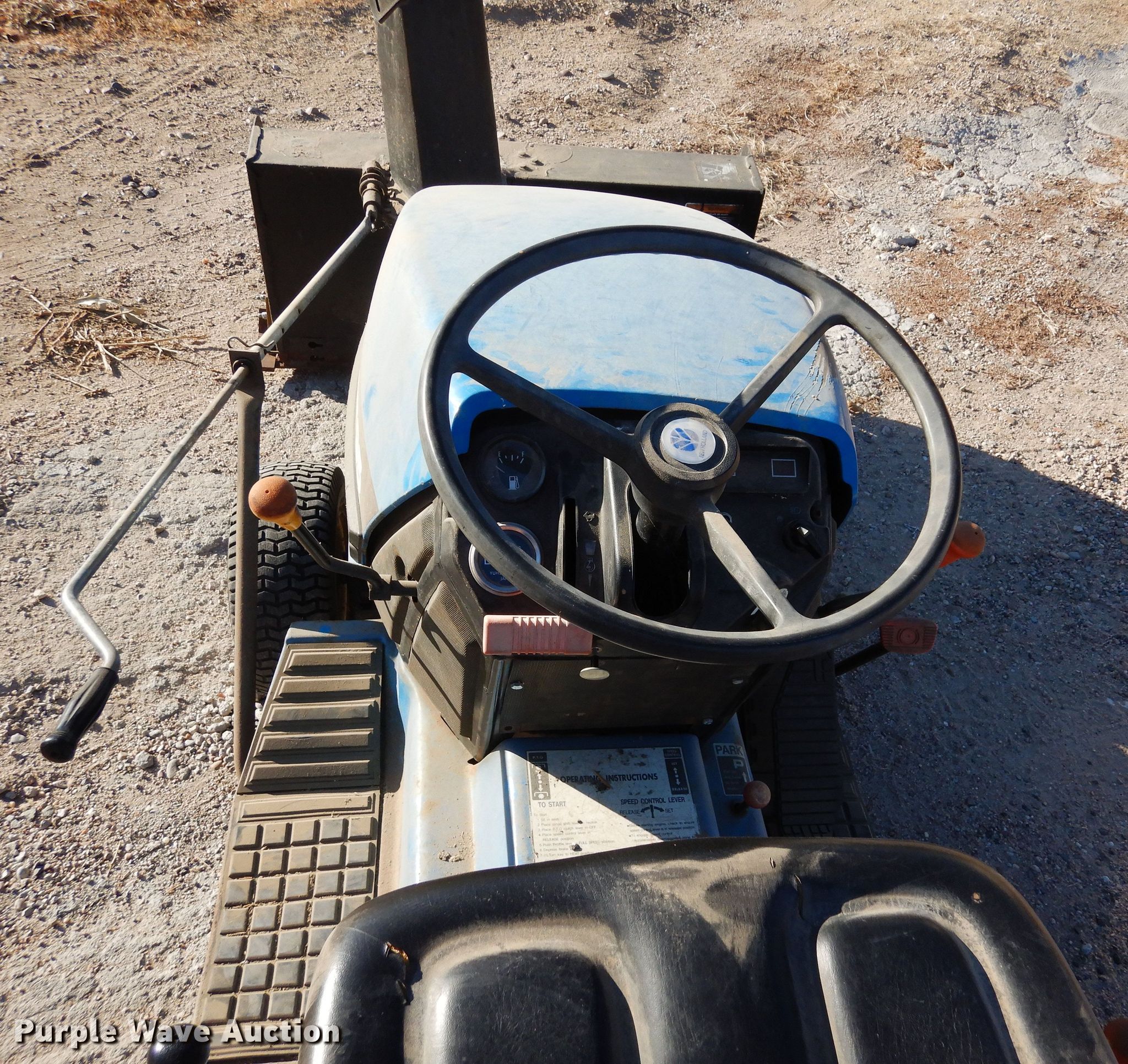 Purple Wave is selling a used Lawn Mower in Kansas. This item is a New Holland GT95 lawn mower with the following: Hours: 1,034 on meter, Serial: T900689
