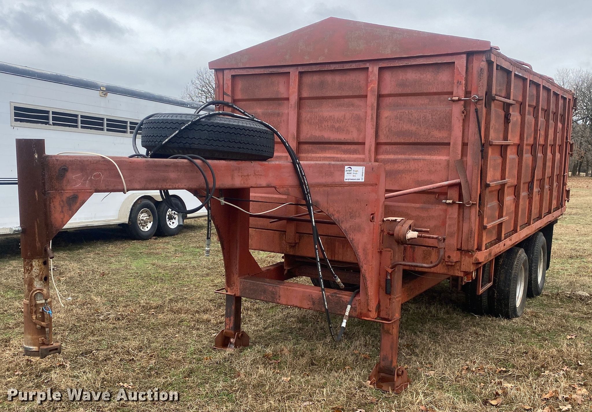 Purple Wave is selling a used Grain or Commodity Trailer in Oklahoma. This item is a Shop built grain trailer with the following: Overall: 23' L x 93" W, Body: 14' L x 96" W, Side height: 5'