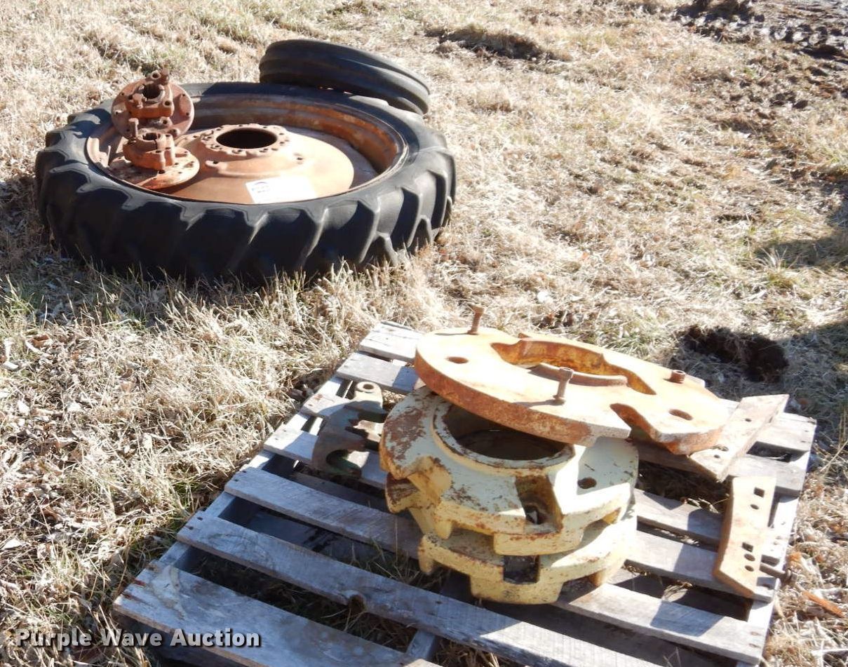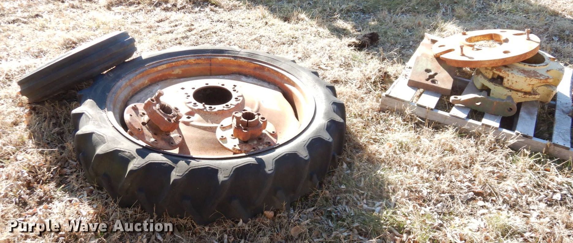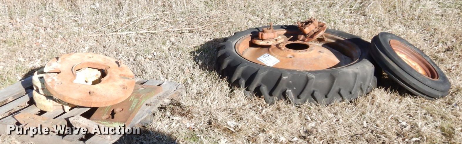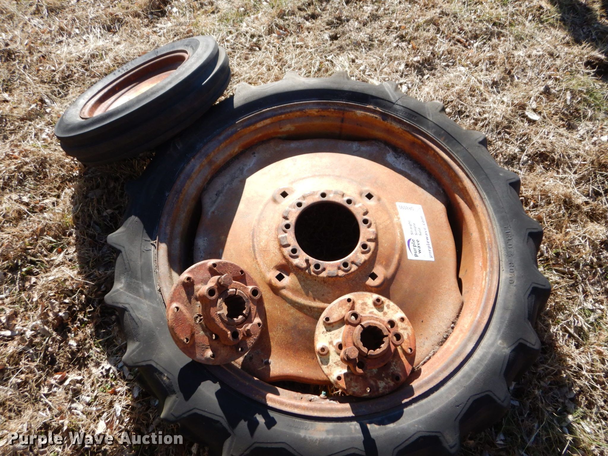 Purple Wave is selling a used Industrial Tires or Tracks in Kansas. This item is a Tires and wheels with the following: Firestone 11.2-38 tire and wheel, Maxi Trac 5.50-16 tire and wheel, Hubs, Wheel weights