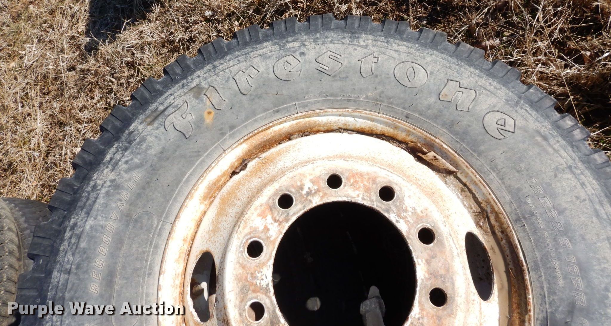 (4) Firestone tires and wheels. (2) T831 Radial 12R22.5, (2) Destination 265/70R17. JAG Trucking, LLC. 23257 South Lewelling Road. Osage City, KS 66523