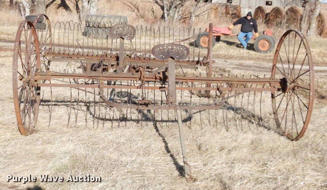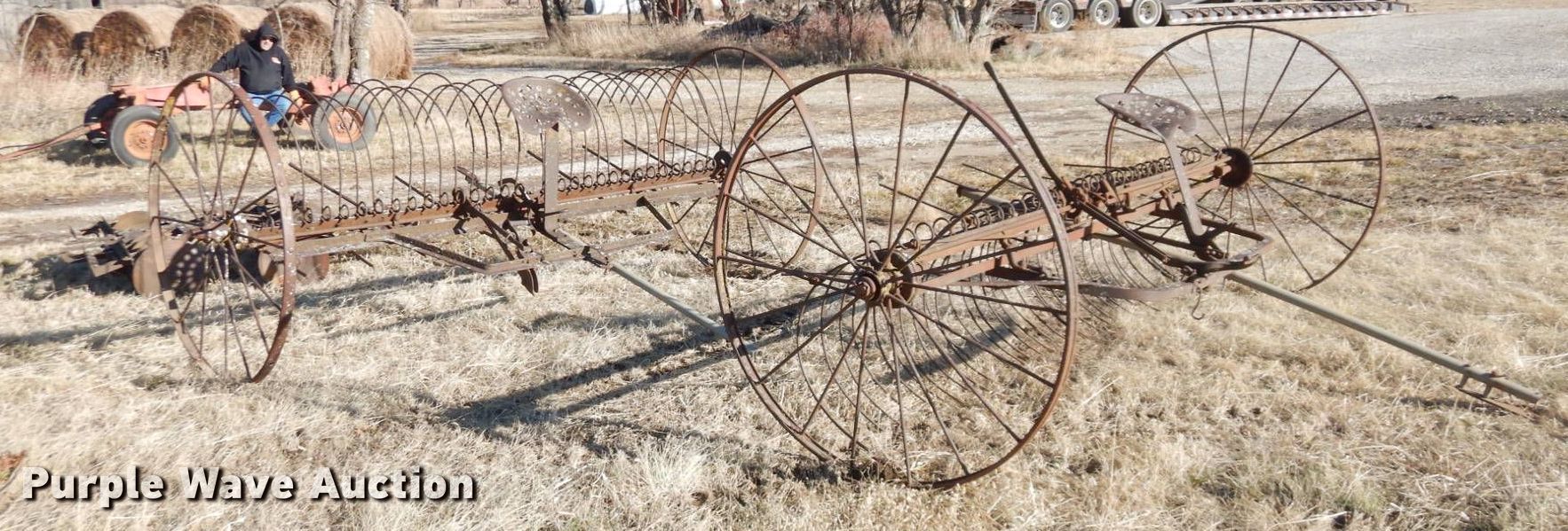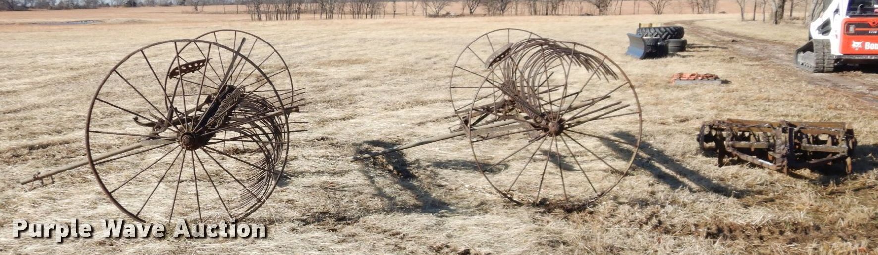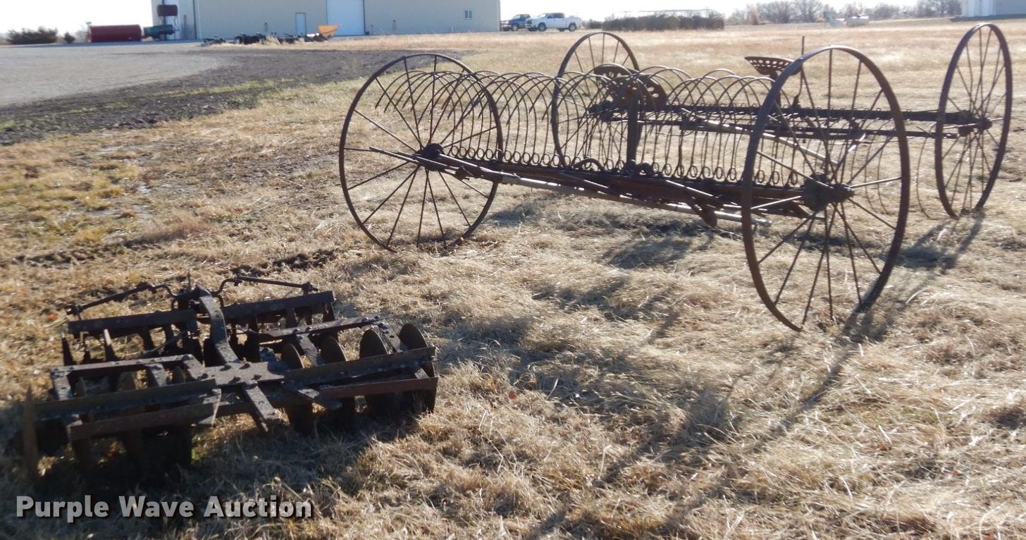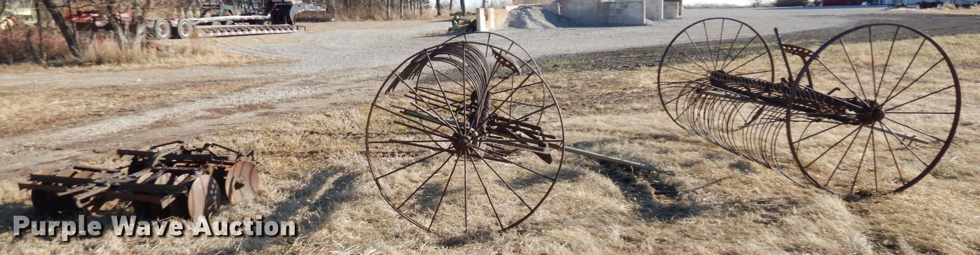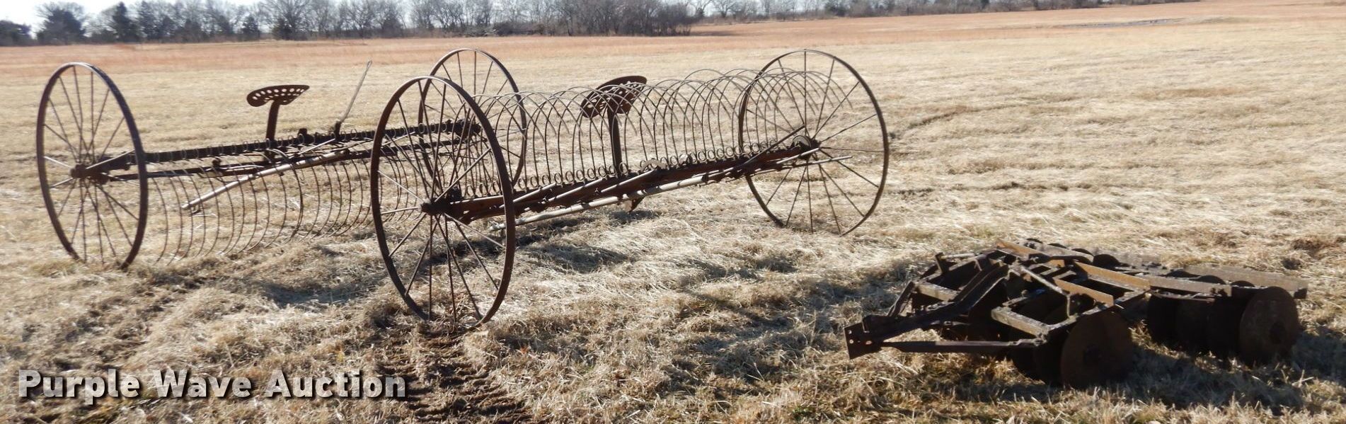 Purple Wave is selling a used Ag Equip. Other in Kansas. This item is a Ag equipment with the following: (2) Antique hay rakes, Antique disk