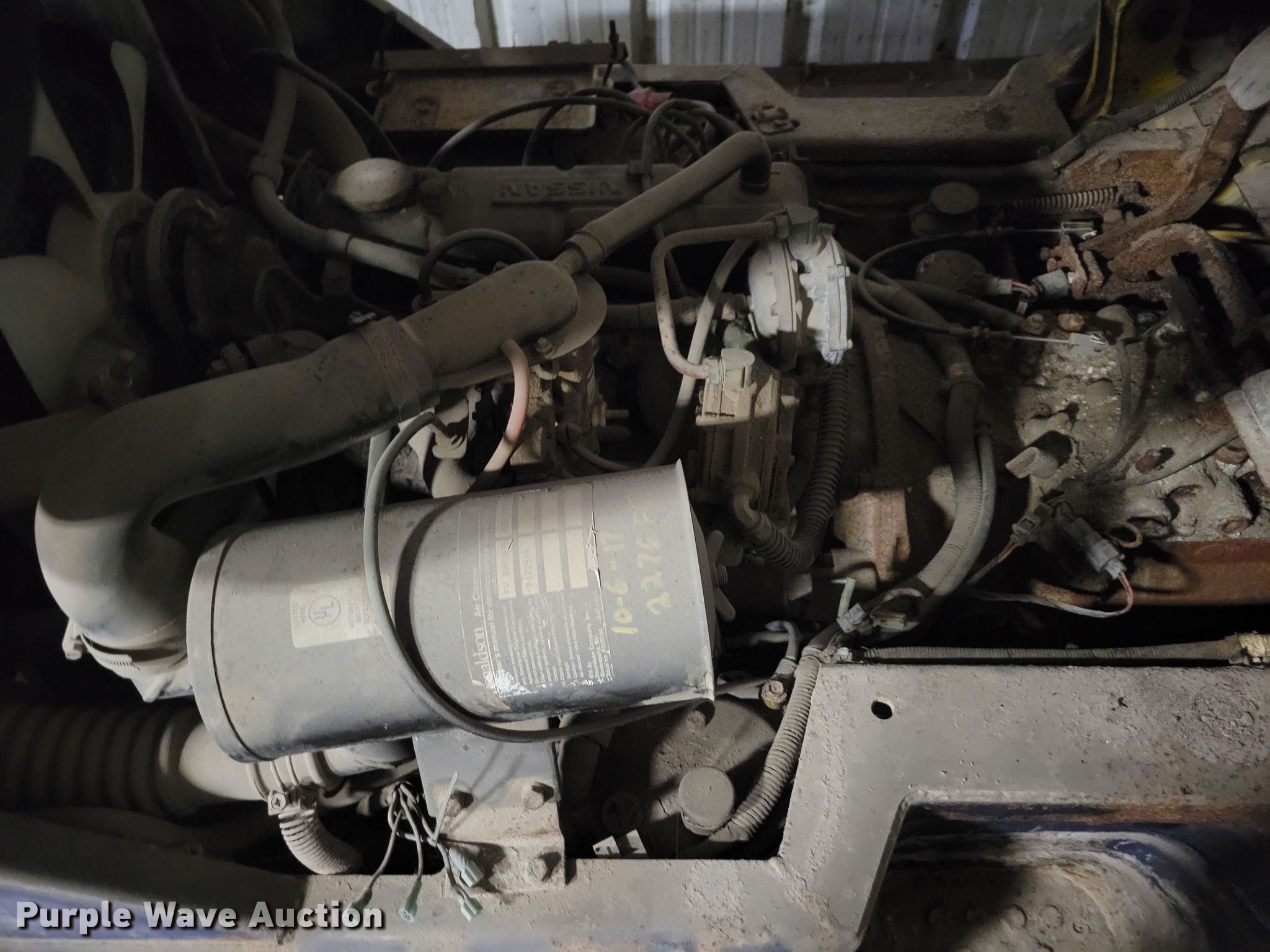 Komatsu FG25TLP-12 forklift. Hours: 4,224 on meter, Serial: 510646A. Engine Nissan, Cylinders: 4, Fuel type: LPG LP bottle: Not included. Transmission Powershift. Operators station Canopy. Features Maximum lift capacity: 3,730 lbs, Maximum lift height: 188", Mast stages: 3, Mast tilt, Fork length: 48". Tires Size: 6.00-9, Solid. Notes Parts may be missing, Non-operational unit. Atchison County AgChoice - Division of MFA, Inc... 105 US Hwy 136. Rock Port, MO 64482