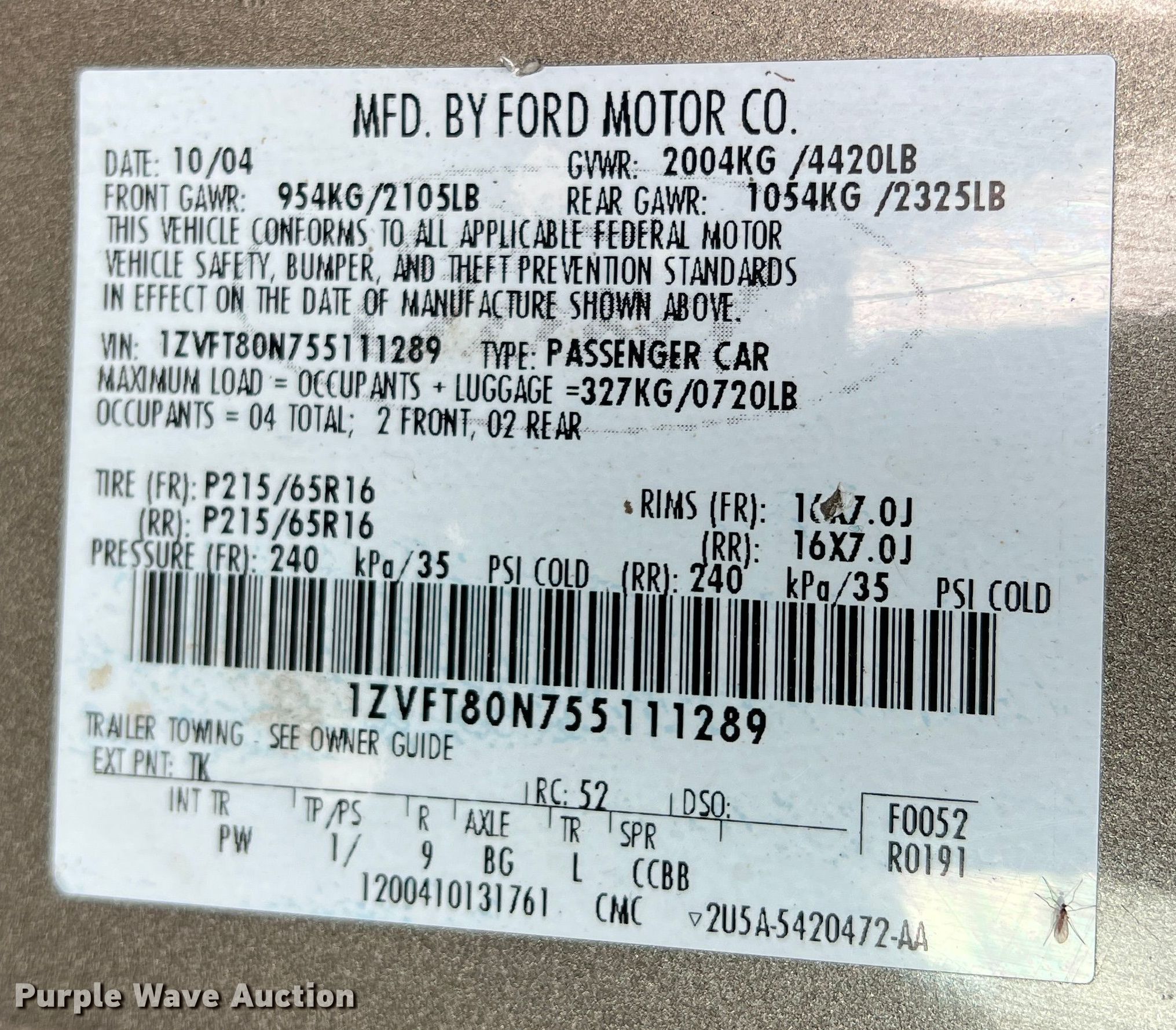 Purple Wave is selling a used Passenger Vehicle in Texas. This item is a 2005 Ford Mustang with the following: Miles: 223,956 on odometer, VIN: 1ZVFT80N755111289