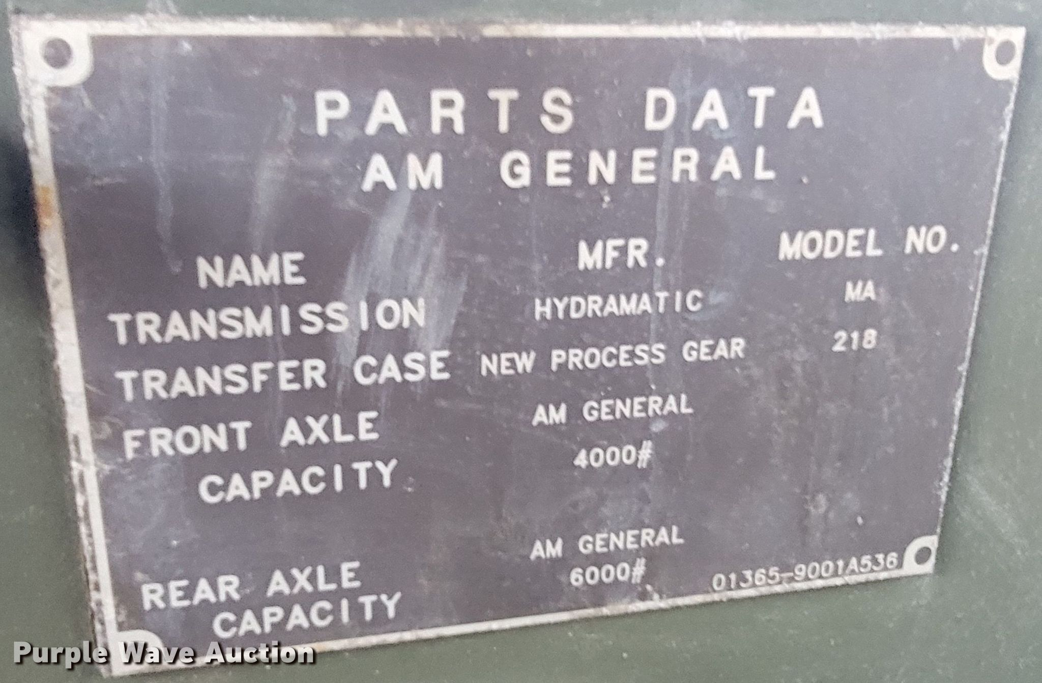 Take a look at this used 1988 Am General Humvee being sold on January 18th, 2023 in the SOLD! January 18 Vehicles and Equipment Auction made by Am General. Take a look at all of the item information below or take a look at similar auctions for Passenger Vehicles.