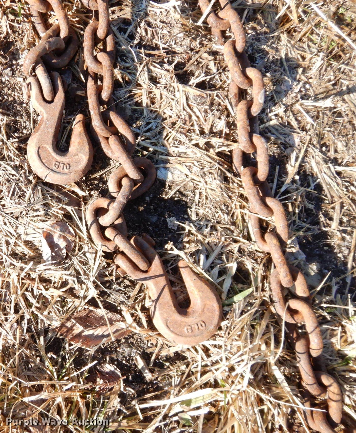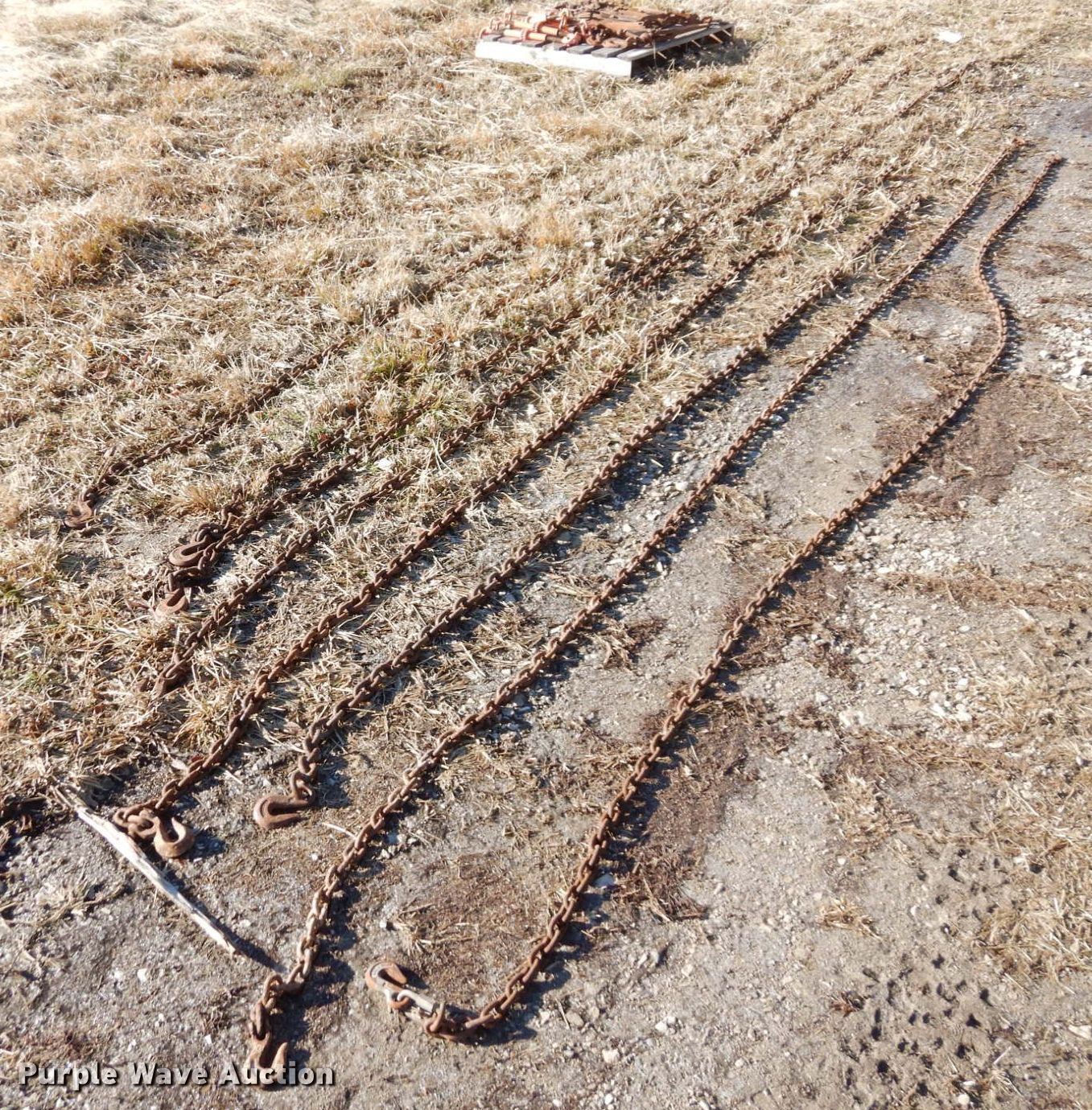 Purple Wave is selling a used Tools in Kansas. This item is a Chains and boomers with the following: (8) chains, 12-20' L, (16) boomers