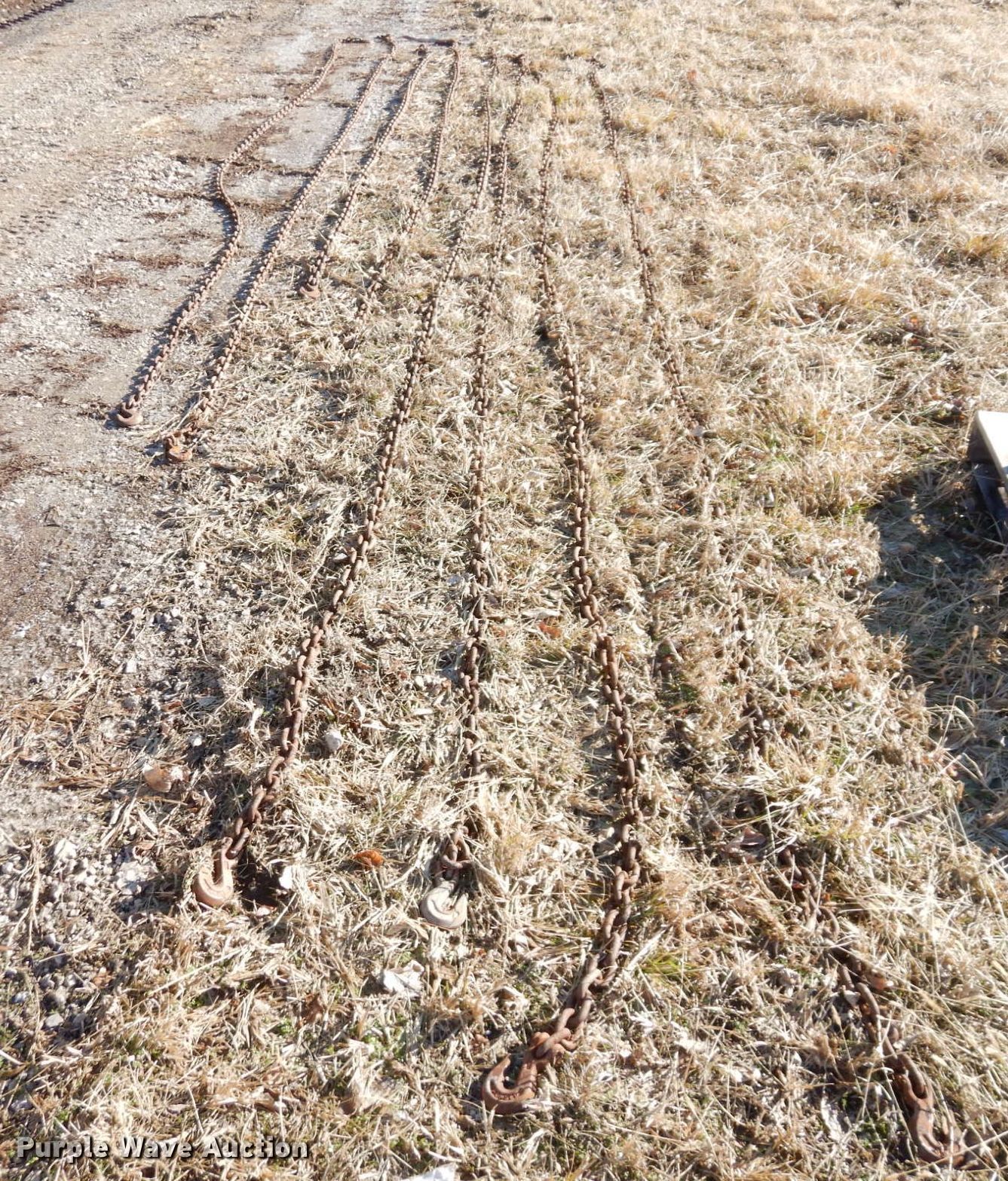 Chains and boomers. (8) chains 12-20' L, (16) boomers. JAG Trucking, LLC. 23257 South Lewelling Road. Osage City, KS 66523