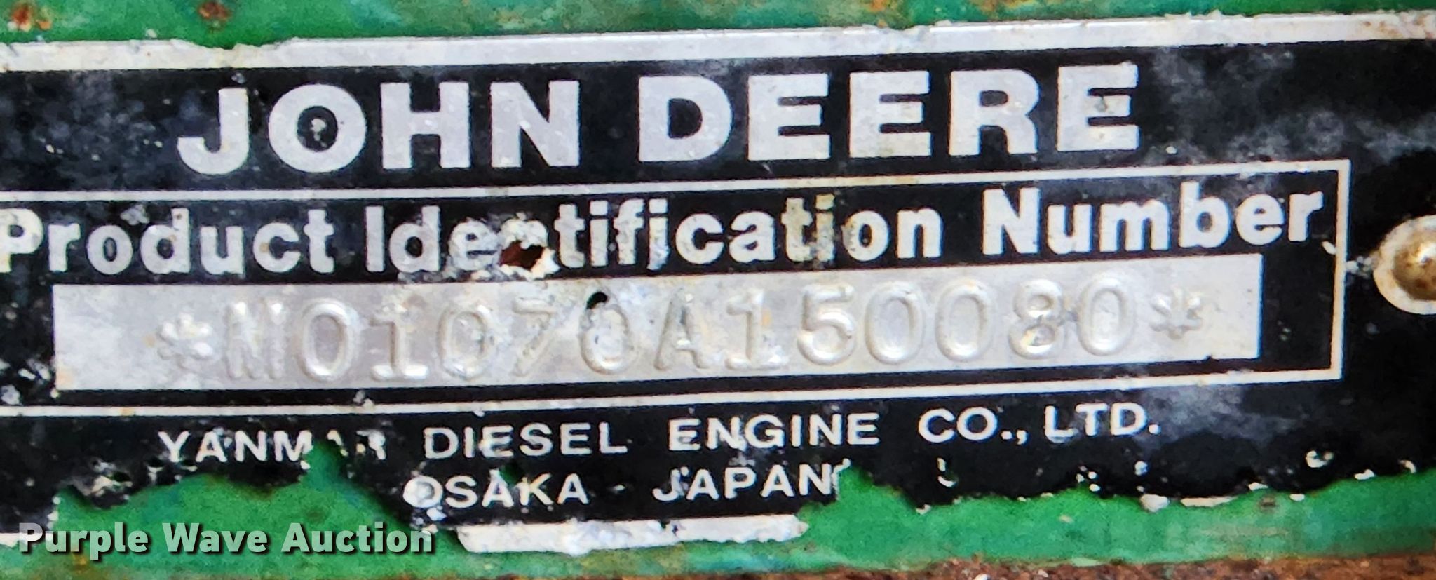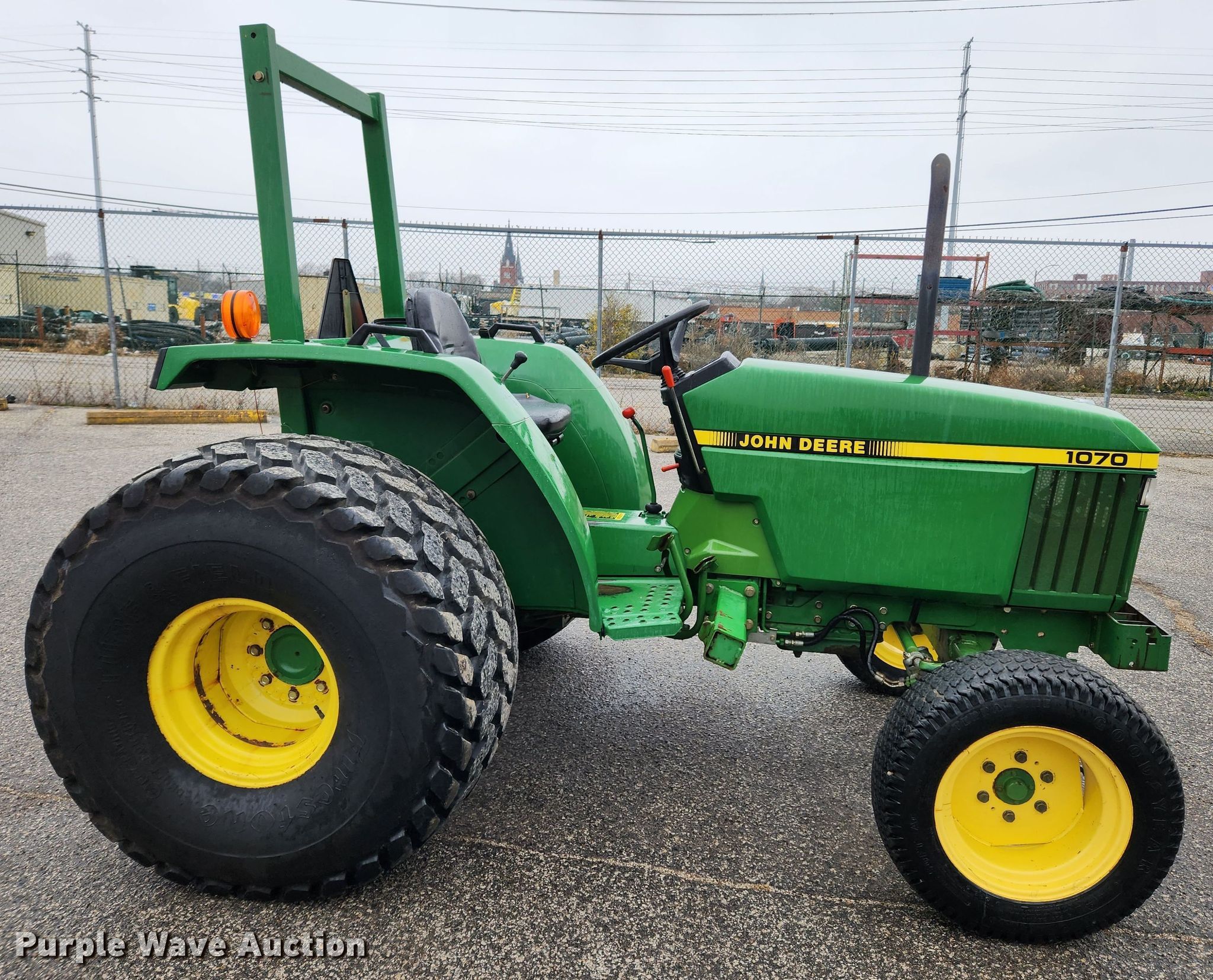 1996 John Deere 1070 tractor. Hours: 1,404 on meter, Serial: M01070A150080. Engine Yanmar 4TN84-RJK, Serial: CH4048D012227, Cylinders: 4, Fuel type: Diesel, HP: 39. Transmission Manual, 9F - 3R, Differential lock. Features PTO: 540, Three point Top link. Tires Front: 27x8.50R15, Rear: 21.5L-16.1. Ahrens Contracting. St. Louis, MO 63146