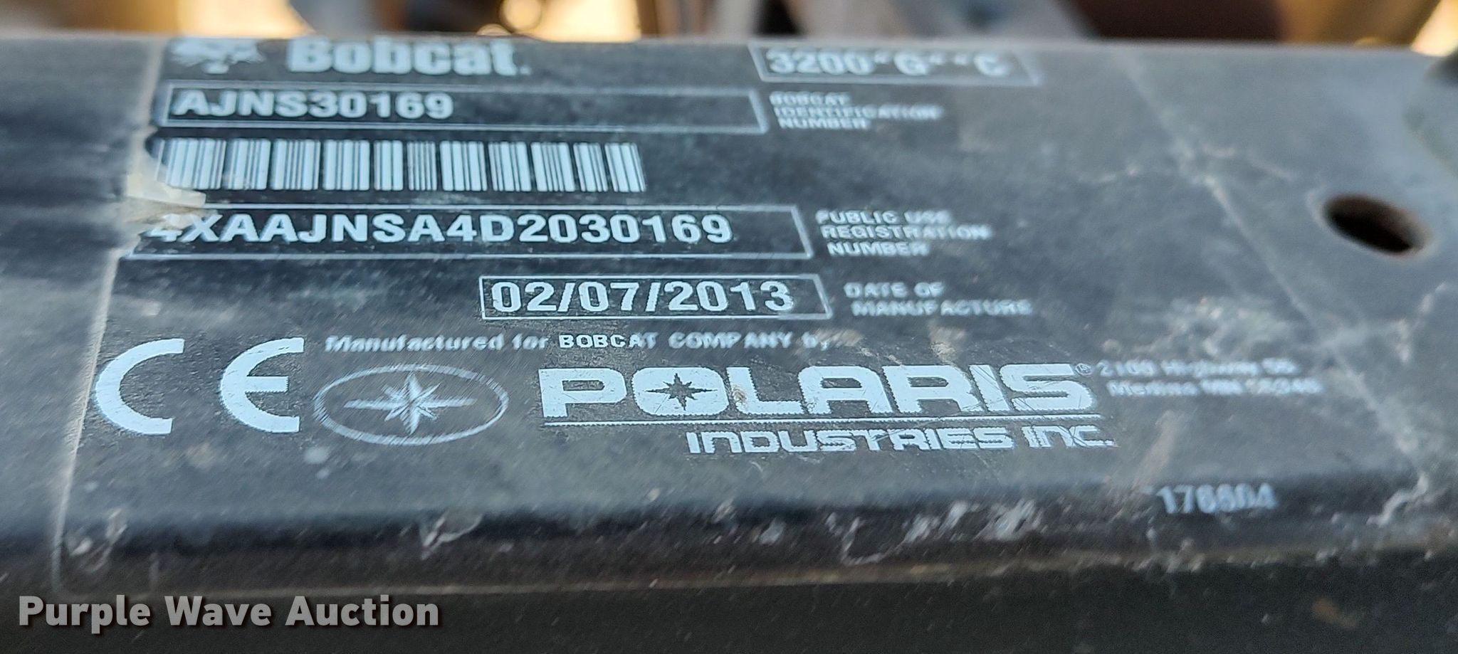 Purple Wave is selling a used Utility Vehicle in Oklahoma. This item is a 2013 Bobcat 3200 utility vehicle with the following: Hours: 1,397 on meter, VIN: 4XAAJNSA4D2030169