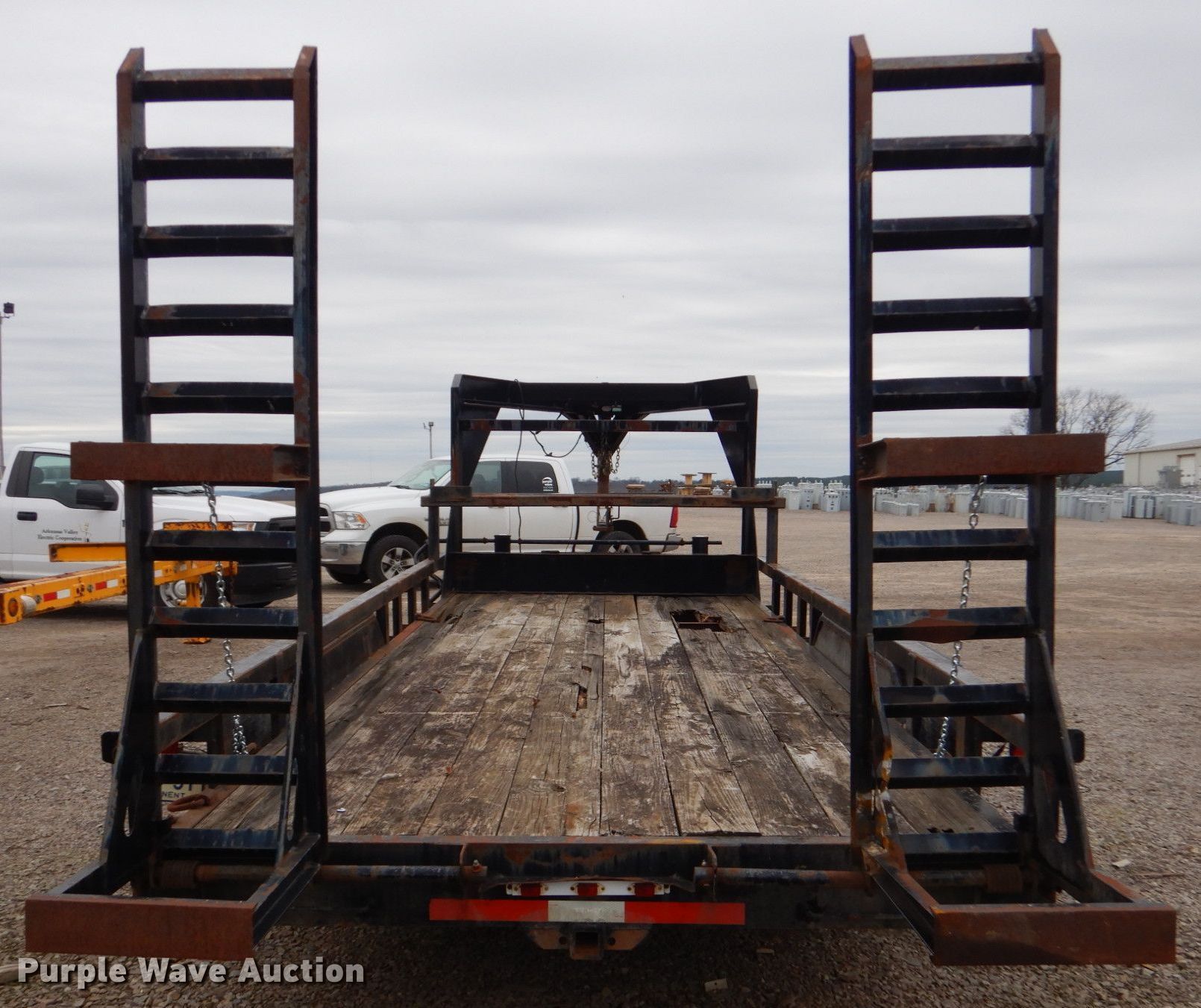 2012 Top Hat HHGN18X7-16E-H equipment trailer. VIN: 4R7GU1824CT115351, Unit #: 181. Dimensions Overall: 28' 3" L x 8' 5" W, Deck: 18' L x 7' 4" W, Deck height: 2' 3", Ramps: Manual Length: 5' 10". Features Deck type: Wood. Chassis Hitch: Gooseneck, Landing gear: Dual, Suspension: Spring, Brakes: Electric, Axles: Tandem, GVWR: 16,000 lbs, GAWR: 8,000 lbs. Tires Steel wheels, Size: 215/75R17.5. Arkansas title. Title distribution may be delayed up to 14 days from verification of funds. Arkansas Valley Electric Cooperative Corp.. 208 South 17th Street. Ozark, AR 72949