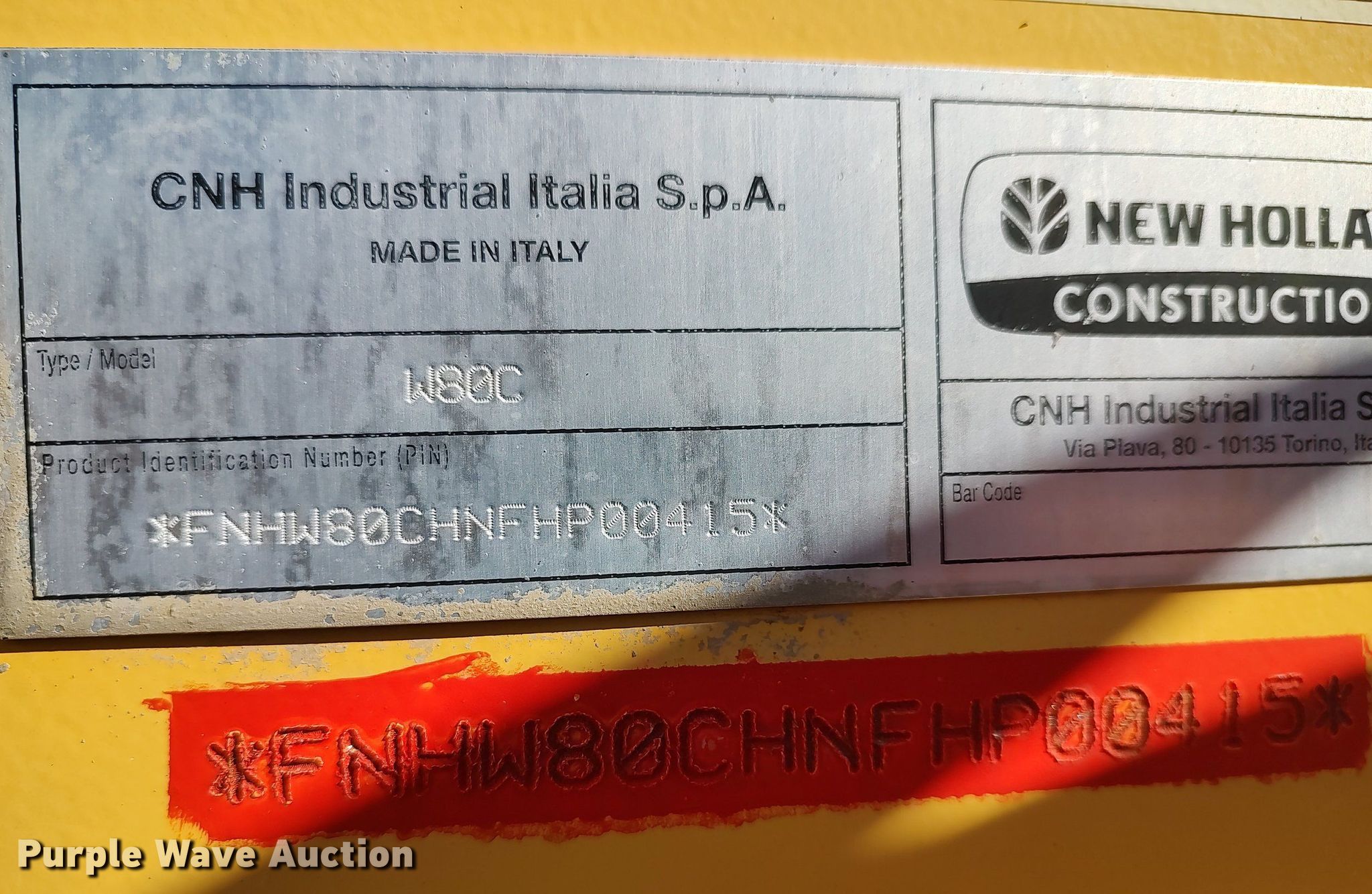Purple Wave is selling a used Wheel Loader in Oklahoma. This item is a 2015 New Holland W80C wheel loader with the following: Hours: 4,453 on meter, Serial: FNHW80CHNFHP00415