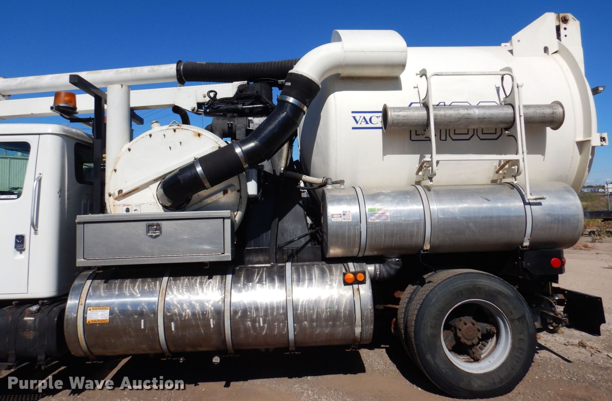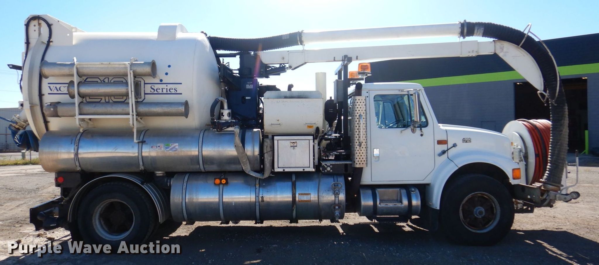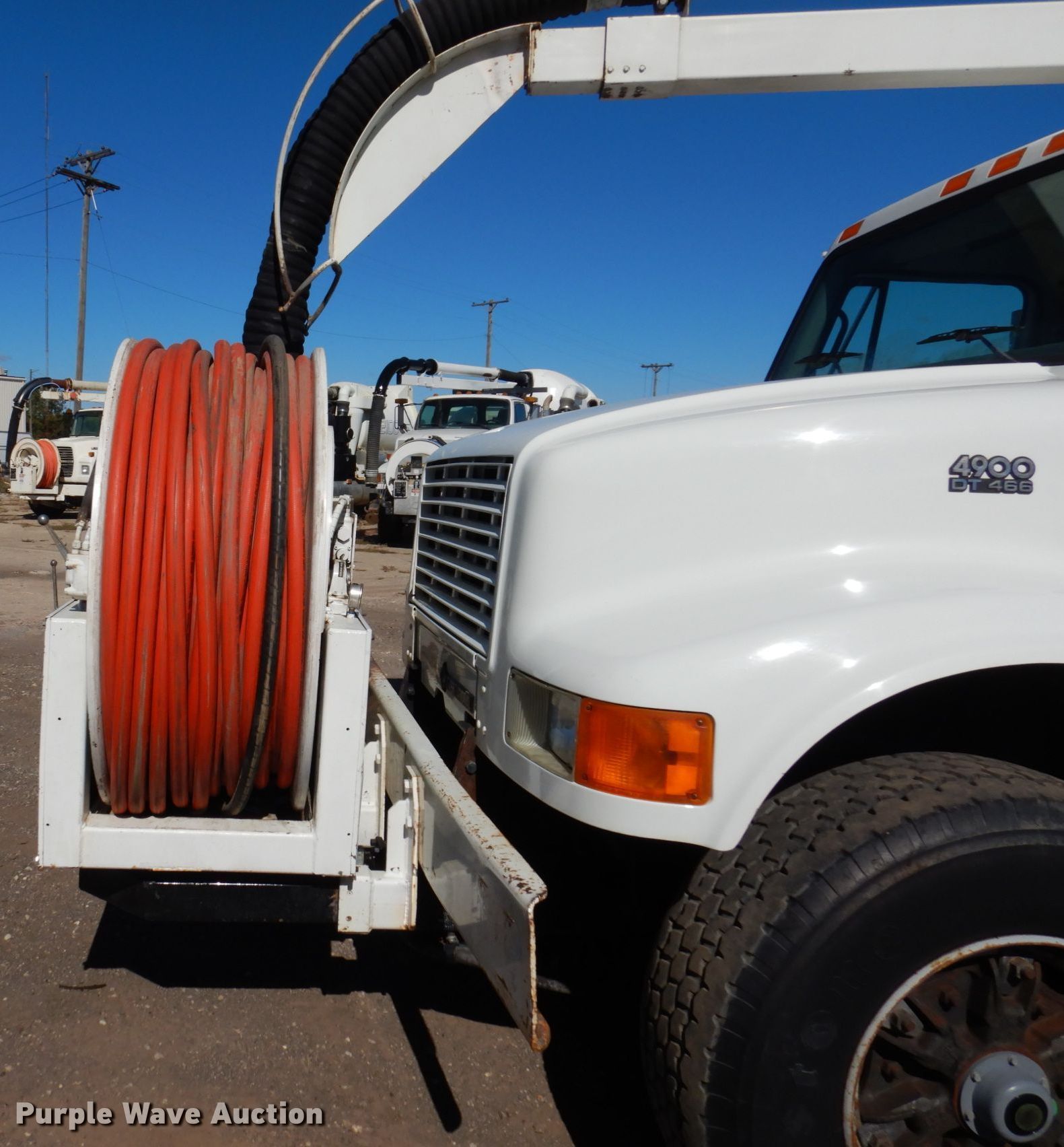 1997 International 4900 sewer jetter truck. Miles: 69,771 on odometer, Hours: 10,217 on meter, VIN: 1HTSDAAR5VH441716. Engine International DT466, Displacement: 7.6L, Cylinders: 6, Fuel type: Diesel. Transmission Automatic. Chassis Axles: Single, Suspension: Spring, Brakes: Air, PTO, Wheelbase: 206". Interior Heat, Heated mirrors, Auxiliary controls. Features Tank bed 1996 Vactor 2110-P4, Serial: 96-07-5882, Capacity: 1,000 gallons, Rear outlet: 6", Engine Detriot Diesel, Cylinders: 4, Fuel type: Diesel, Hours: 4,240, Water pump Vactor, PSI: 2500, GPM: 80, Vacuum pump Vactor, Hose reel Front, Hydraulic, Diameter: 1", Length: 600', Telescopic boom Diameter: 8", Remote control, (4) water tanks Capacity: 1,000 gallons. Tires Front: 385/65R22.5, Rear: 11R22.5. Illinois title. Key Equipment. Springfield, IL 62702