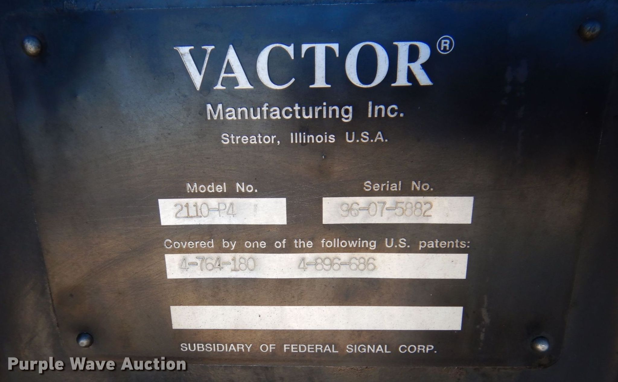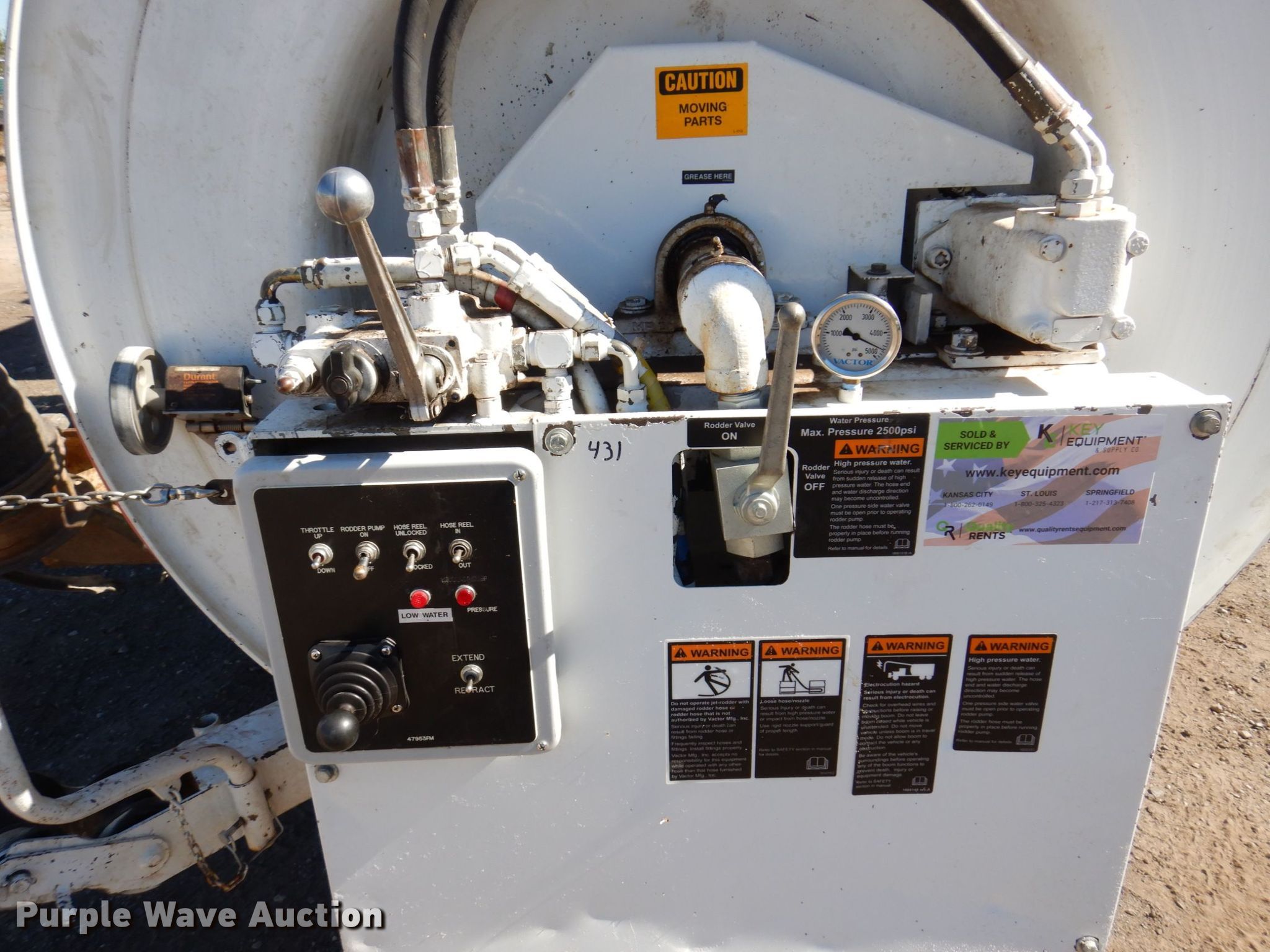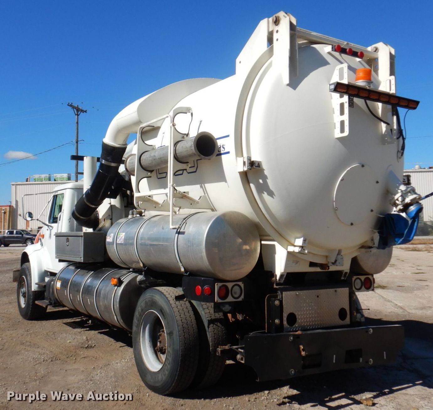 1997 International 4900 sewer jetter truck. Miles: 69,771 on odometer, Hours: 10,217 on meter, VIN: 1HTSDAAR5VH441716. Engine International DT466, Displacement: 7.6L, Cylinders: 6, Fuel type: Diesel. Transmission Automatic. Chassis Axles: Single, Suspension: Spring, Brakes: Air, PTO, Wheelbase: 206". Interior Heat, Heated mirrors, Auxiliary controls. Features Tank bed 1996 Vactor 2110-P4, Serial: 96-07-5882, Capacity: 1,000 gallons, Rear outlet: 6", Engine Detriot Diesel, Cylinders: 4, Fuel type: Diesel, Hours: 4,240, Water pump Vactor, PSI: 2500, GPM: 80, Vacuum pump Vactor, Hose reel Front, Hydraulic, Diameter: 1", Length: 600', Telescopic boom Diameter: 8", Remote control, (4) water tanks Capacity: 1,000 gallons. Tires Front: 385/65R22.5, Rear: 11R22.5. Illinois title. Key Equipment. Springfield, IL 62702