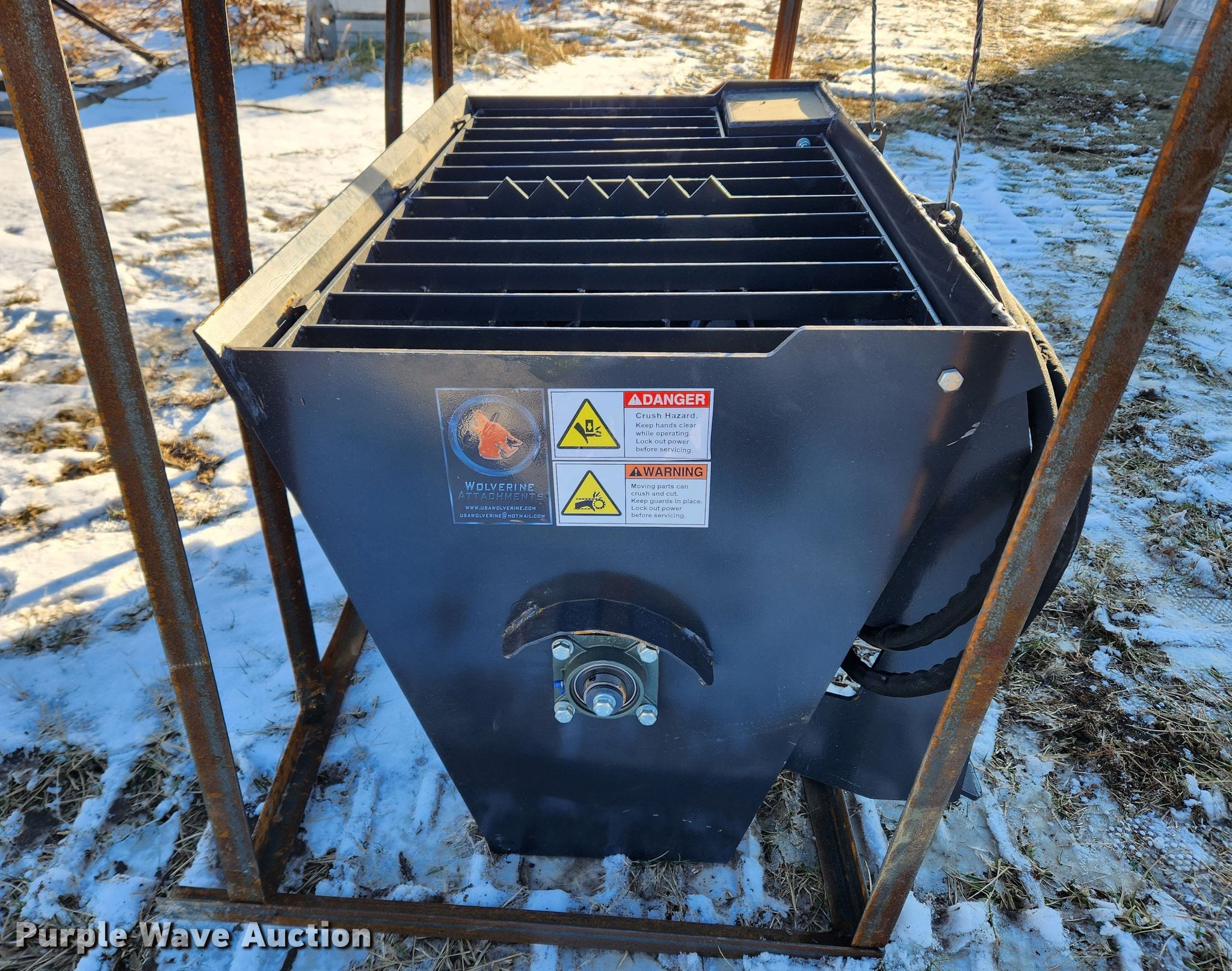 Purple Wave is selling a used Skid Steer Attach. in Illinois. This item is a Wolverine skid steer concrete mixer with the following: 48" W x 28" D hopper