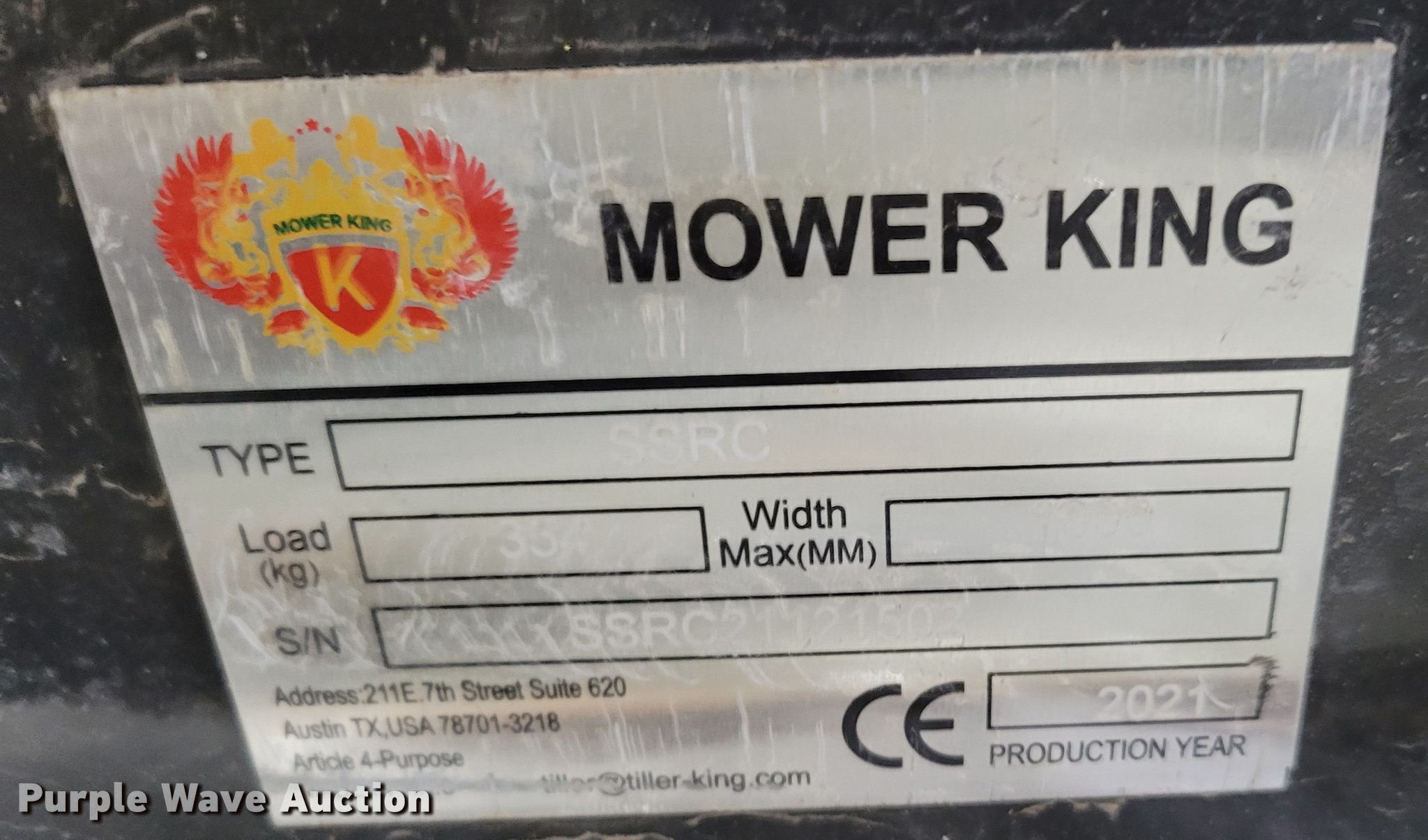 Purple Wave is selling a used Skid Steer Attach. in Nebraska. This item is a 2021 Mower King SSRC 72" W skid steer rotary mower with the following: Serial: SSRC21121502, Unused