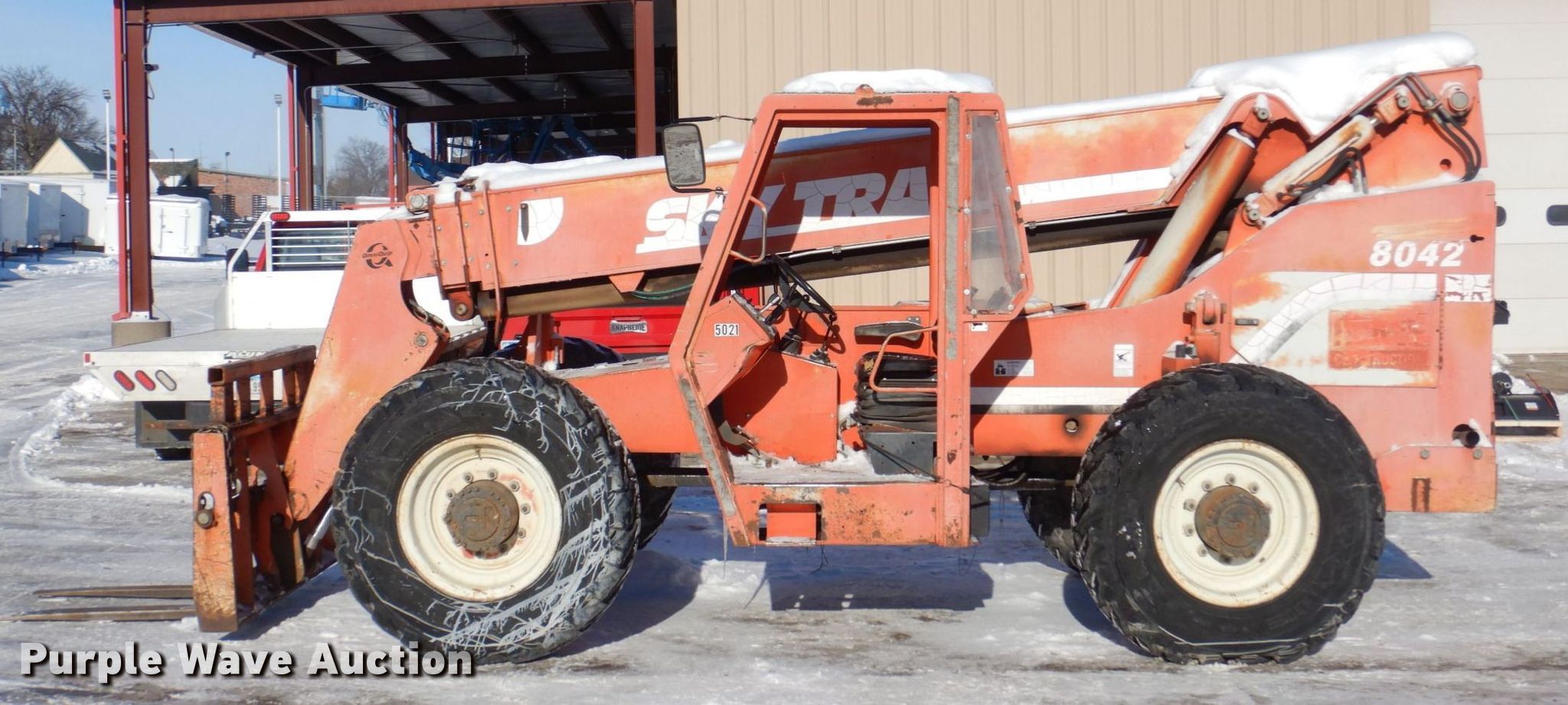Purple Wave is selling a used Telehandler in Iowa. This item is a 1998 Sky Trak 8042 telehandler with the following: Hours: 7,455 on meter, Serial: 8244