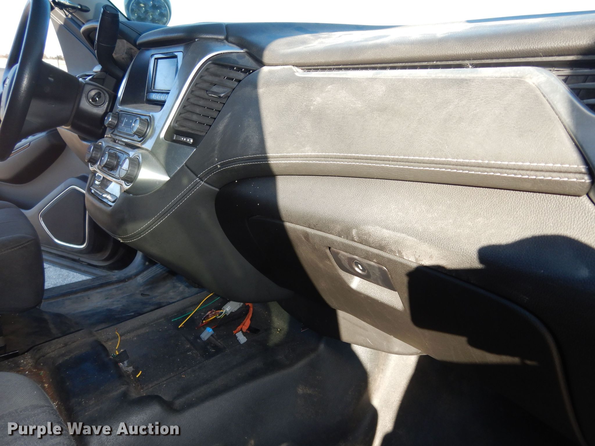 2017 Chevrolet Tahoe Police SUV. Miles: 98,452 on odometer, VIN: 1GNSKDEC4HR351070. Engine Displacement: 5.3L V8 OHV, Cylinders: 8, Fuel type: Gas. Transmission Automatic, Four wheel drive. Interior AC, Heat, Seat: Power driver, Power windows, Power locks, Cruise control, Backup camera. Tires Front: 265/60R17. Notes Center console missing, Dash warning indicator: Check engine. Kansas title. Olathe, KS 66061