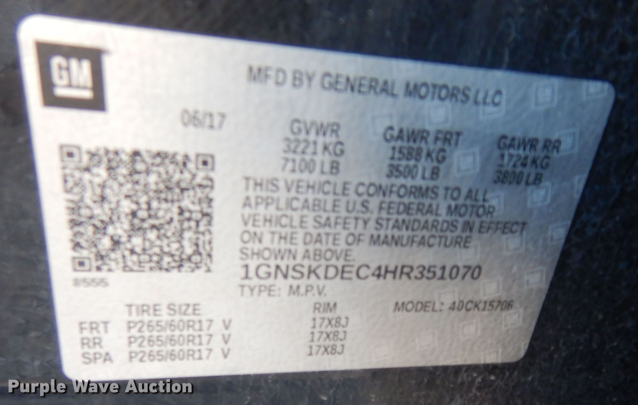 Purple Wave is selling a used Passenger Vehicle in Kansas. This item is a 2017 Chevrolet Tahoe Police SUV with the following: Miles: 98,452 on odometer, VIN: 1GNSKDEC4HR351070