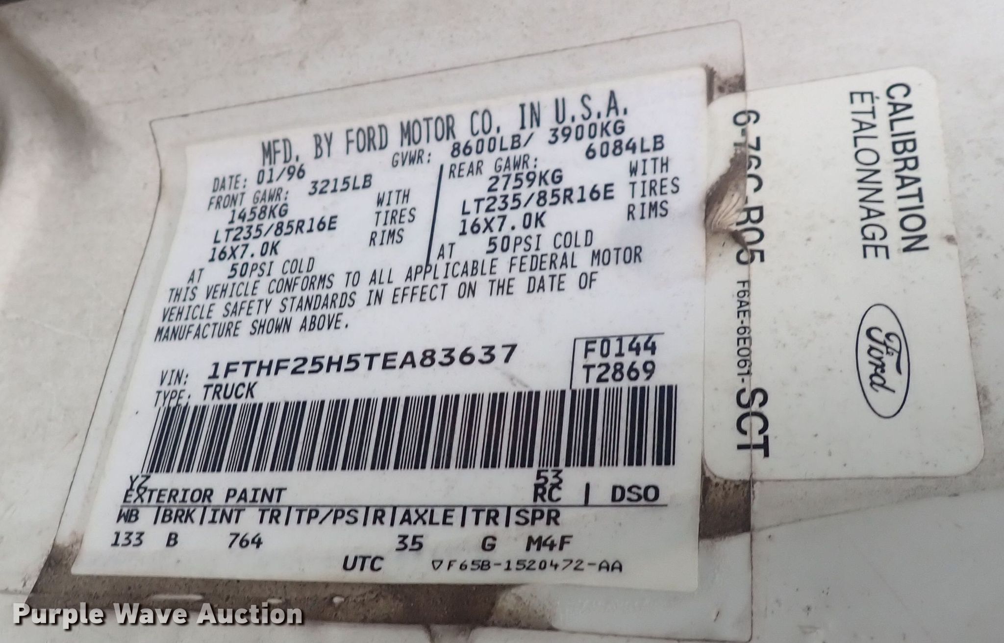 - VIN: 1FTHF25H5TEA83637