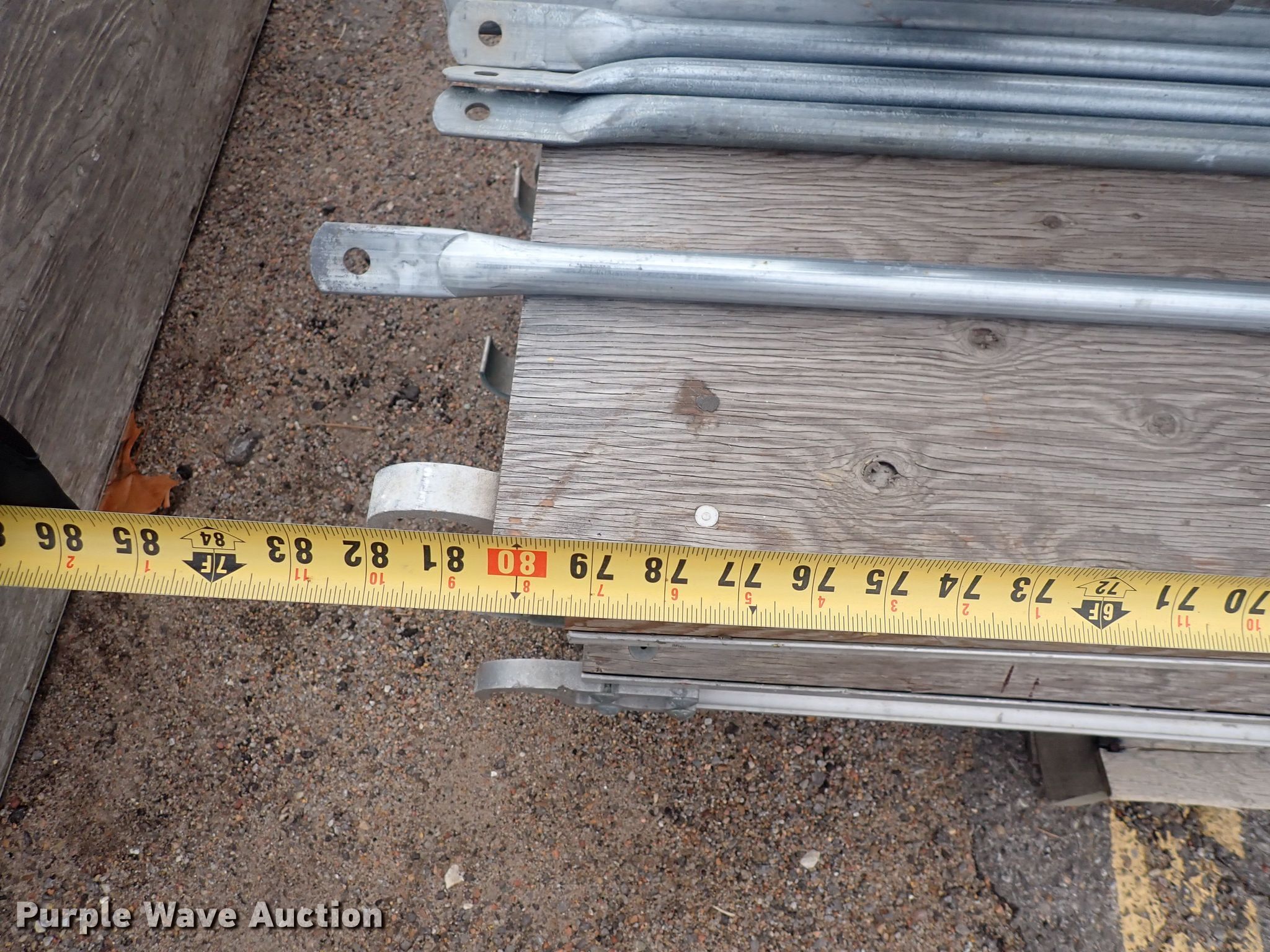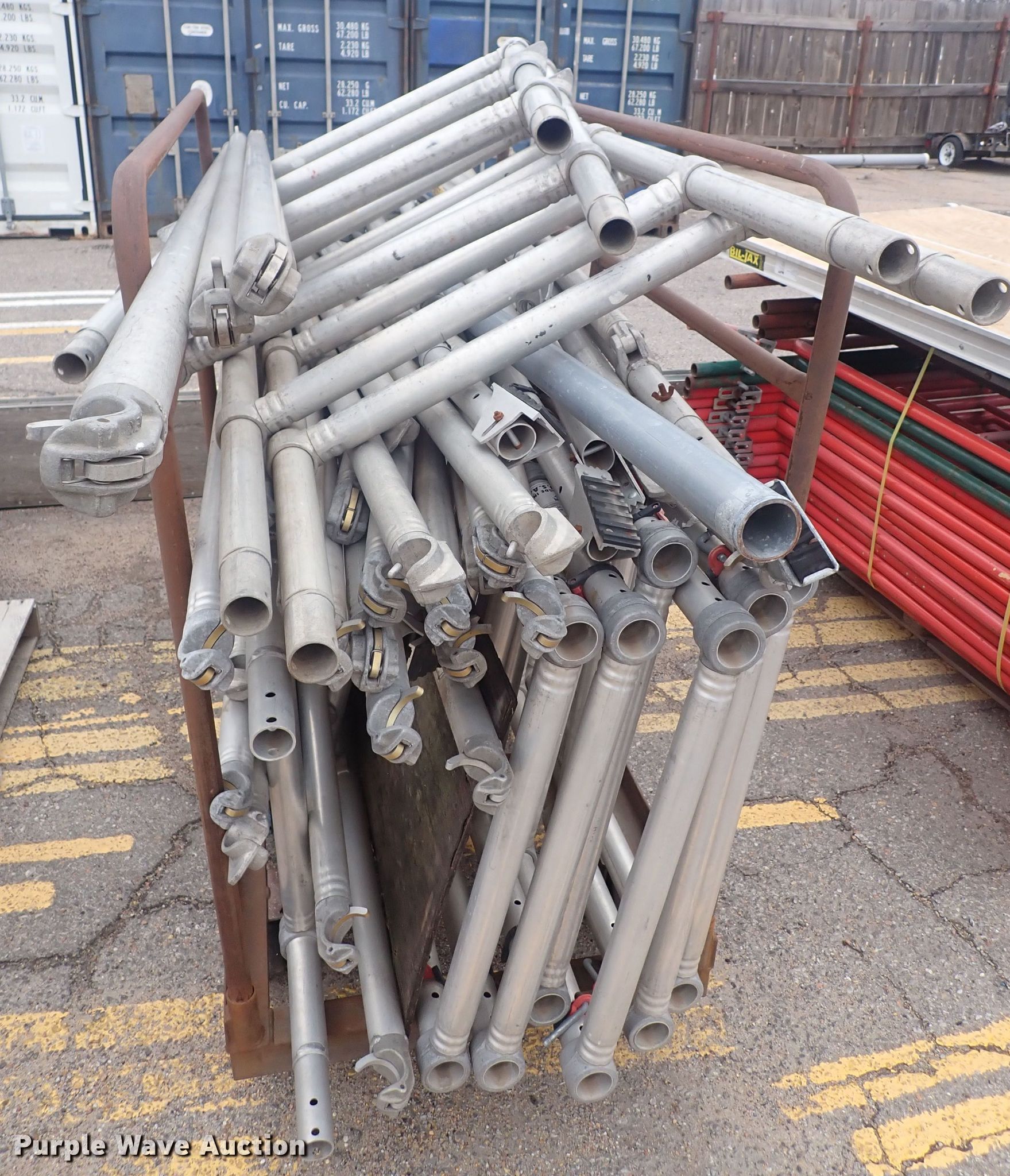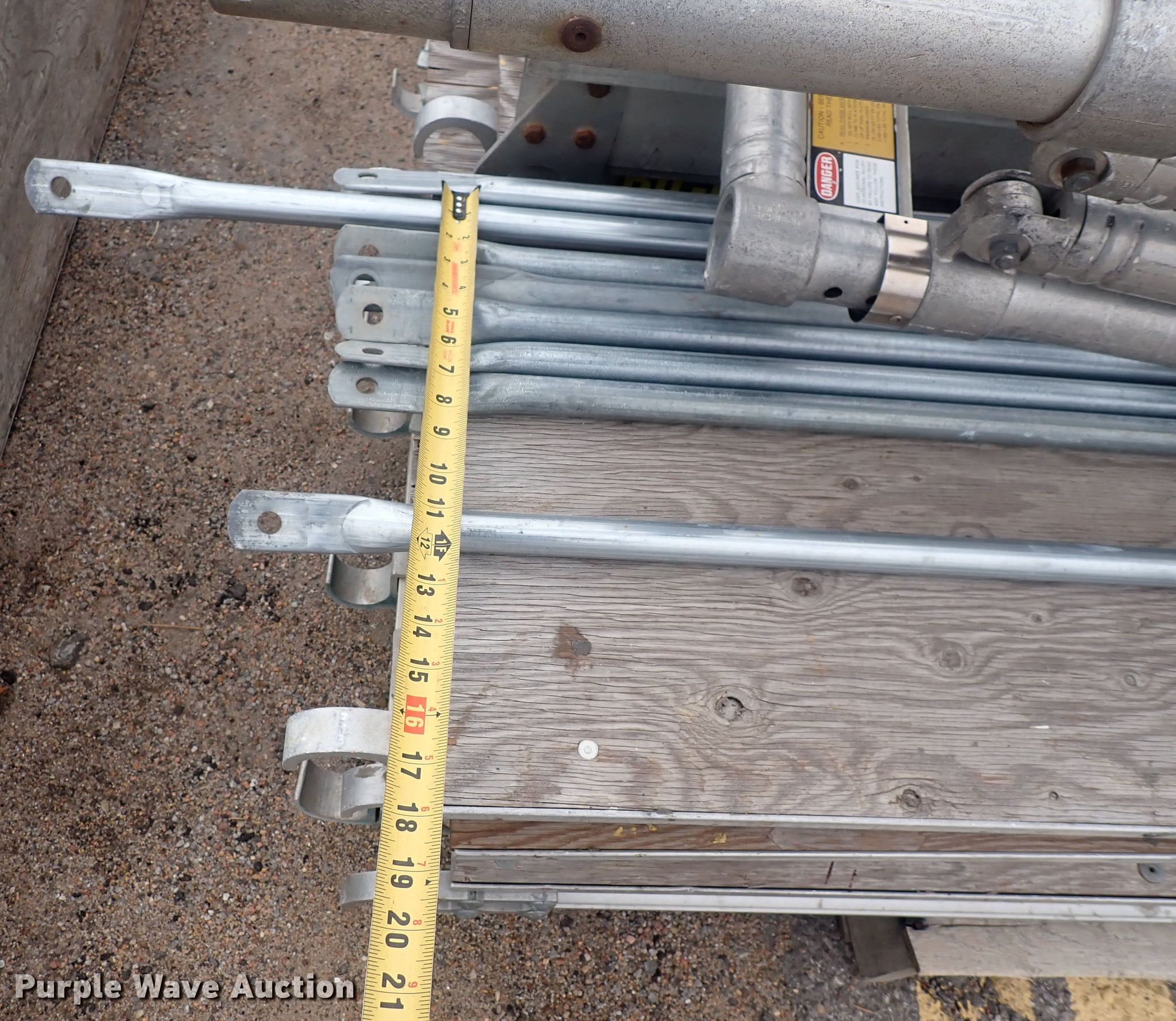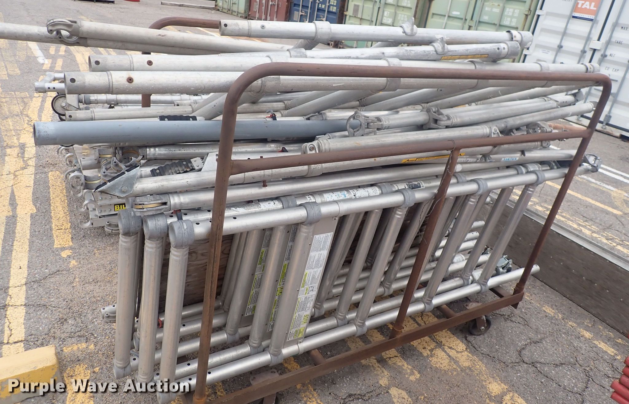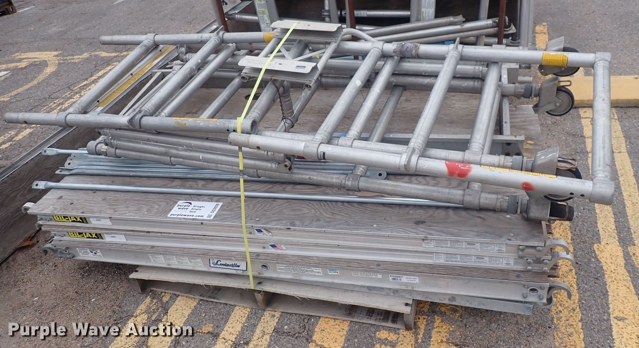 Purple Wave is selling a used Building Materials in Kansas. This item is a Aluminum scaffolding with the following: Approx. 10 planks, 80" x 19", Approx. 20 upright pieces