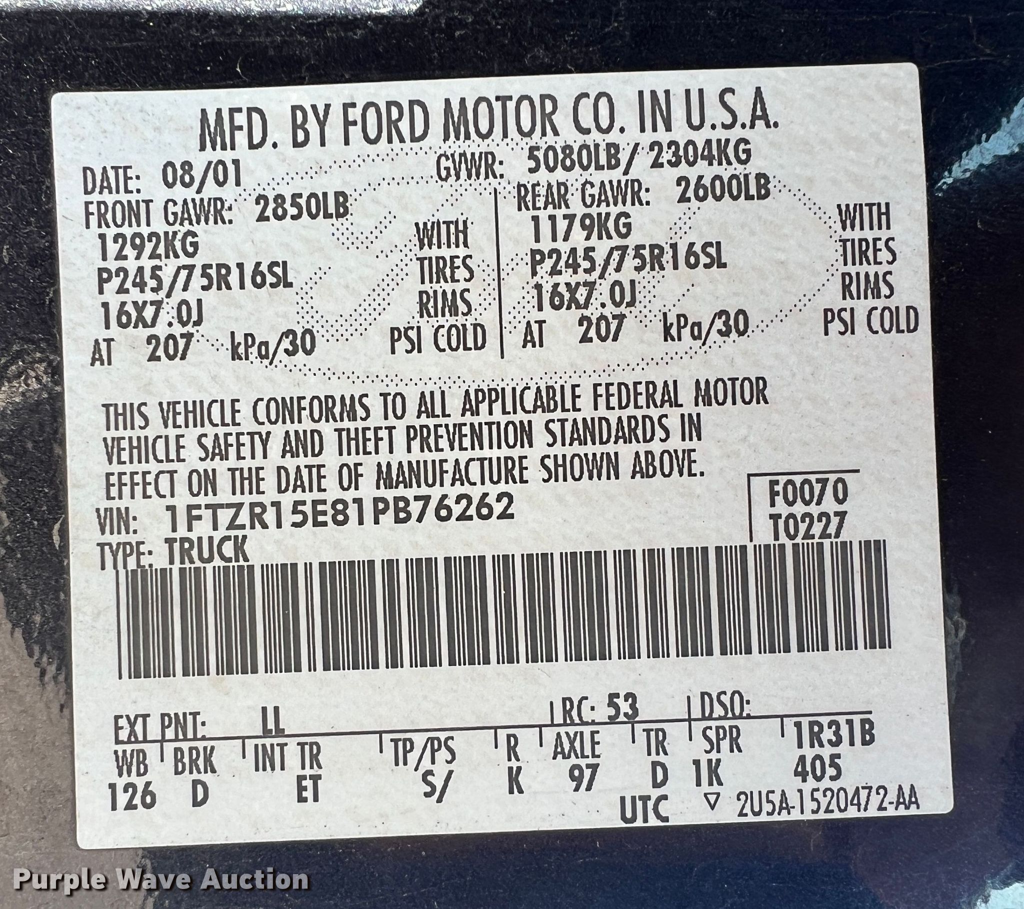 Purple Wave is selling a used Compact Pickup or Van in Kansas. This item is a 2001 Ford Ranger XLT SuperCab pickup truck with the following: Miles: 141,088 on odometer, VIN: 1FTZR15E81PB76262