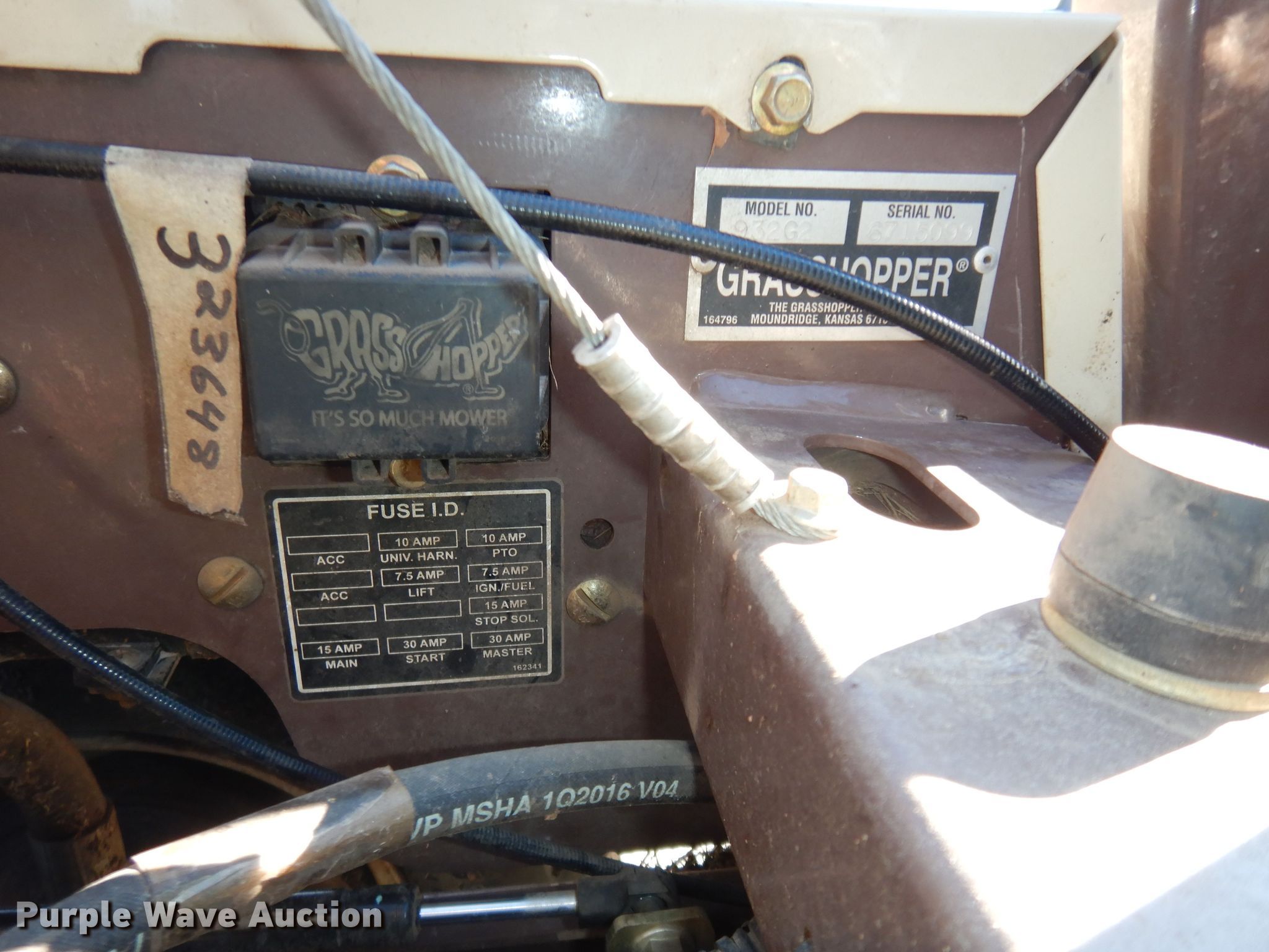 Purple Wave is selling a used Commercial Turf Mower in Kansas. This item is a Grasshopper 932 ZTR lawn mower with the following: Hours: 1,579 on meter, Cutting width: 72", Serial: 6715099, Unit #: 4033