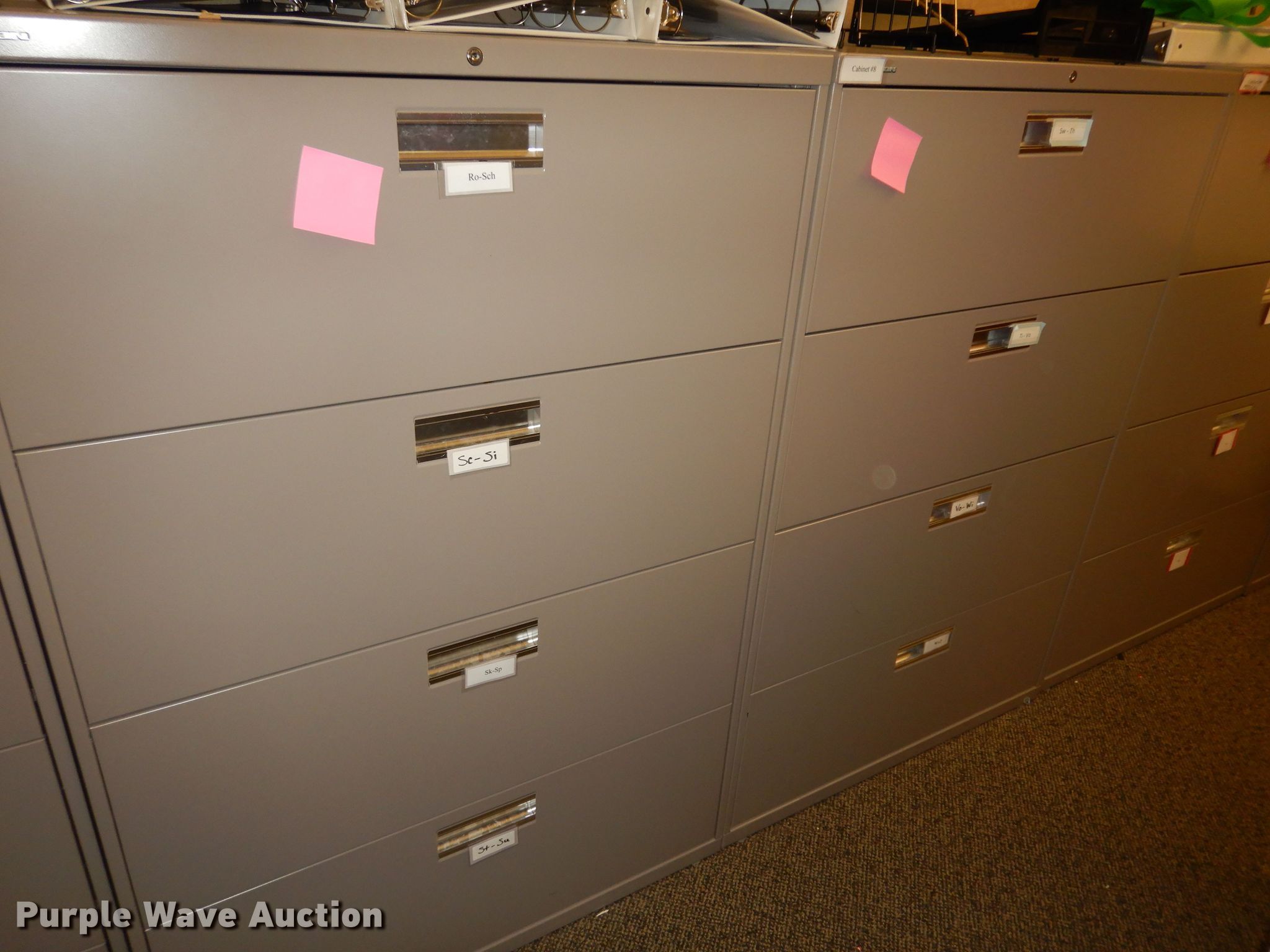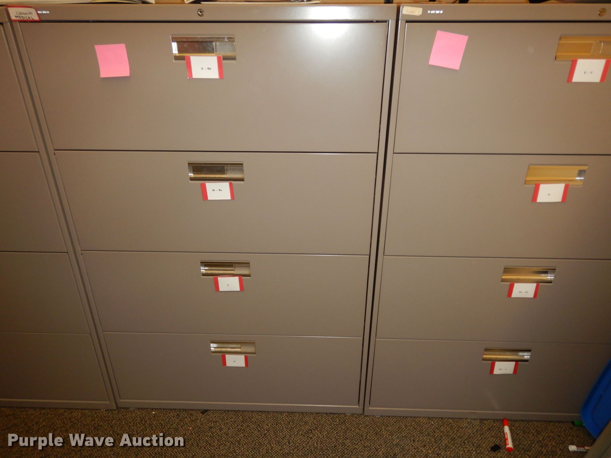Purple Wave is selling a used Office Supplies and Equip. in Kansas. This item is a (6) Hon metal lateral file cabinets with the following: 3' x 19" x 53", Unit #: 5, 6, 7, 8, 9, 10
