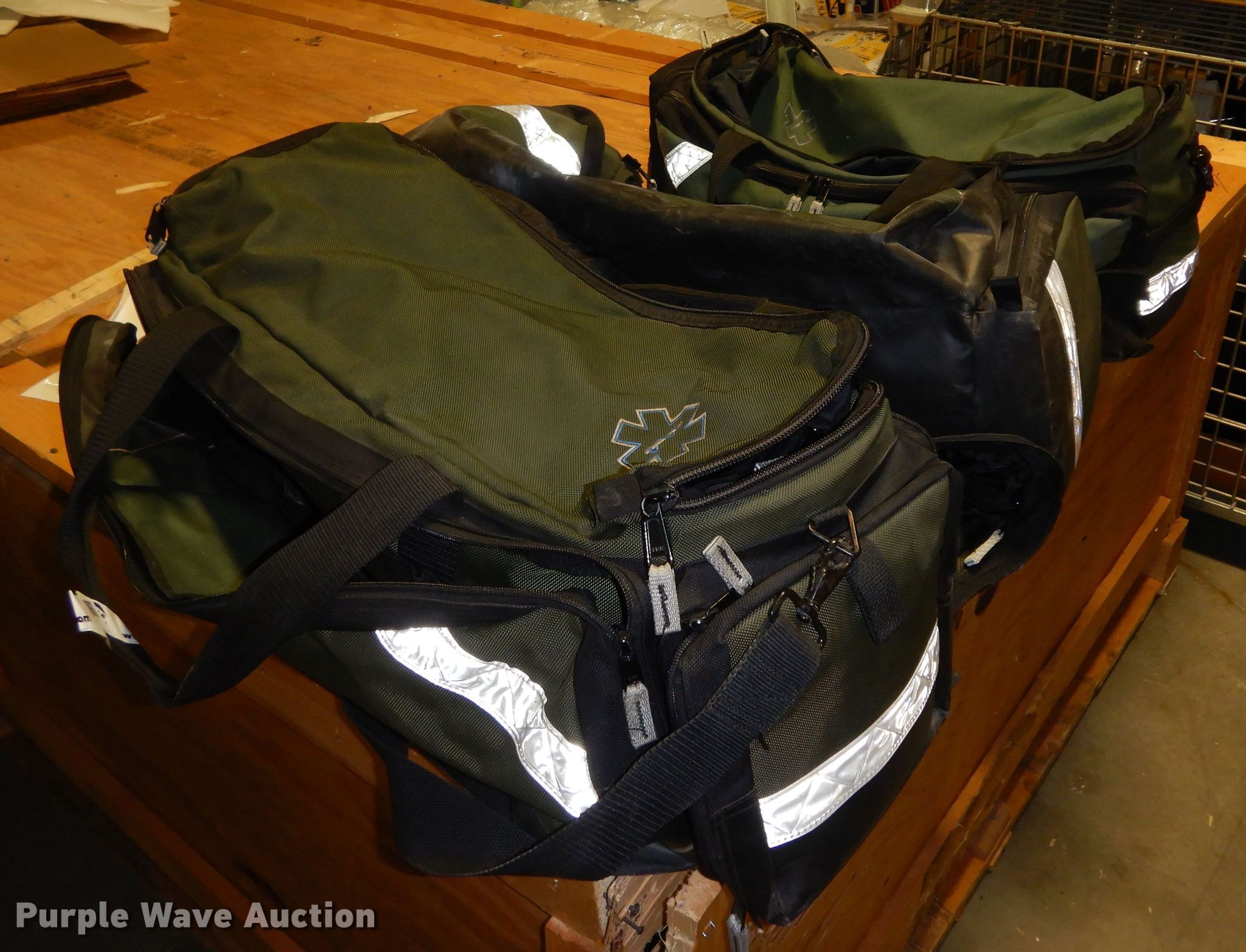Purple Wave is selling a used Medical Equip. in Kansas. This item is a Medical equipment with the following: (3) EMT bags, (24) respiratory system bags, (18) storage boxes