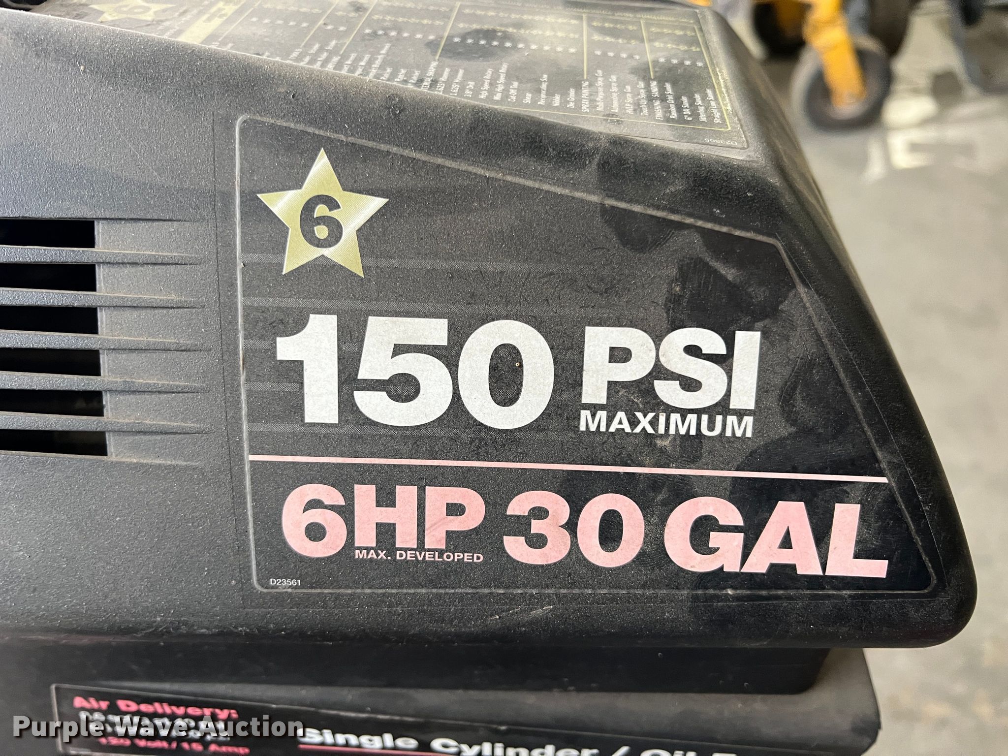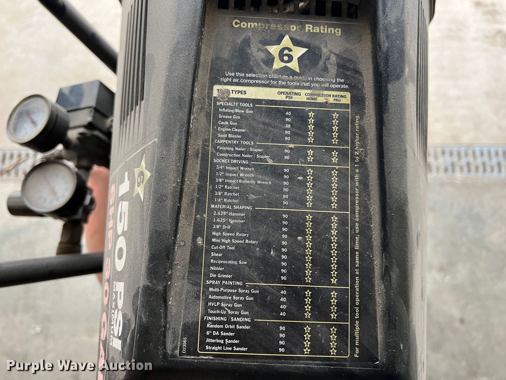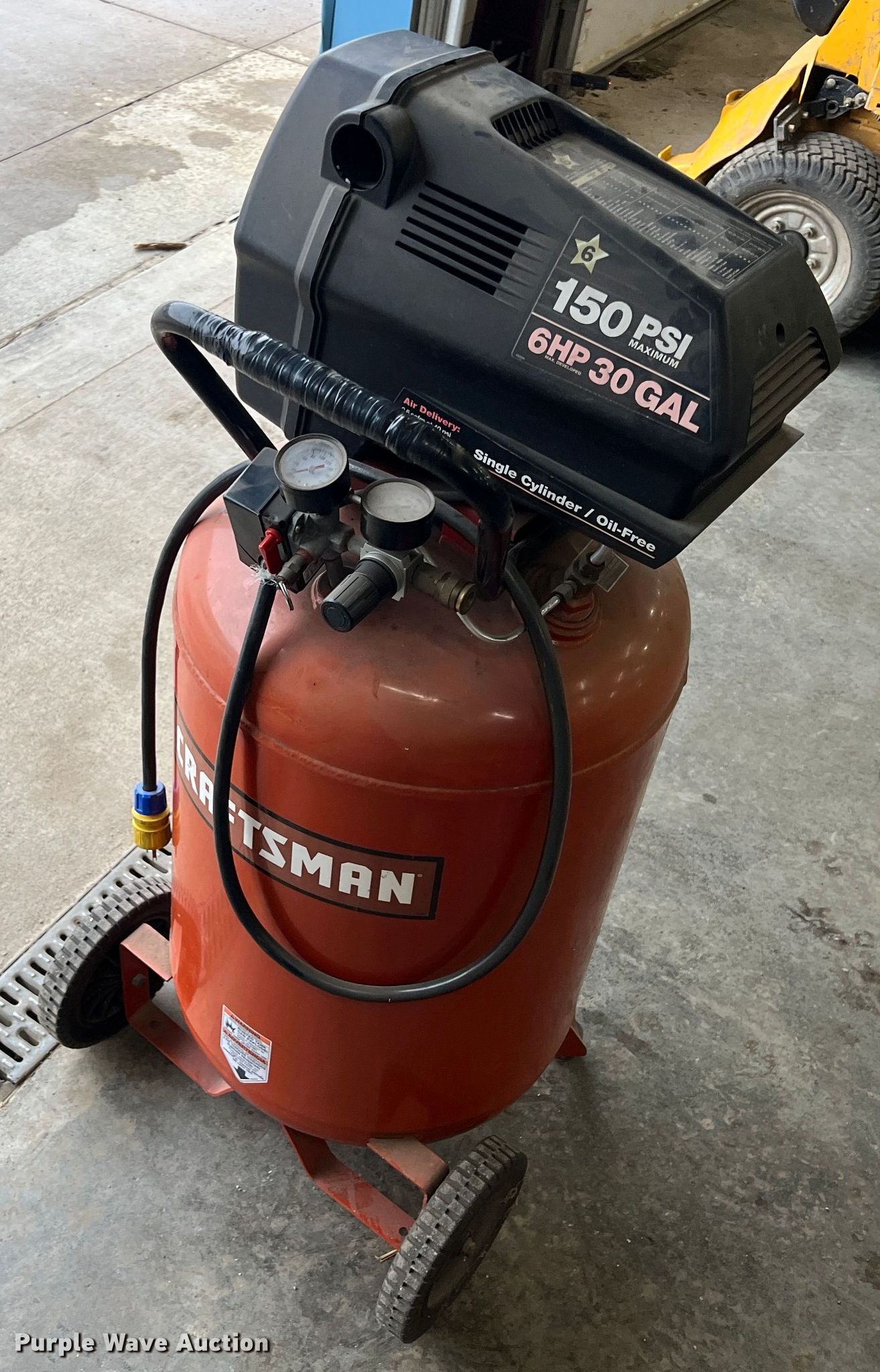 Purple Wave is selling a used Air Compressor in Kansas. This item is a Craftsman 919.167310 air compressor with the following: HP: 6, Volts: 120, Phase: Single