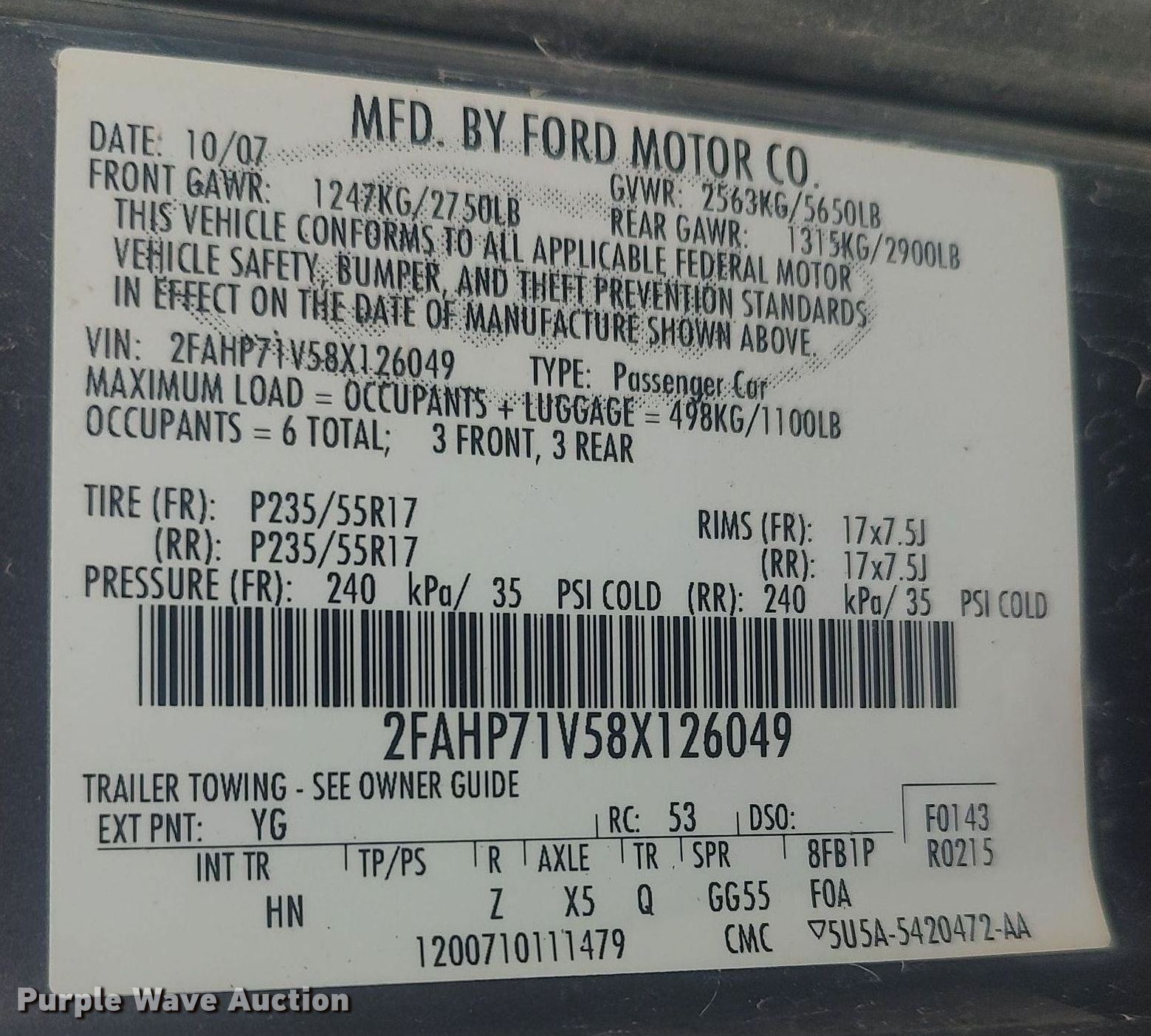 Purple Wave is selling a used Passenger Vehicle in Kansas. This item is a 2008 Ford Crown Victoria Police Interceptor with the following: Miles: 127,411 on odometer, VIN: 2FAHP71V58X126049