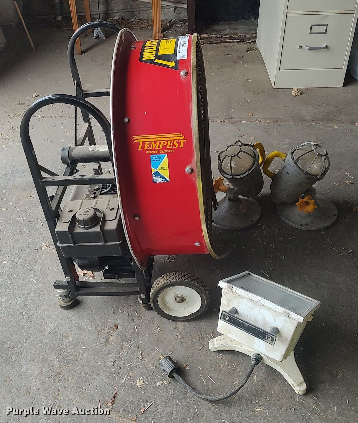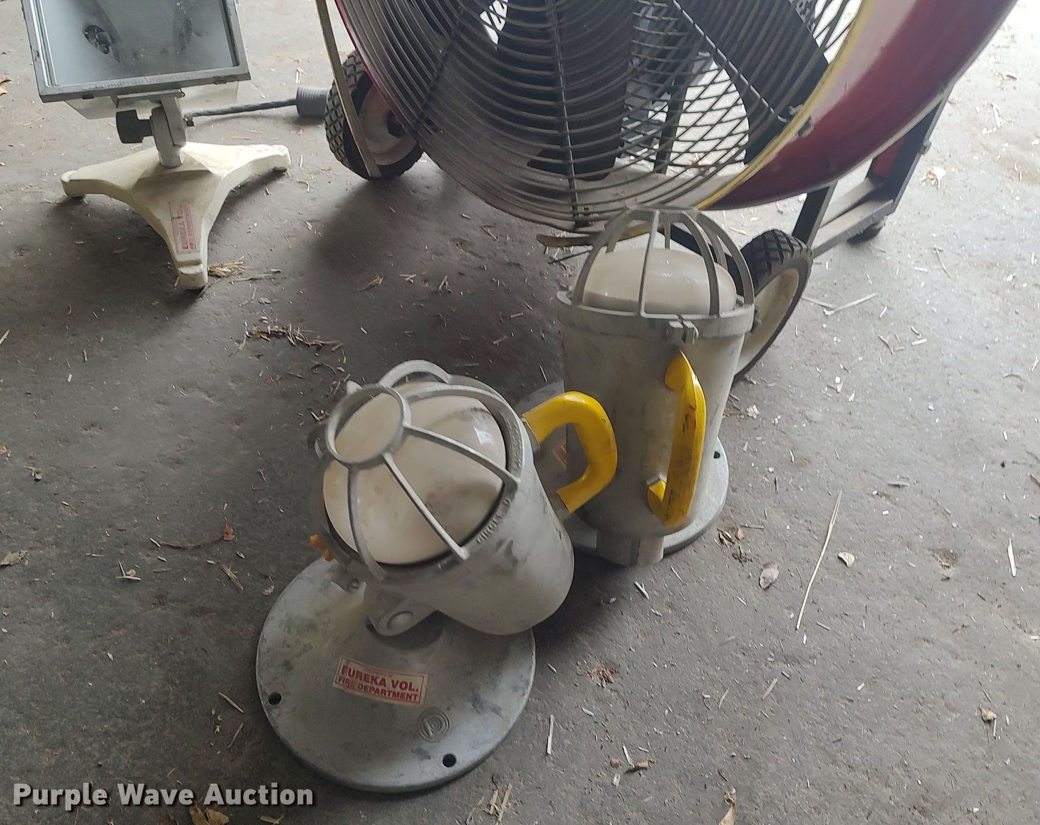 Purple Wave is selling a used Tools in Kansas. This item is a Ventilation fan with the following: Tecumseh single cylinder gas engine, (3) lights, Unknown operating condition