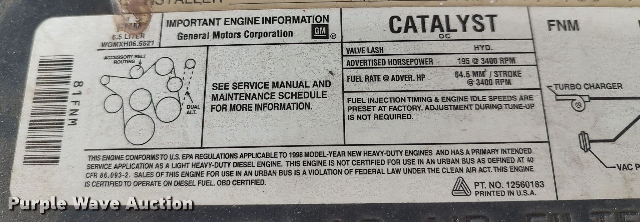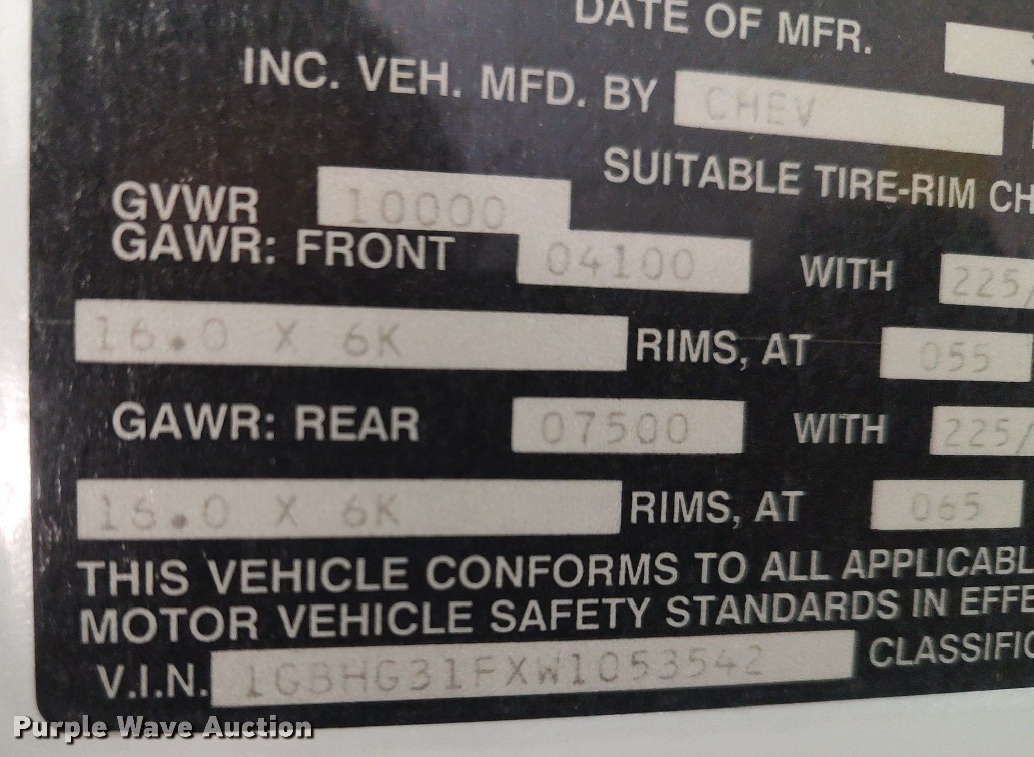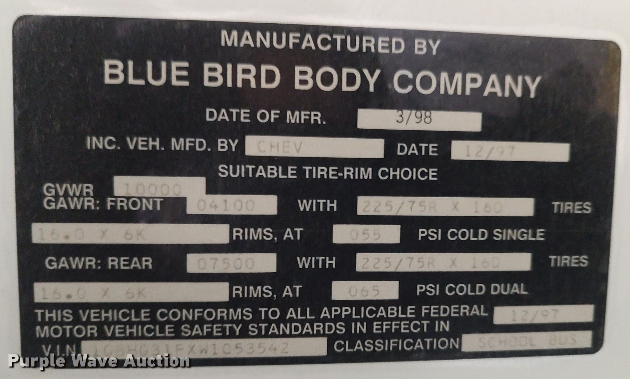Purple Wave is selling a used Bus in Kansas. This item is a 1998 Chevrolet Express G3500 school bus with the following: Miles: 156,316 on odometer, VIN: 1GBHG31FXW1053542