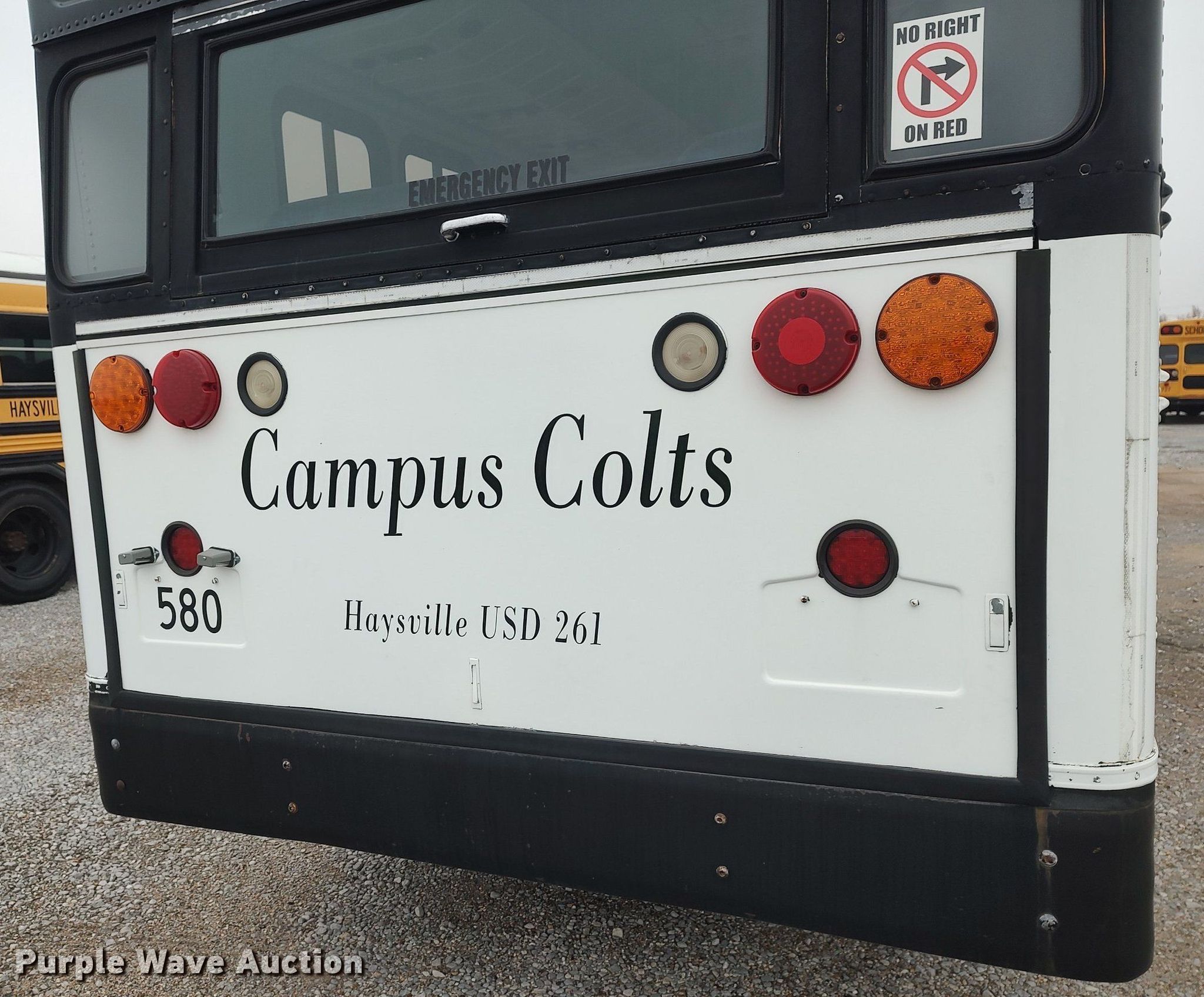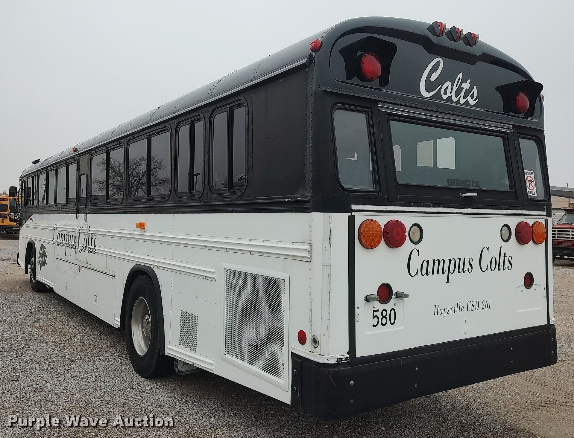 2000 Blue Bird All American coach bus. Miles: 224,144 on odometer, VIN: 1BABNBXAXYF092516. Engine Cummins, Displacement: 8.3L L6, Cylinders: 6, Fuel type: Diesel. Transmission Automatic. Chassis Axles: Single, Suspension: Air, Brakes: Air, GVWR: 36,200 lbs. Interior AC, Heat, Heated mirrors, Cruise control, Passengers: 84. Tires Size: 11R22.5. Kansas title. Title distribution may be delayed up to 14 days from verification of funds. USD 261- Haysville. Haysville, KS 67060