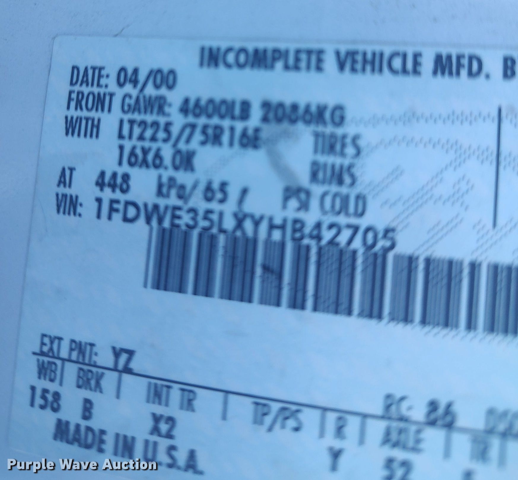 • VIN: 1FDWE35LXYHB42705
