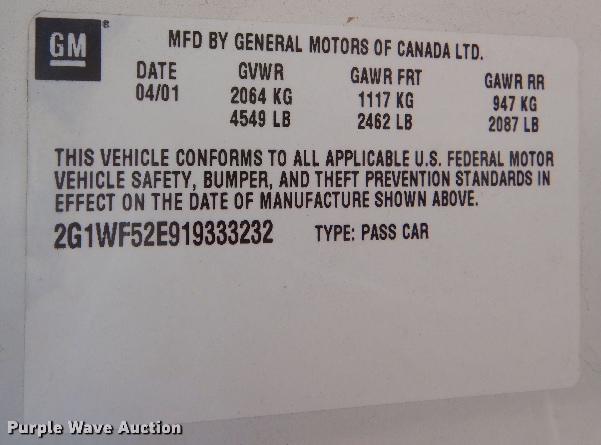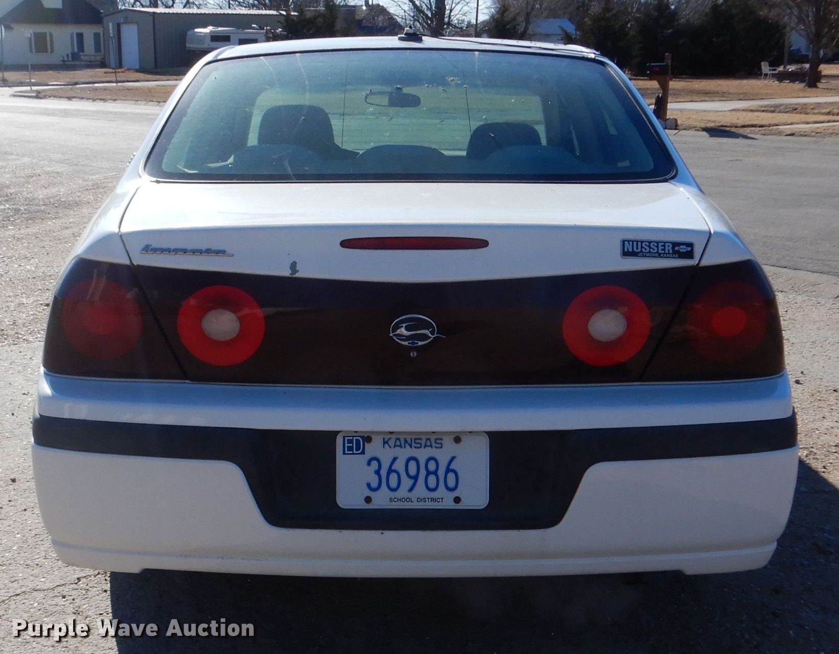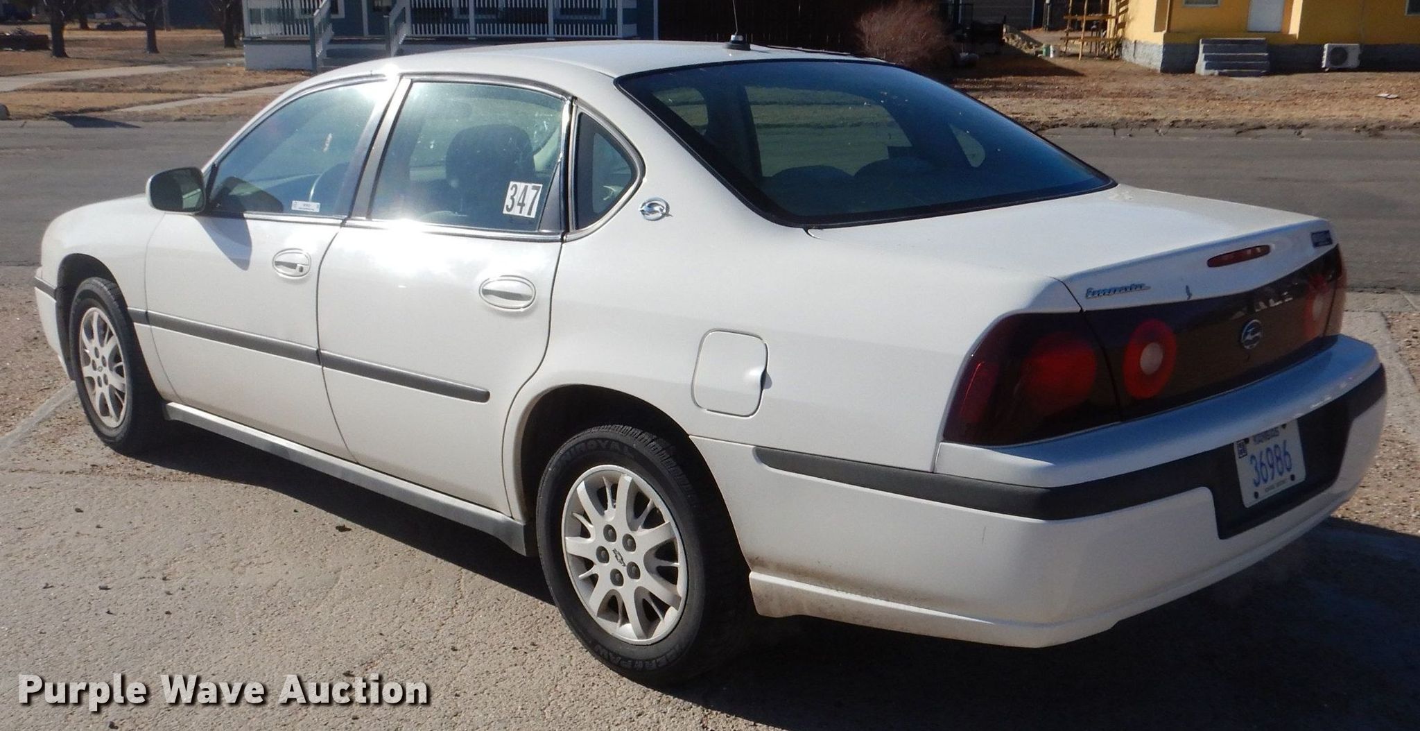 2001 Chevrolet Impala. Miles: 194,301 on odometer, VIN: 2G1WF52E919333232. Engine Displacement: 3.4L V6 OHV, Cylinders: 6, Fuel type: Gas. Transmission Automatic. Interior AC, Heat, Power windows, Power locks, Cruise control. Tires Size: 225/60R16. Kansas title. Title distribution may be delayed up to 14 days from verification of funds. USD 347. 309 S. Colony. Kinsley, KS 67547