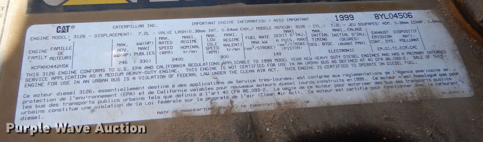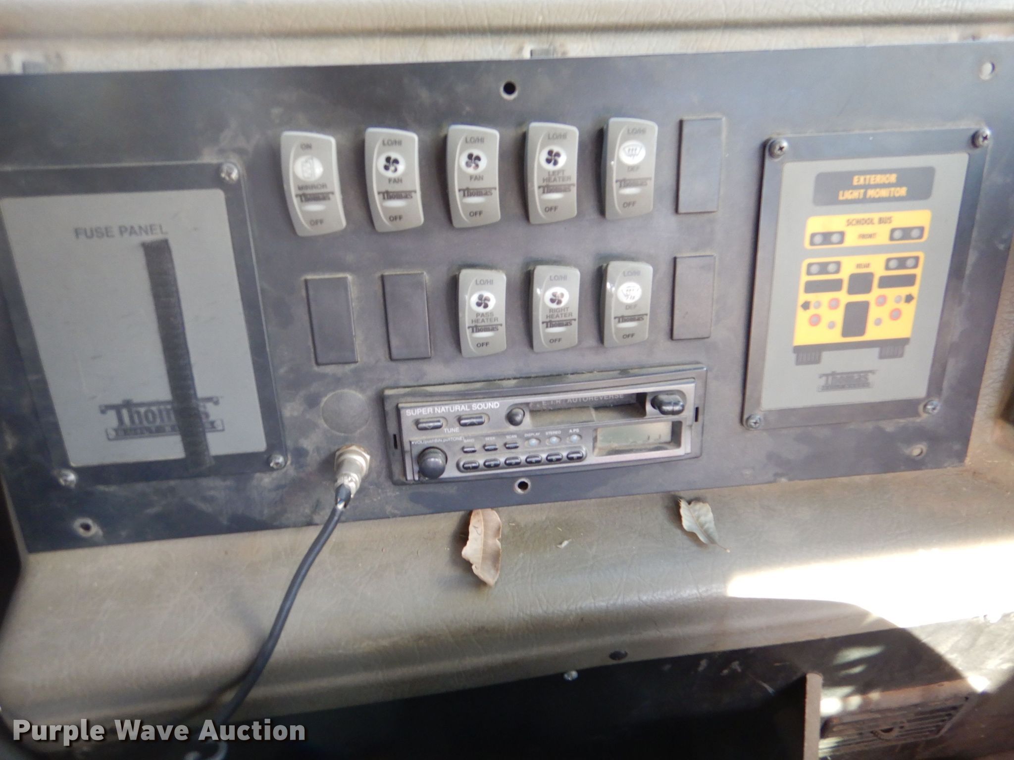 2000 Freightliner school bus. Miles: 213,876 on odometer, VIN: 4UZ3CJAC0YCG33612. Engine Caterpillar 3126, Displacement: 7.2L L6, Cylinders: 6, Fuel type: Diesel. Transmission Automatic. Chassis Axles: Single, Suspension: Spring, Brakes: Hydraulic, GVWR: 25,500 lbs. Interior Heat, Heated mirrors, Passengers: 48. Tires Size: 11R22.5. Notes Non-operational emergency lights , Unknown operating condition. Kansas title. Title distribution may be delayed up to 14 days from verification of funds. USD 347. 309 S. Colony. Kinsley, KS 67547