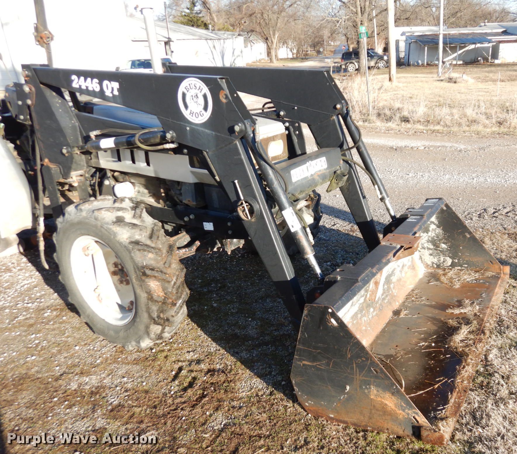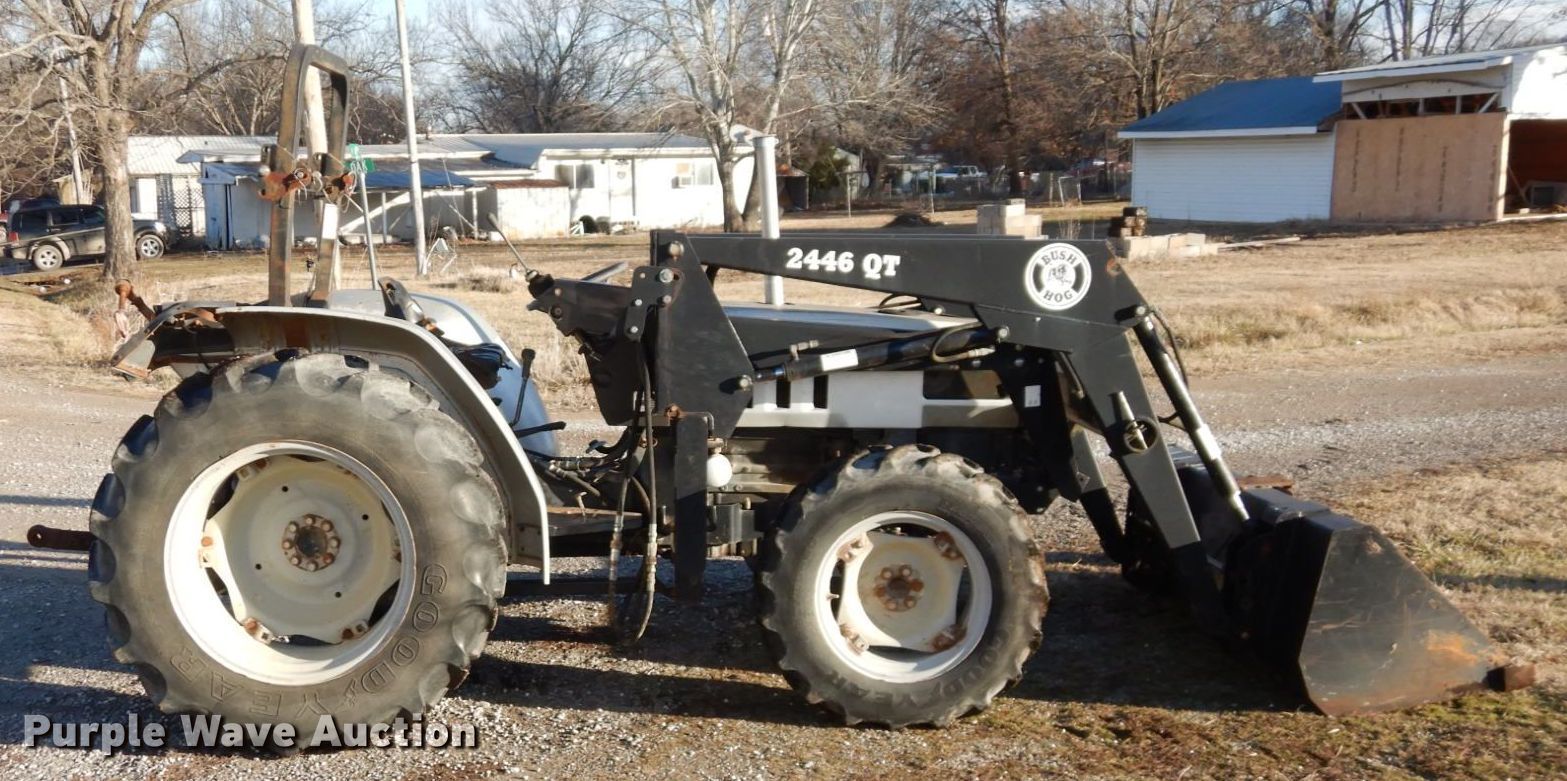 White 6045 A MFWD tractor. Hours: 2,889 on meter, Serial: 001200. Engine Cylinders: 3, Fuel type: Diesel. Transmission Synchro, 12F - 12R, Creeper, Differential lock. Features PTO: 540, Three point Top link, Seven pin outlet, Rear: 2, Loader Bush Hog 2446 QT, Quick attach, Controls: Joystick, Bucket Width: 72".. Tires Front: 260/80R20, Rear: 13.6R28, Wheelbase: 75"". Notes Possible transmission issues, only travels in four wheel drive. Mound City Vault Co.. 414 South 4th Street. Mound City, KS 66056