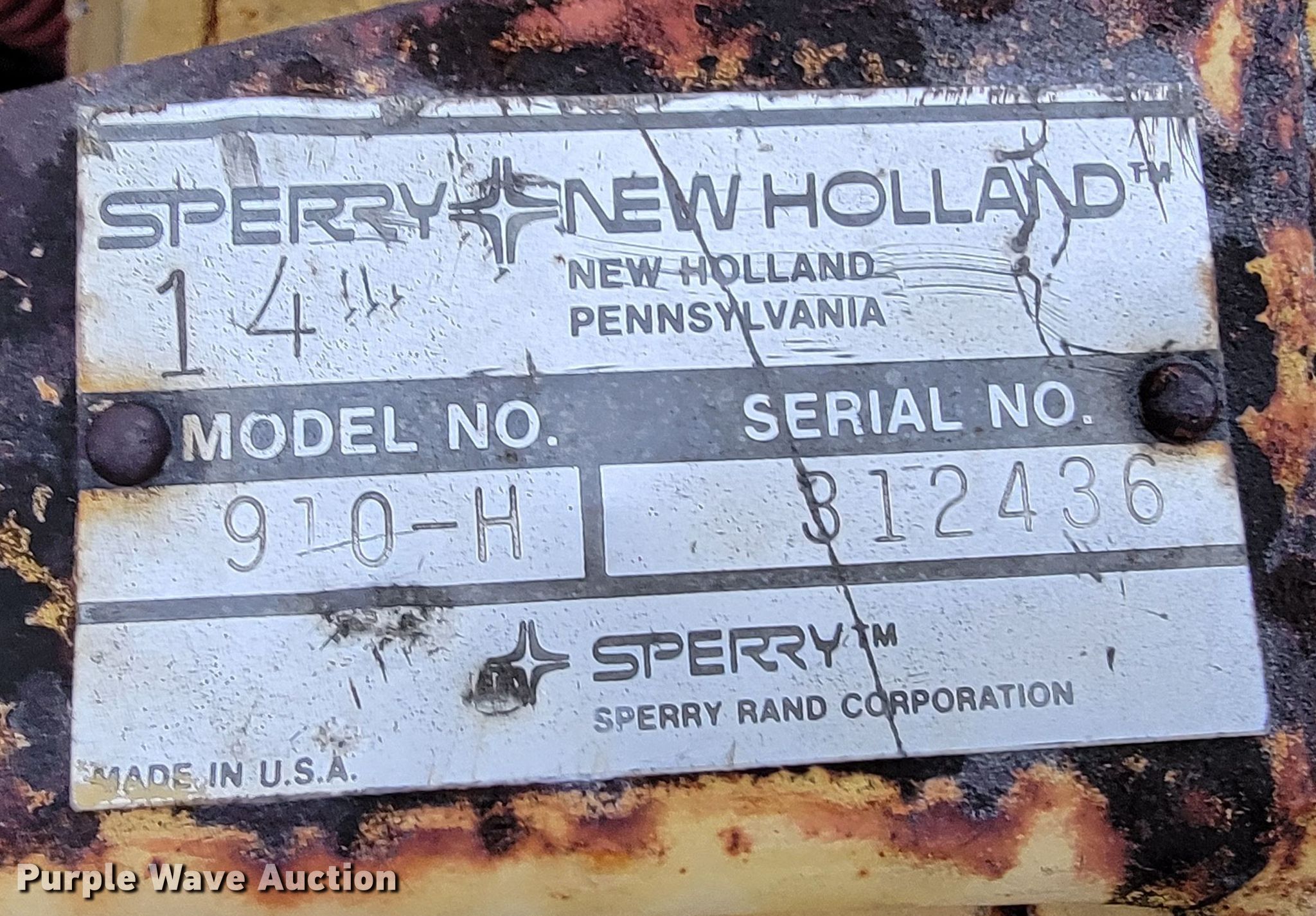 New Holland 1112 windrower. Engine hours: 1,962 on meter. Engine Cylinders: 4, Fuel type: Diesel. Transmission Hydrostatic. Features Head New Holland 910-H, Serial: 312436, Width: 14'. Tires Size: 16.5L-16.1. Notes Non-operational engine, Non-operational unit. Coffeyville, KS 67337