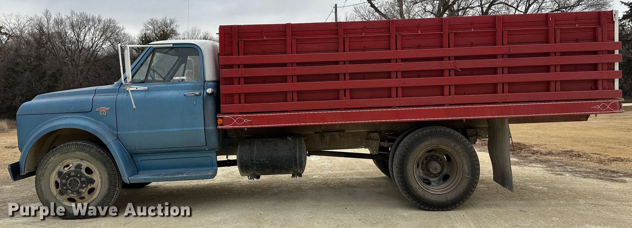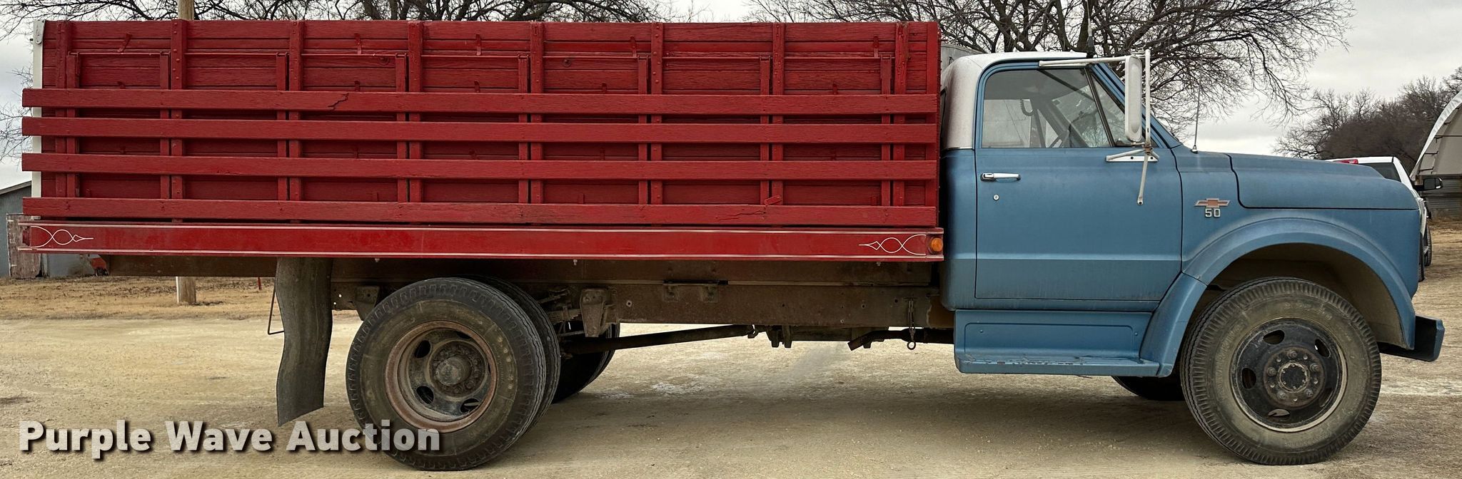 Purple Wave is selling a used Grain Truck in Kansas. This item is a 1967 Chevrolet C50 grain truck with the following: Miles: 81,820 on odometer, VIN: CE537J118445