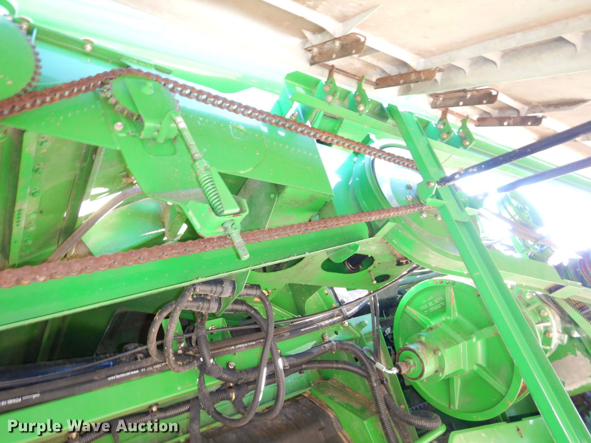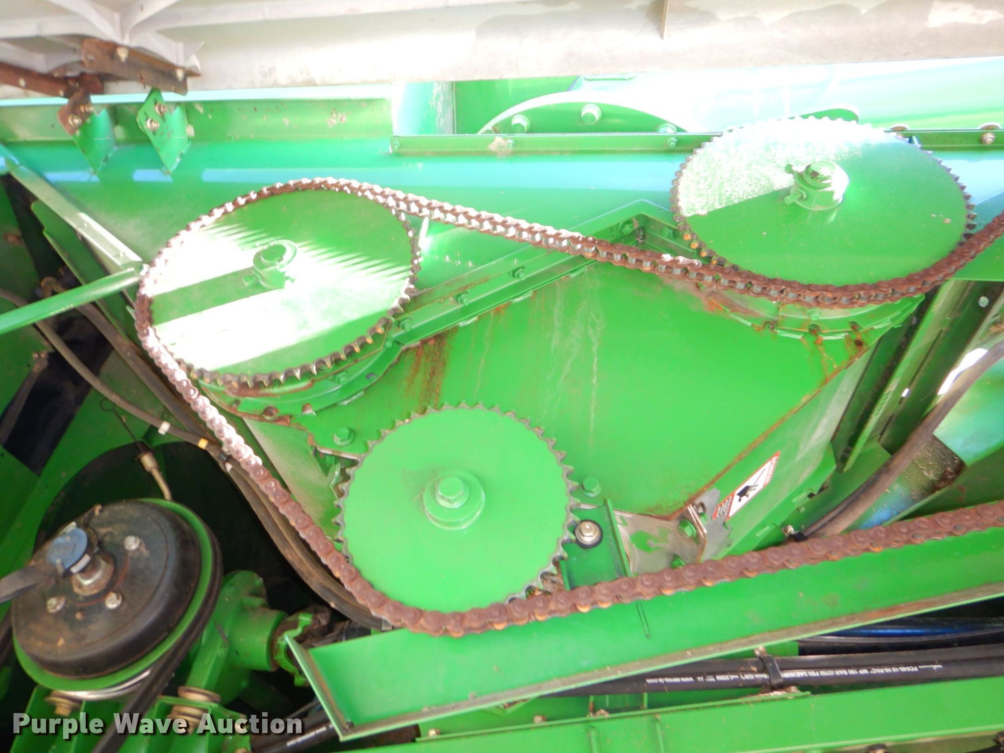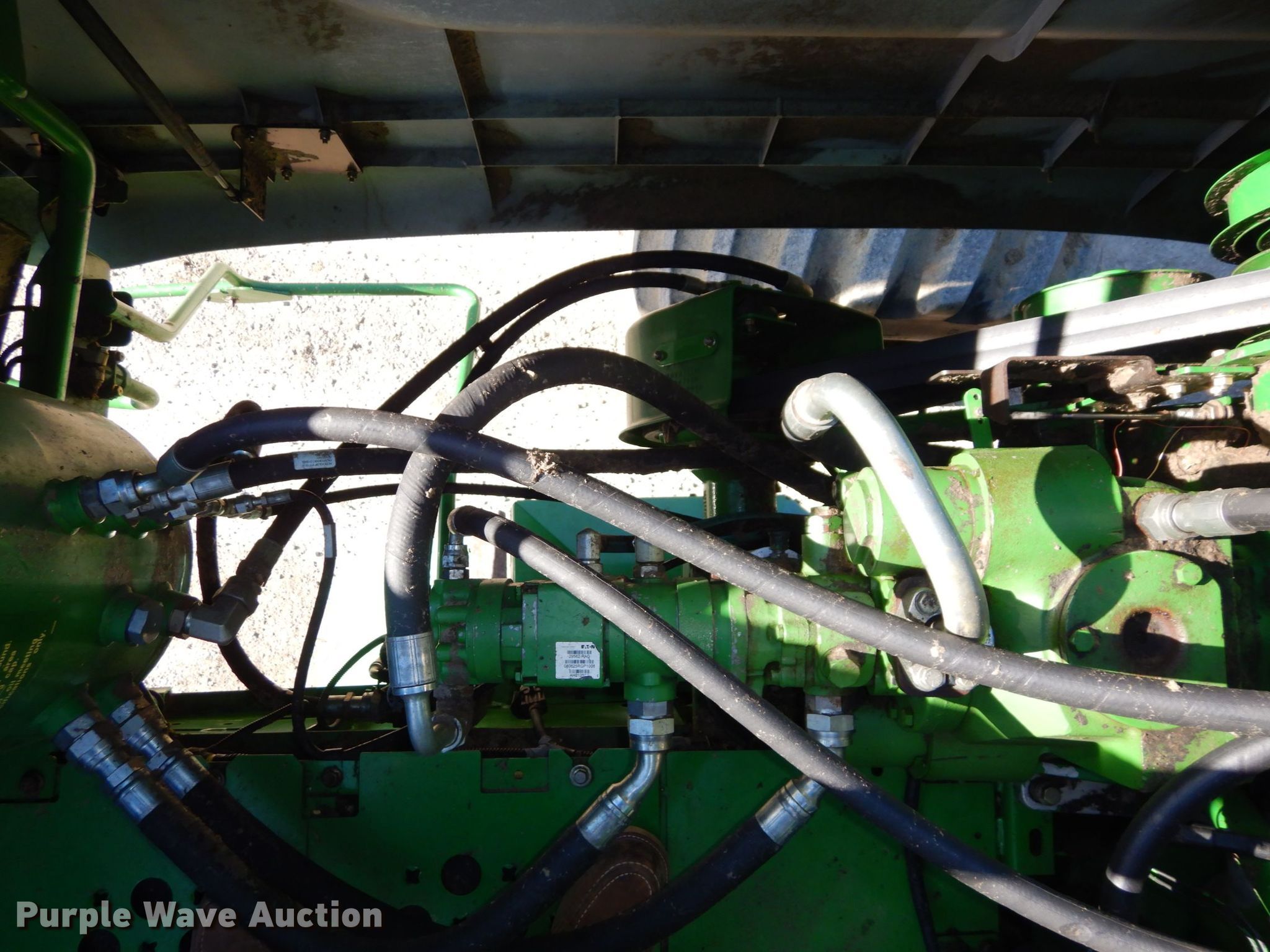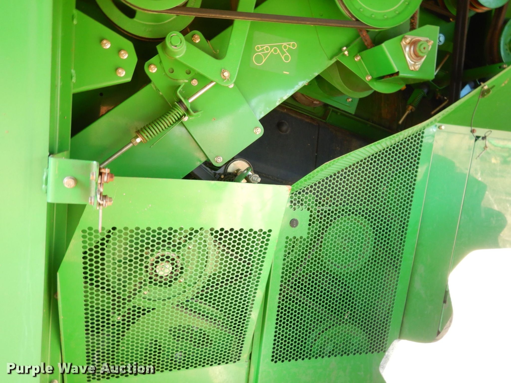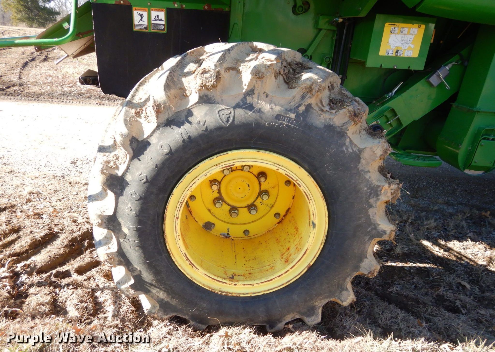 2008 John Deere 9770 STS RWA combine. Engine hours: 2,616 on meter, Separator hours: 1,447 on meter, Serial: H09770S727455. Engine John Deere, Cylinders: 6, Fuel type: Diesel. Transmission Hydrostatic. Interior AC, Heat. Features Operator manual, Single point header coupler, Feederhouse: Reverser , Variable speed, Concaves: Round, Rotor speeds: 2, Chaff spreader, Bin: Extensions, Unloading auger length: 22' 6". Tires Front: 1250/45-32, Rear: 54x37.00-25, Brand: Firestone. 5395 NE State Route 18. Adrian, MO 64720