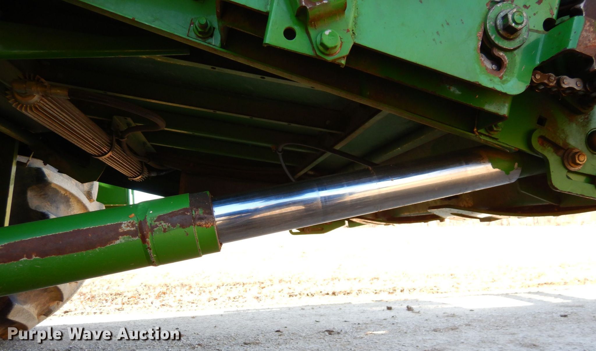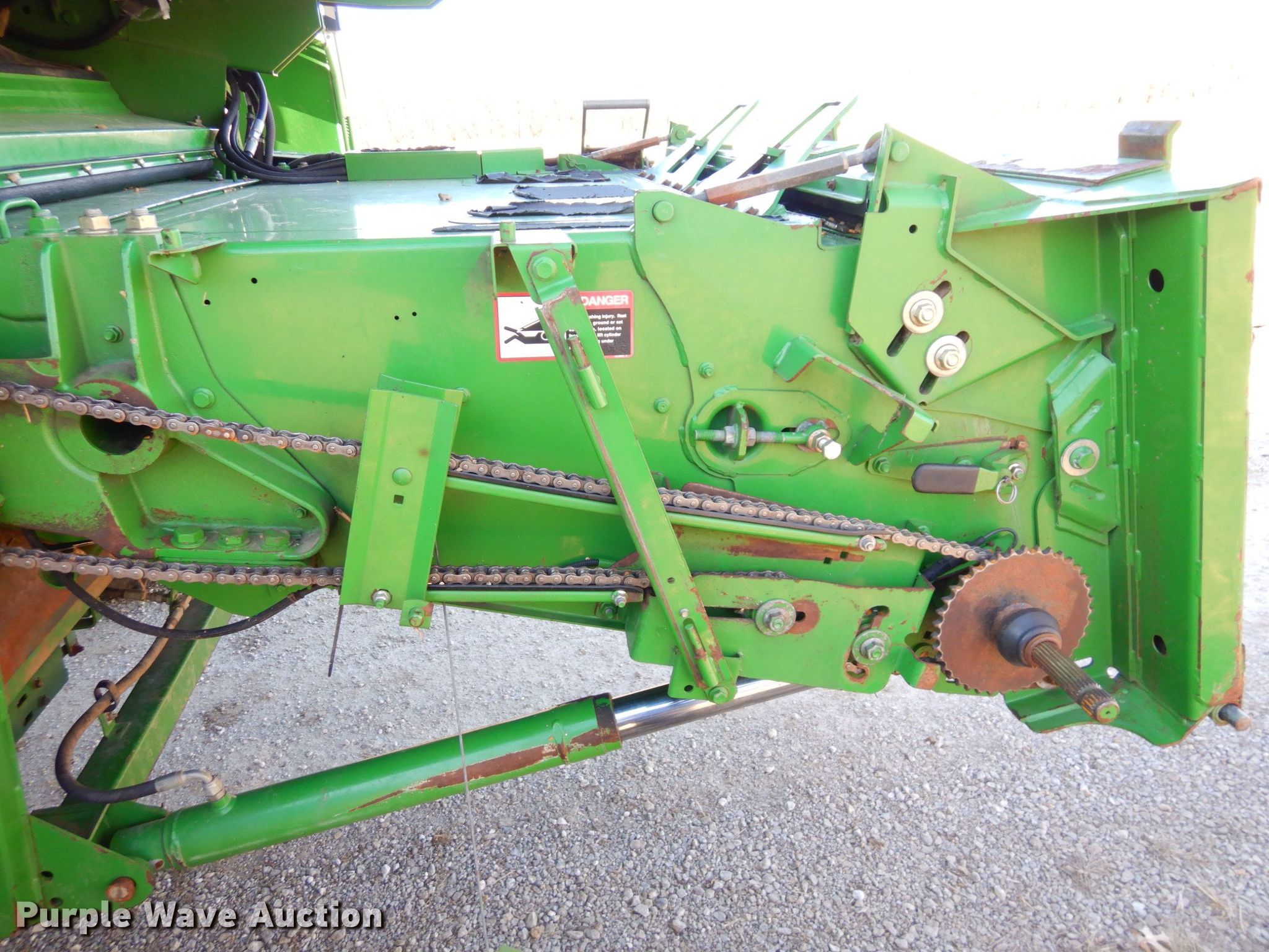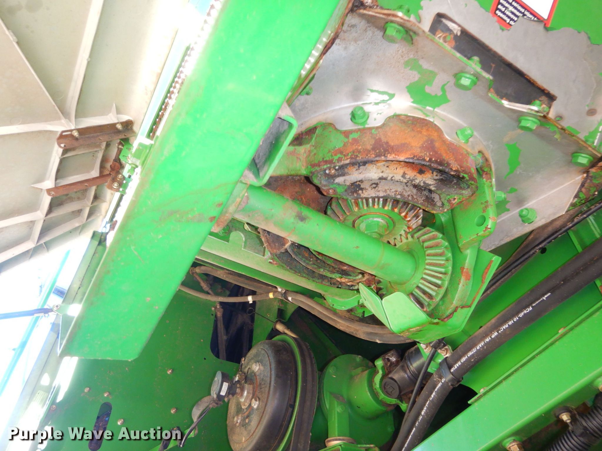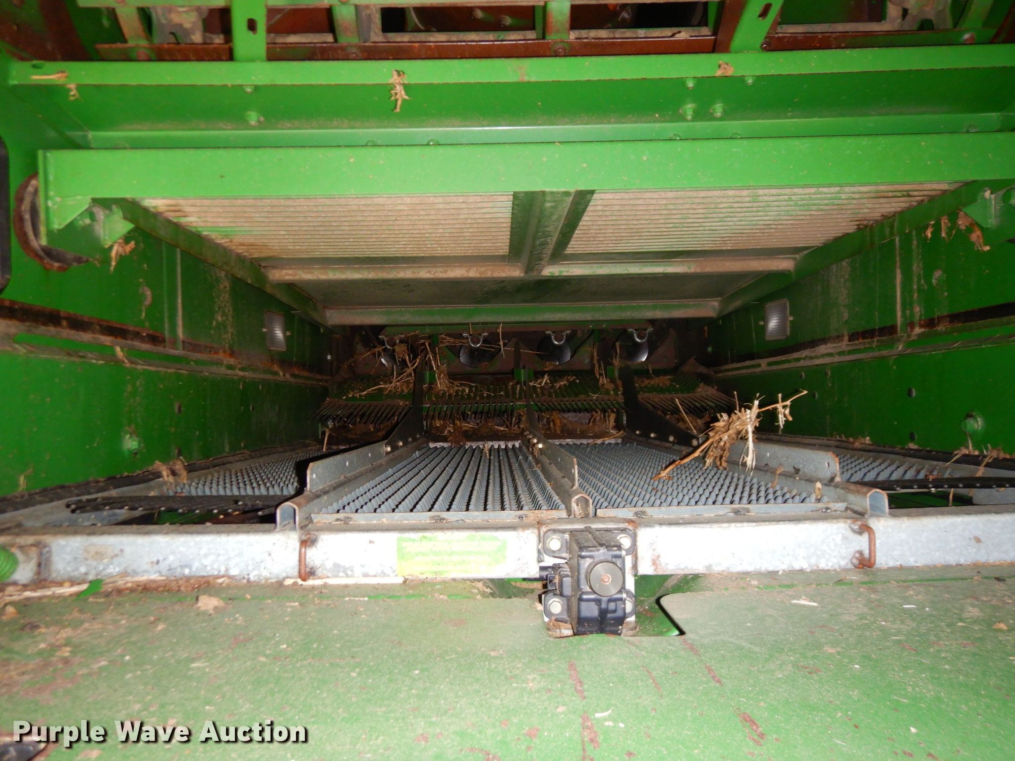 2008 John Deere 9770 STS RWA combine. Engine hours: 2,616 on meter, Separator hours: 1,447 on meter, Serial: H09770S727455. Engine John Deere, Cylinders: 6, Fuel type: Diesel. Transmission Hydrostatic. Interior AC, Heat. Features Operator manual, Single point header coupler, Feederhouse: Reverser , Variable speed, Concaves: Round, Rotor speeds: 2, Chaff spreader, Bin: Extensions, Unloading auger length: 22' 6". Tires Front: 1250/45-32, Rear: 54x37.00-25, Brand: Firestone. 5395 NE State Route 18. Adrian, MO 64720